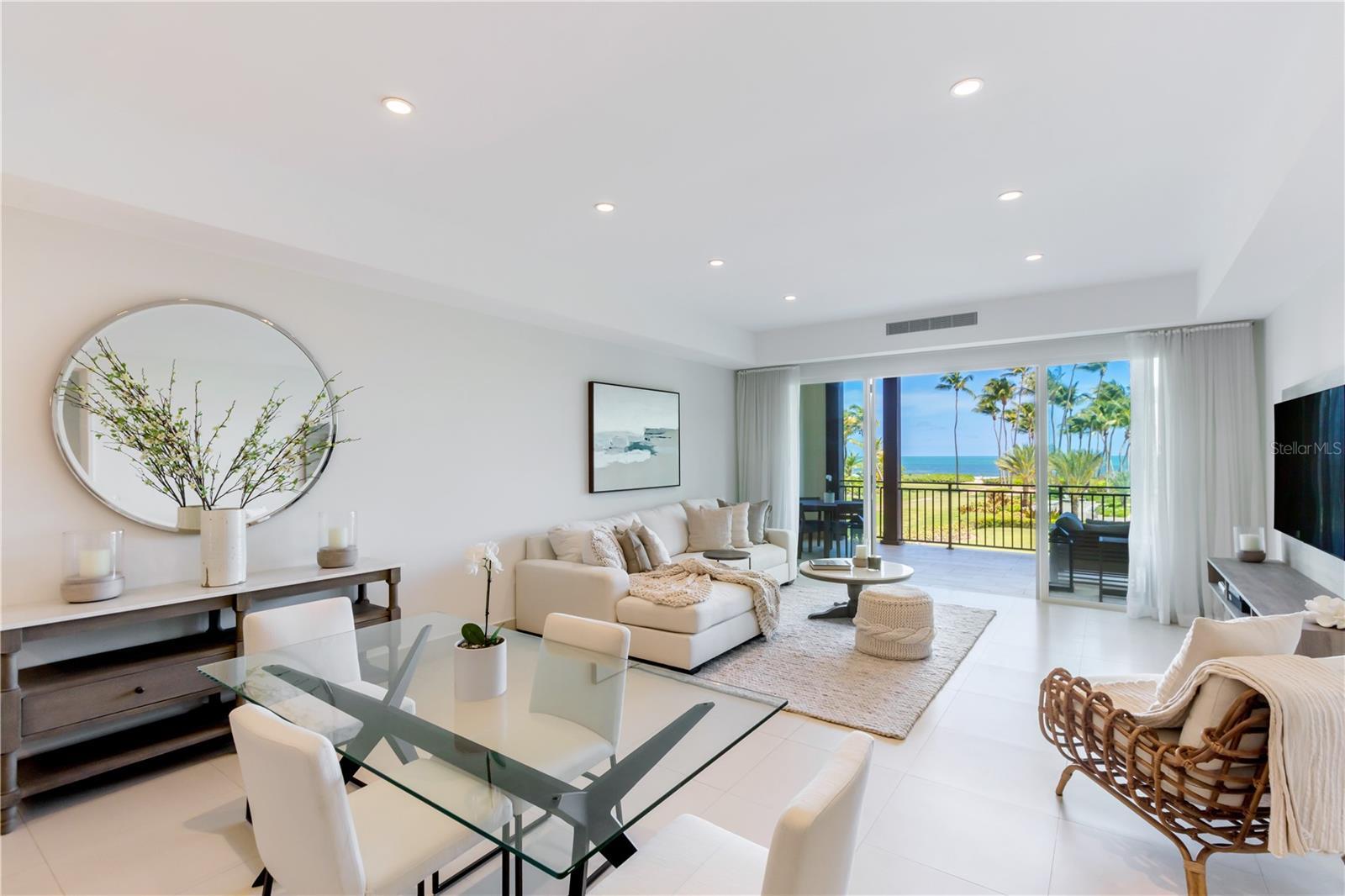 Hidden gem on your new tropical haven beautifully appointed ocean view condominium just-steps away from the beach and the Beach Club, located in the most exclusive residential community in Puerto Rico. The spacious & modern residential unit consists of two bedrooms, and two full bathrooms with extra expansive terrace overlooking the water.