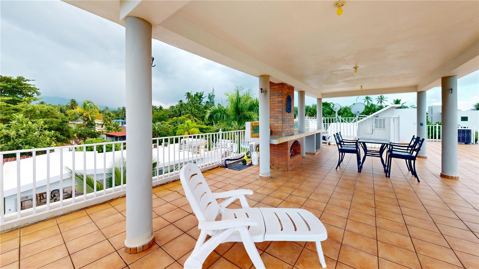 PALMA SOLA, Las Picuas, Rio Grande, Puerto Rico 5 Bedrooms · Ocean Front · Pool OFFERED AT: $2,400,000 Discover your Caribbean oasis in the quiet Las Picuas neighborhood, just five minutes from Rio Mar resort. Perfect for beach lovers, this oceanfront property is ideal for snorkeling, paddleboarding, fishing, and sailing. This solid, three-story concrete home features French doors, storm windows, roll-down security doors, a pool, patio with bar, and generator. The main house has five bedrooms and three bathrooms. The master suite has an ensuite bath, while the spacious kitchen/living area and media room provide comfort. The roof deck is built for entertaining, complete with a shaded area and bar. An oceanfront casita with a roof deck offers breathtaking Caribbean views. The gated property features a utility building with bathrooms, storage, and lush tropical landscaping.