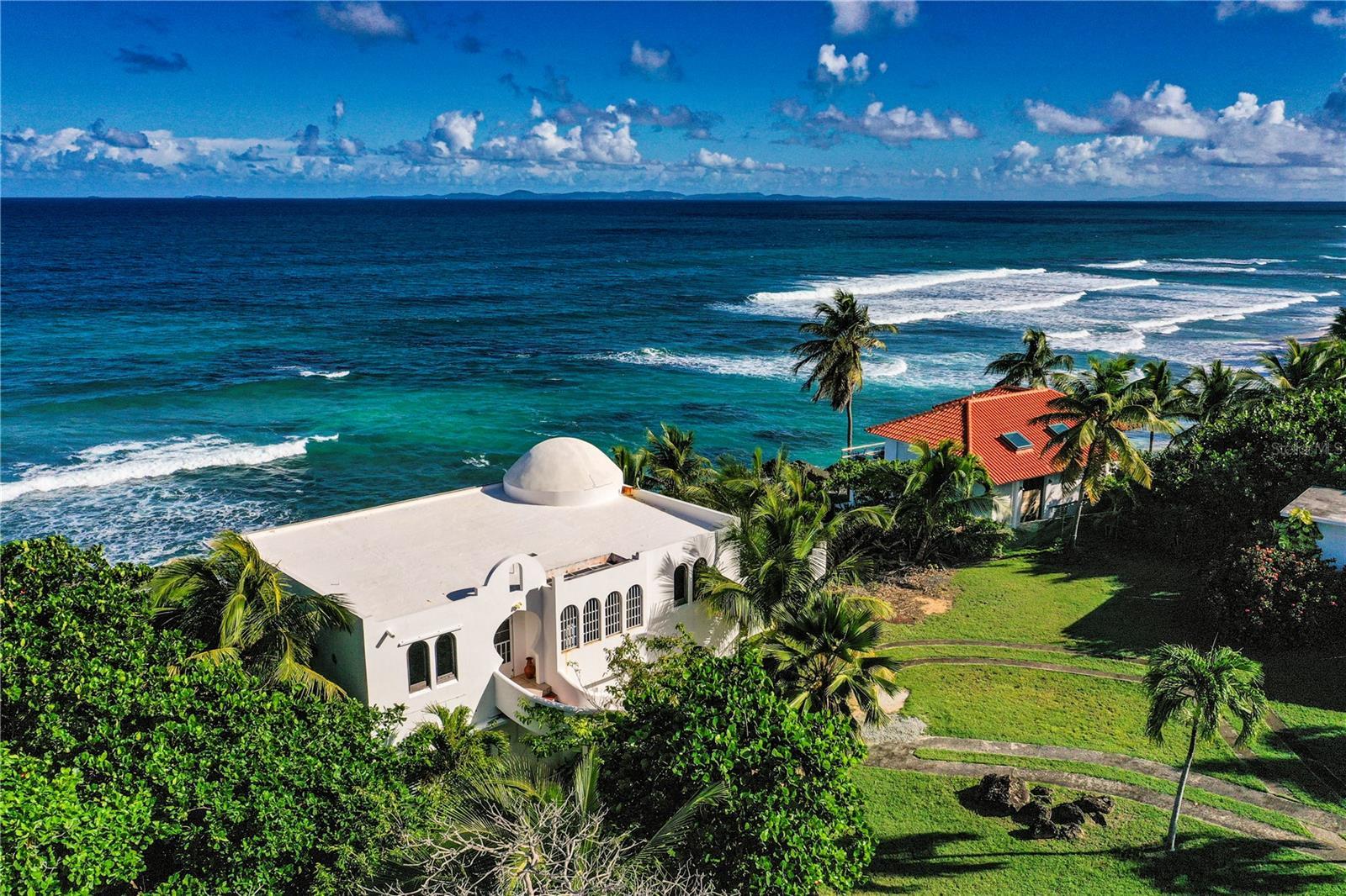 El-Maroc is an oceanfront estate in the privileged Bravos de Boston beach-side neighborhood of Vieques Island. Once in a generation opportunity, this sale represents the first time El-Maroc has ever been offered and is a one of a kind coastal home with Moroccan inspiration. The home is spectacularly sited on the cliffs at waters edge and could not be built here today. El Maroc is one of the most envied villa-estates on Vieques Island. El-Maroc is sighted on a breathtaking oceanfront lot of almost 1/2 acre and features a home that transports you to the enchantment of Morocco, inspired by the family's unforgettable journeys to Morocco. Nestled along the pristine shores of La Chata Beach, this exquisite property is to be restored to a luxurious estate with the natural splendor of the ocean as your back yard. The main house features three bedrooms, two bathrooms with two living areas, a library and two kitchens. The oceanside terrace is a wonderful retreat with waves rolling and crashing against the rocks below. This is a place to savor the ocean's raw beauty, to watch migrating whales breech in the distance, and to simply feel at home in the soothing sounds of the sea. This is also a favorite surfing beach so you can watch the action from the comfort of your home or grab your board and head out to catch a wave. The Guest House has one bedroom and one bathroom with kitchen and living room. This is the perfect place for family members or guests to have an extended stay. The Guest House could also be used as short or long term rental for extra income. While this wonderful home needs some updating the location of the home at water's edge could not be built today. This house sits comfortably on a rocky cliff protecting the house while also able to dip you toes in the water from your back yard. El Maroc is a once in a lifetime opportunity to create your own oceanfront retreat with your signature.