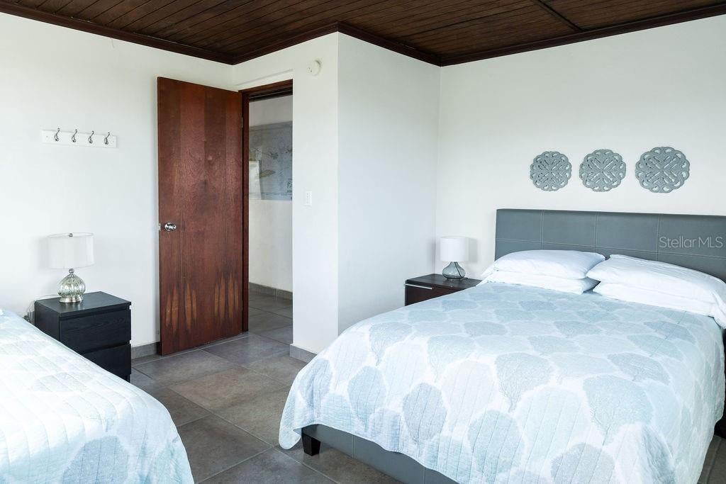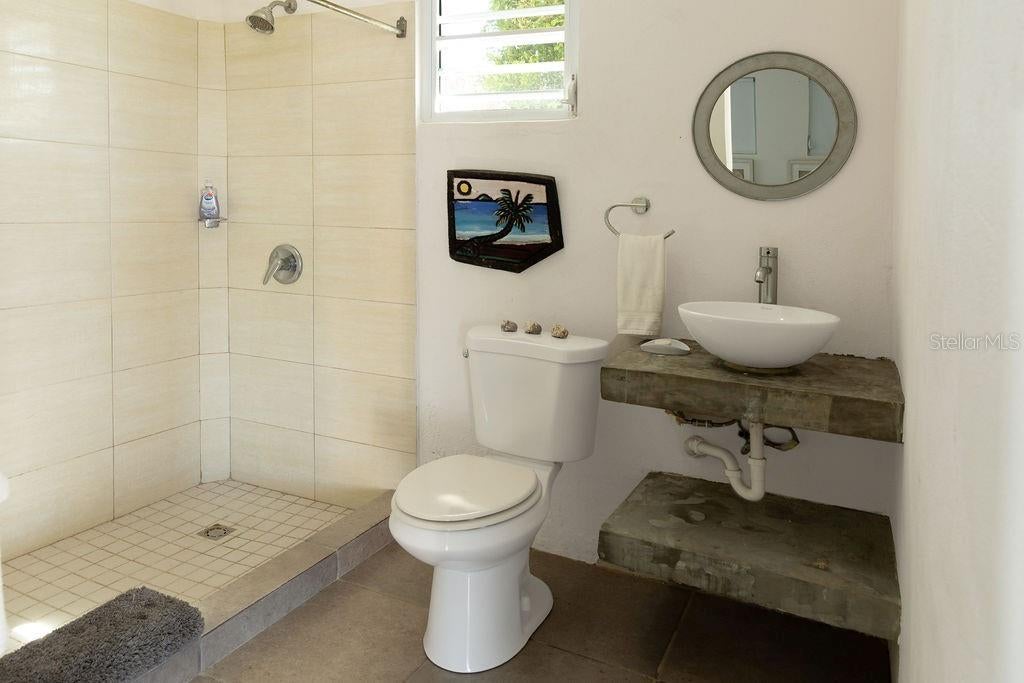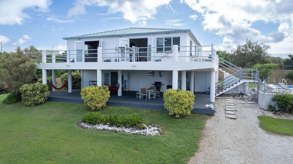 This recently constructed home offers a peaceful retreat with panoramic ocean vistas stretching toward Culebra and the main island. Located on a quiet and generous half acre of land and just a fifteen minute walk from the pristine sands of Bastimento Beach, this property provides the perfect balance of comfort and tranquility. The modern and solidly built two-story structure with Caribbean Lower Antilles-style architecture consists of two private units that exude elegance and style. It’s thoughtful design captures the essence of laid-back island living. The upper level unit is bound by an expansive wrap-around balcony excellent for outdoor dining or relaxing while soaking in the views of the sparkling waters. Inside, the functional open-concept layout seamlessly integrates the kitchen, living, and dining areas, enhanced by vaulted ceilings that amplify the sense of space and natural light. The spacious principal bedroom enjoys ocean views, with a large bathroom shared with the guest bedroom. Downstairs’ the property continues to impress with its expansive covered outdoor terrace, perfect for entertaining or enjoying the outdoors. The lower unit is a spacious open loft with a full bathroom, kitchenette and bar height seating for versatile use - perfect for guests or as a stand-alone vacation rental unit. The property is beautifully landscaped, with a tiled pool positioned to capture the stunning sunsets each evening, offering an additional layer of luxury. Currently a profitable vacation rental, this home is a great opportunity to enjoy island living while generating income. Whether you're looking for a family retreat or a profitable vacation rental, this home offers incredible potential for its next owner.