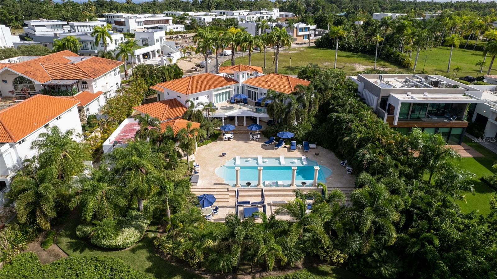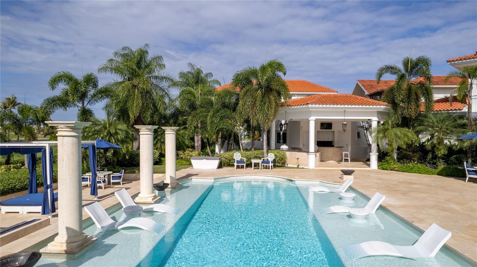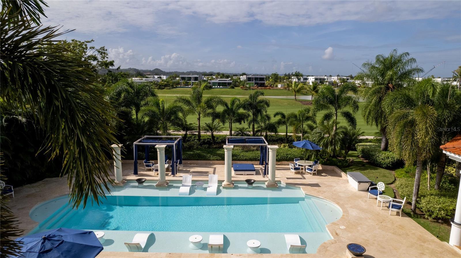 Welcome to your dream home at Dorado Country Estates, a private community offering large lots and a convenient location with just 64 lots, this neighborhood provides the perfect balance of luxury and tranquility, nestled adjacent to Dorado Beach Resort. This custom-built property is situated on a sprawling 3,054 sqmt lot with views of the new West TPC Course at Dorado Beach Resort. Boasting approximately of 7,000 sq. ft. of indoor/outdoor space, the home offers a harmonious blend of elegance and modern comfort, perfect for both relaxing and entertaining. It features four spacious bedrooms, including a junior suite on the first floor and three additional bedrooms on the second floor. The master suite is exceptionally ample, featuring two large closets, a big bathroom with a soaking bathtub, and direct access to the second-floor balcony, offering views of the golf course. The home also includes a versatile room currently used as a gym, which can easily be adapted to suit other purposes such as a playroom, hobby space, or additional office. There is also a dedicated office space and a private movie theatre, providing ample room for convenience and entertainment. There are seven fully renovated bathrooms and two powder rooms to accommodate the needs of a modern lifestyle. Upon entering, you are greeted by a grand entrance with double-height ceilings and a skylight that fills the home with natural light, creating an inviting atmosphere. The fully renovated kitchen showcases a sleek, all-white design with ample storage and cooking space, perfect for culinary enthusiasts. Outdoors, a generous terrace with a sparkling pool and a gazebo area with a BBQ and a bar provides the perfect setting for hosting gatherings or unwinding in style. The second-floor balcony offers serene views of the golf course, serving as a peaceful retreat for morning coffee and evening relaxation. Residence comes with a power generator that runs the entire house and a 1,000 gallon water cistern.