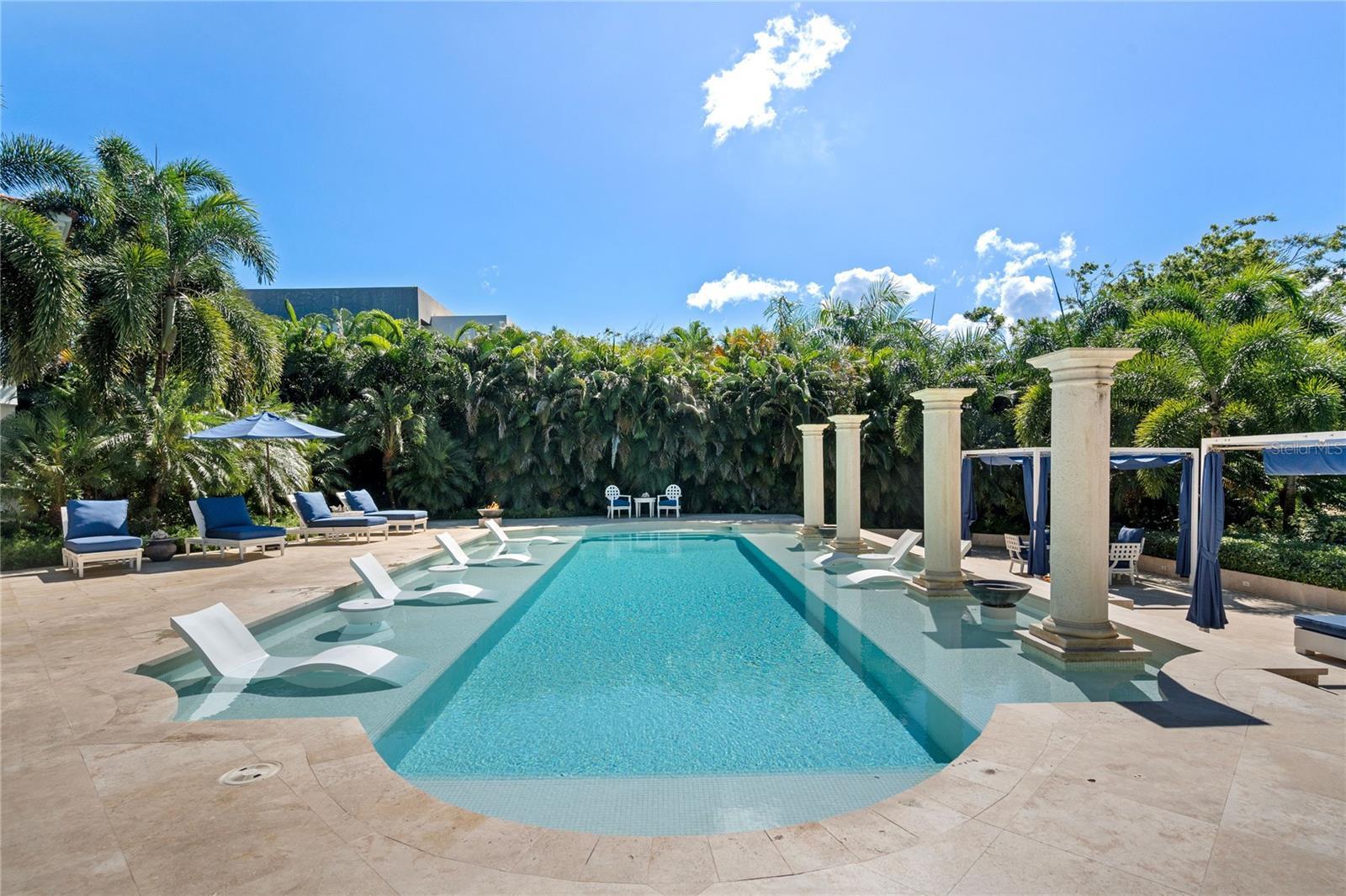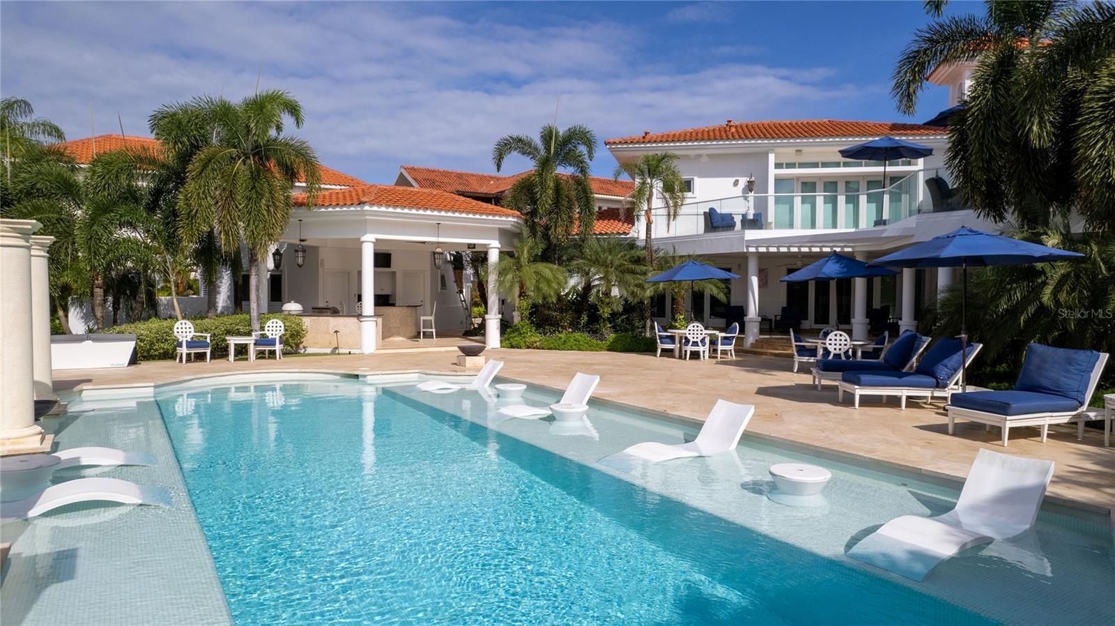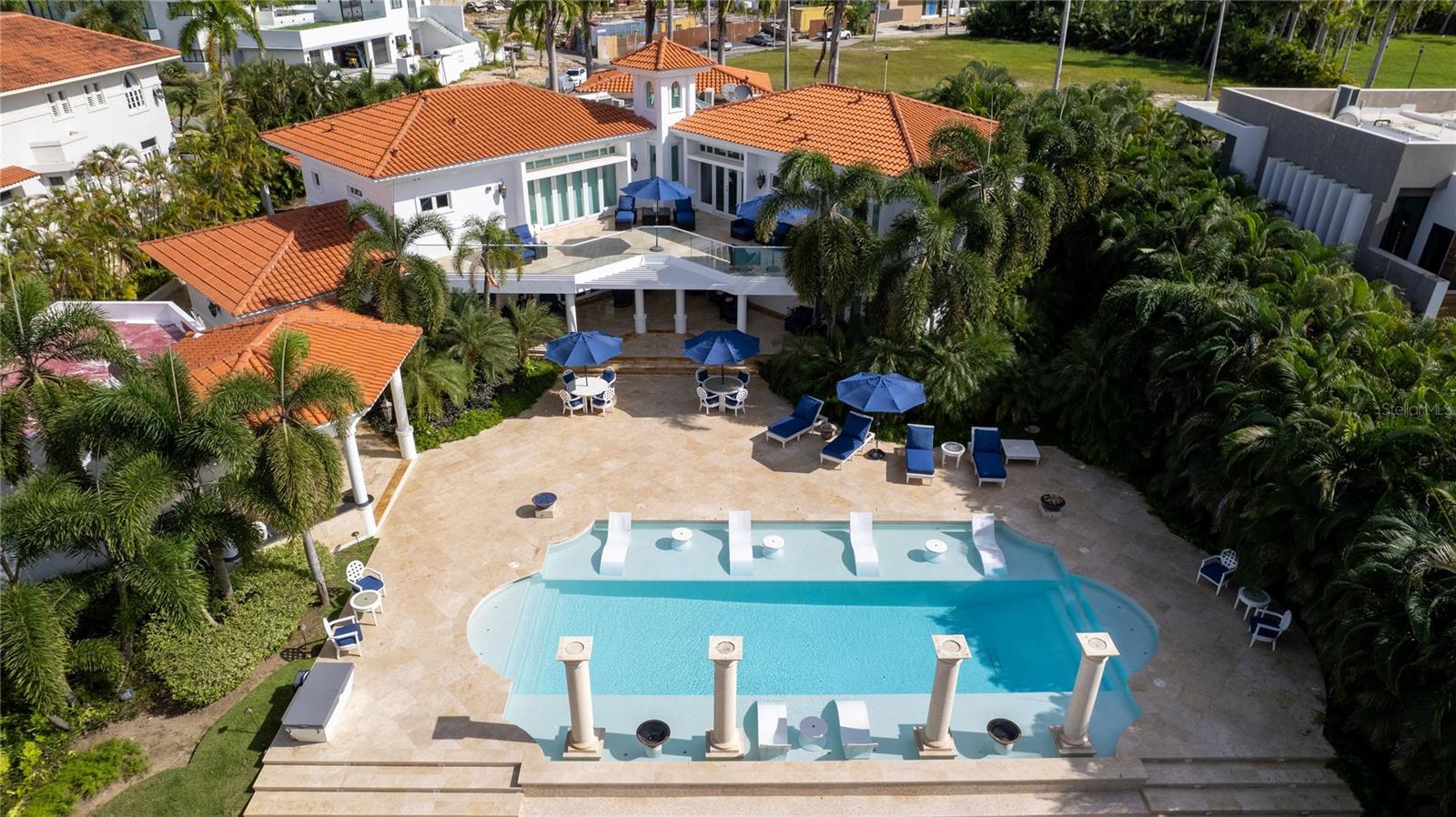 Welcome to your dream home at Dorado Country Estates, a private community offering large lots and a convenient location with just 64 lots, this neighborhood provides the perfect balance of luxury and tranquility, nestled adjacent to Dorado Beach Resort. This custom-built property is situated on a sprawling 3,054 sqmt lot with views of the new West TPC Course at Dorado Beach Resort. Boasting approximately of 7,000 sq. ft. of indoor/outdoor space, the home offers a harmonious blend of elegance and modern comfort, perfect for both relaxing and entertaining. It features four spacious bedrooms, including a junior suite on the first floor and three additional bedrooms on the second floor. The master suite is exceptionally ample, featuring two large closets, a big bathroom with a soaking bathtub, and direct access to the second-floor balcony, offering views of the golf course. The home also includes a versatile room currently used as a gym, which can easily be adapted to suit other purposes such as a playroom, hobby space, or additional office. There is also a dedicated office space and a private movie theatre, providing ample room for convenience and entertainment. There are seven fully renovated bathrooms and two powder rooms to accommodate the needs of a modern lifestyle. Upon entering, you are greeted by a grand entrance with double-height ceilings and a skylight that fills the home with natural light, creating an inviting atmosphere. The fully renovated kitchen showcases a sleek, all-white design with ample storage and cooking space, perfect for culinary enthusiasts. Outdoors, a generous terrace with a sparkling pool and a gazebo area with a BBQ and a bar provides the perfect setting for hosting gatherings or unwinding in style. The second-floor balcony offers serene views of the golf course, serving as a peaceful retreat for morning coffee and evening relaxation. Residence comes with a power generator that runs the entire house and a 1,000 gallon water cistern.