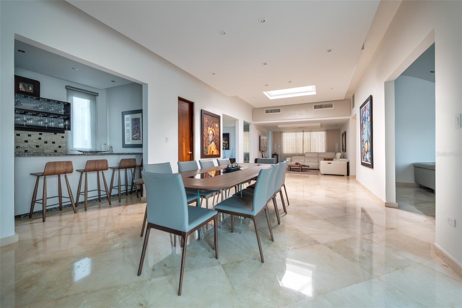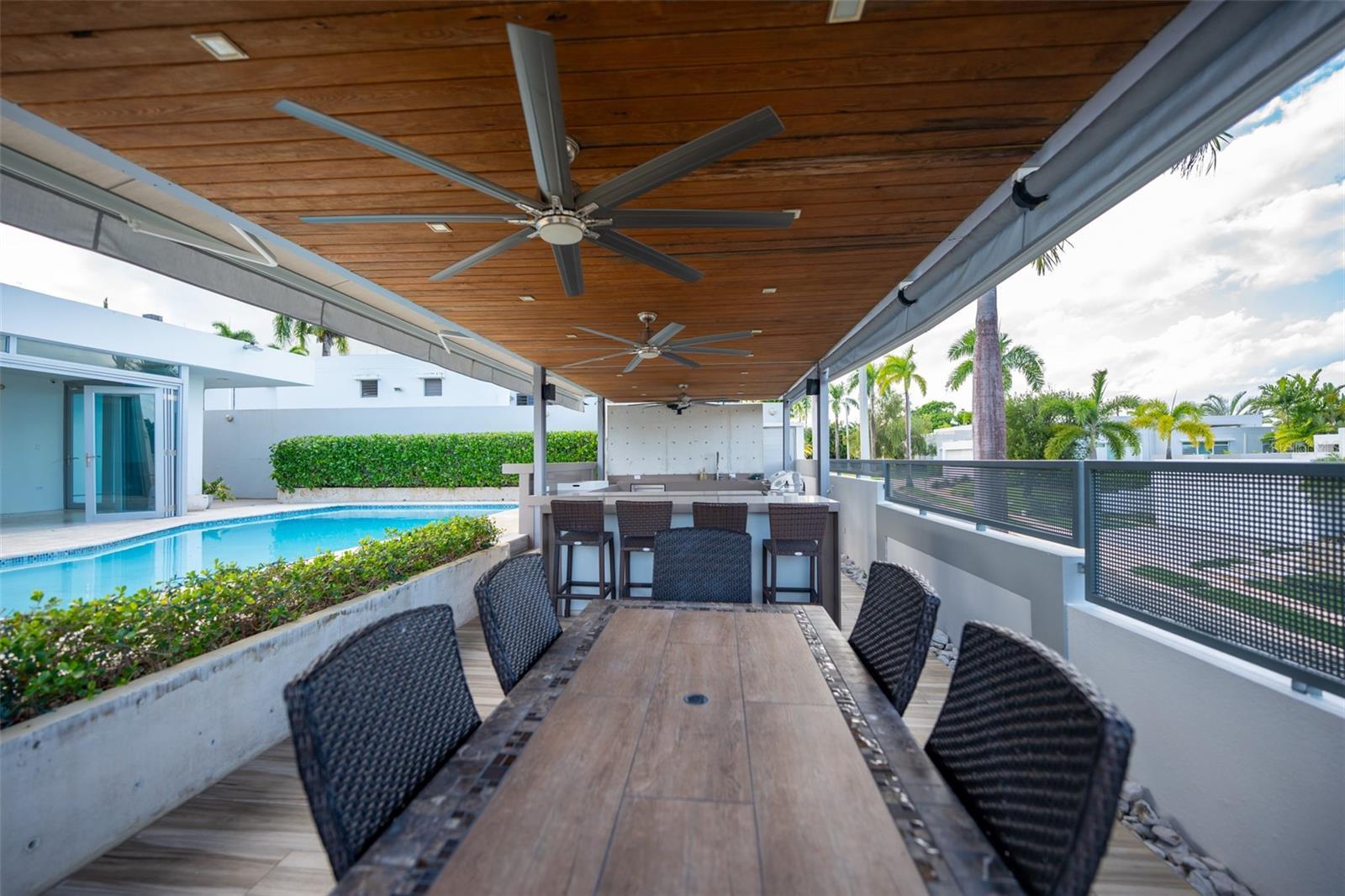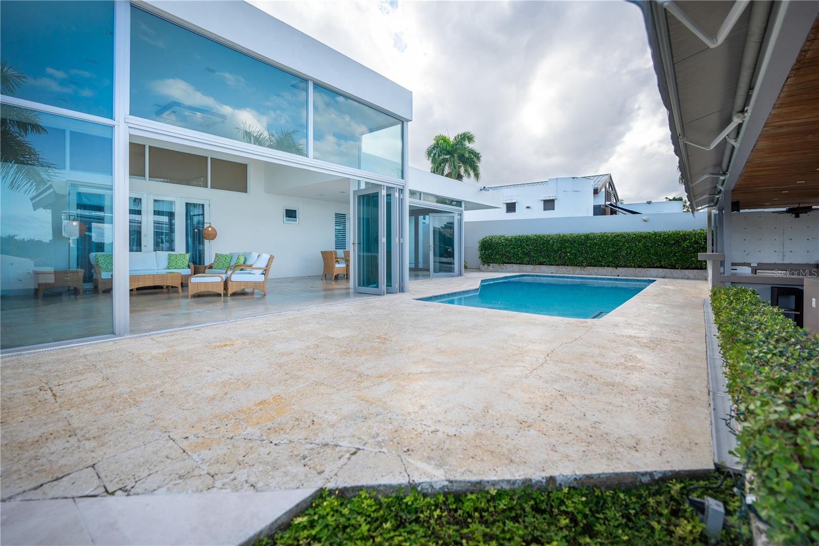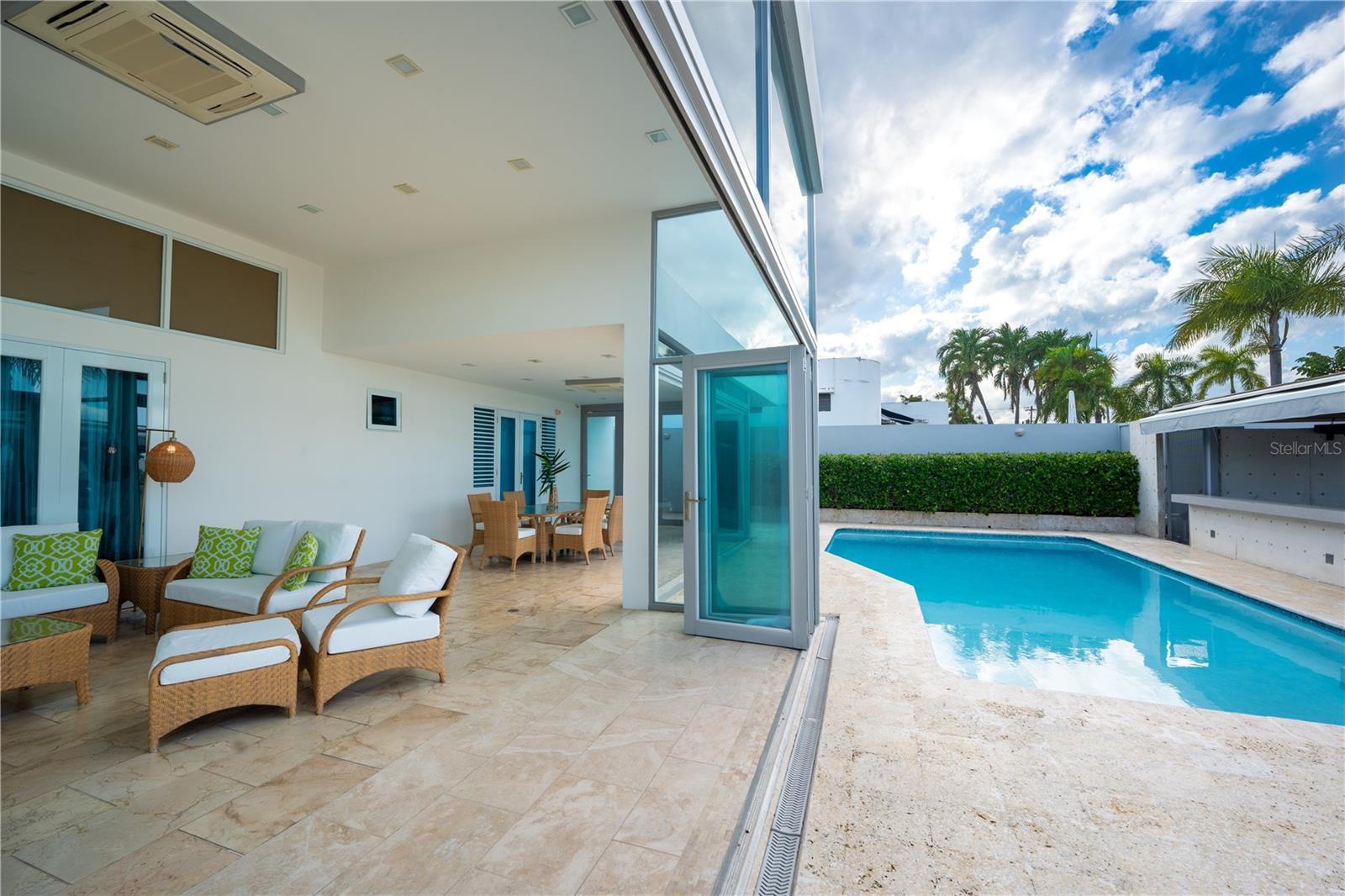 Nestled in the exclusive neighborhood in ESTANCIAS DE TORRIMAR at Guaynabo, Puerto Rico, this stunning 4-bedroom, 6-bathroom luxury residence offers 3,971 sqft of unparalleled elegance and modern sophistication. From the moment you arrive, the meticulously designed exterior greets you with a blend of contemporary architecture and natural beauty, featuring expansive glass windows that provide panoramic views of the lush island landscape. The home sits on a generous lot, offering privacy and serenity while still being conveniently located near top-tier schools, shopping, dining, and cultural landmarks. Step inside to discover a grand open-concept living space that seamlessly blends functionality with style. The expansive living room features soaring ceilings, fine marble floors, and custom lighting, creating a perfect ambiance for both relaxation and entertaining. The gourmet kitchen is a chef’s dream, equipped with high-end appliances, sleek cabinetry, and granite countertops, making it ideal for preparing exquisite meals. Each of the four bedrooms is a private retreat, with luxurious en-suite bathrooms and built-in closets. The master bedroom has direct access to the enclosed pool terrace that invites you to enjoy the tropical surroundings in peace. The home's outdoor living spaces are as impressive as its interior, offering multiple terraces, a sparkling refreshing pool, and a fully equipped outdoor kitchen, perfect for hosting gatherings or simply unwinding while enjoying the breathtaking views of the Caribbean landscape. Additional features include a designed state-of-the-art home theater, an elevator, an amazing wine cellar with a wet bar, an enclosed terrace with a/c and an additional exterior wood roof terrace with a kitchen and bar, a full generator and a 600 gallon cistern. This residence represents the pinnacle of luxury living in Guaynabo, combining modern comforts with the beauty and tranquility of Puerto Rico's finest real estate 3,971 sqft | 953 sqm | HOA $400/mo. | CRIM $3,426