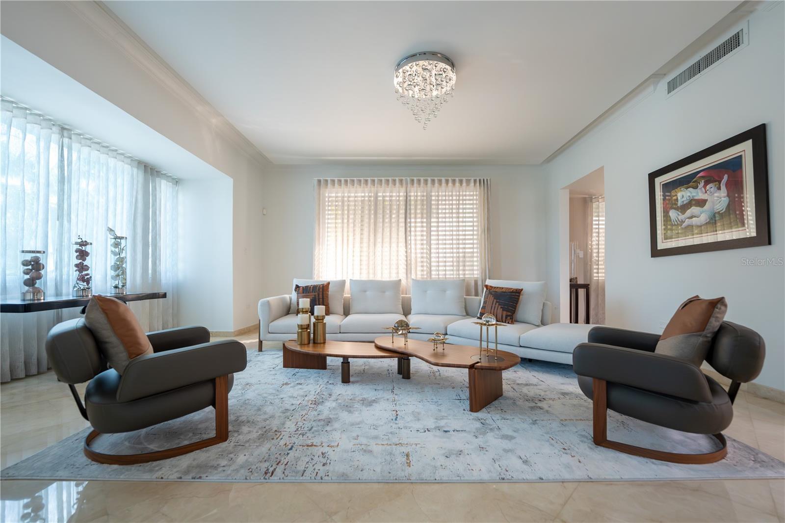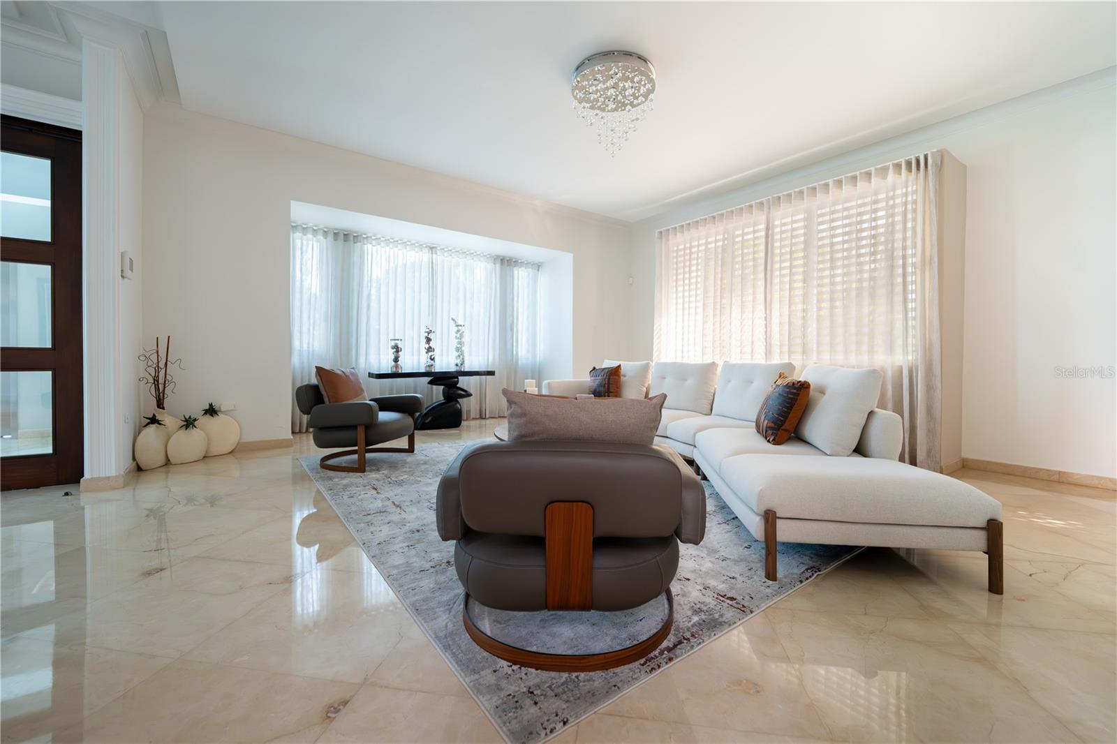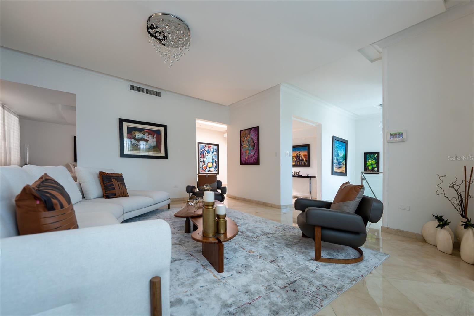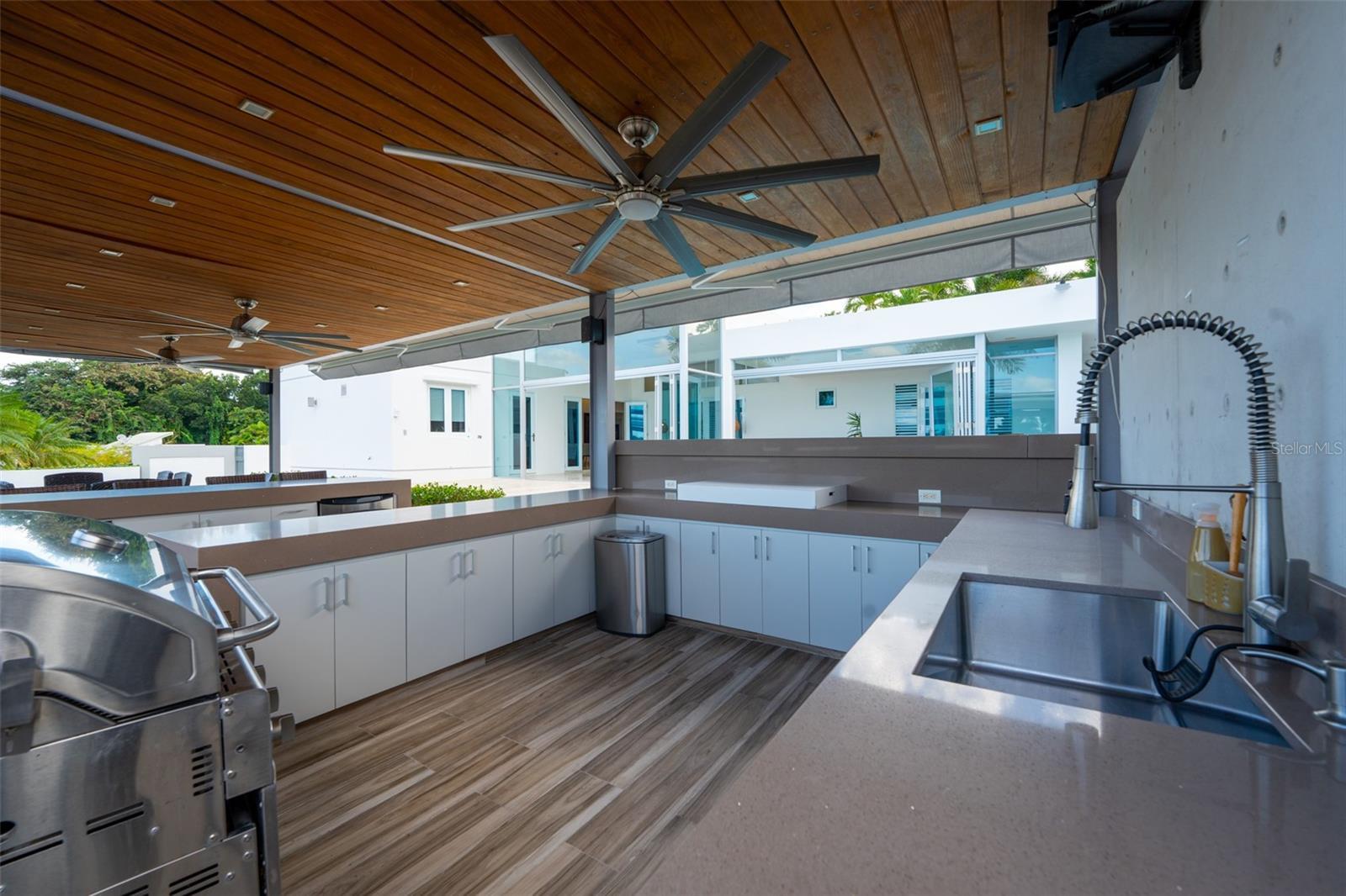 Nestled in the exclusive neighborhood in ESTANCIAS DE TORRIMAR at Guaynabo, Puerto Rico, this stunning 4-bedroom, 6-bathroom luxury residence offers 3,971 sqft of unparalleled elegance and modern sophistication. From the moment you arrive, the meticulously designed exterior greets you with a blend of contemporary architecture and natural beauty, featuring expansive glass windows that provide panoramic views of the lush island landscape. The home sits on a generous lot, offering privacy and serenity while still being conveniently located near top-tier schools, shopping, dining, and cultural landmarks. Step inside to discover a grand open-concept living space that seamlessly blends functionality with style. The expansive living room features soaring ceilings, fine marble floors, and custom lighting, creating a perfect ambiance for both relaxation and entertaining. The gourmet kitchen is a chef’s dream, equipped with high-end appliances, sleek cabinetry, and granite countertops, making it ideal for preparing exquisite meals. Each of the four bedrooms is a private retreat, with luxurious en-suite bathrooms and built-in closets. The master bedroom has direct access to the enclosed pool terrace that invites you to enjoy the tropical surroundings in peace. The home's outdoor living spaces are as impressive as its interior, offering multiple terraces, a sparkling refreshing pool, and a fully equipped outdoor kitchen, perfect for hosting gatherings or simply unwinding while enjoying the breathtaking views of the Caribbean landscape. Additional features include a designed state-of-the-art home theater, an elevator, an amazing wine cellar with a wet bar, an enclosed terrace with a/c and an additional exterior wood roof terrace with a kitchen and bar, a full generator and a 600 gallon cistern. This residence represents the pinnacle of luxury living in Guaynabo, combining modern comforts with the beauty and tranquility of Puerto Rico's finest real estate 3,971 sqft | 953 sqm | HOA $400/mo. | CRIM $3,426