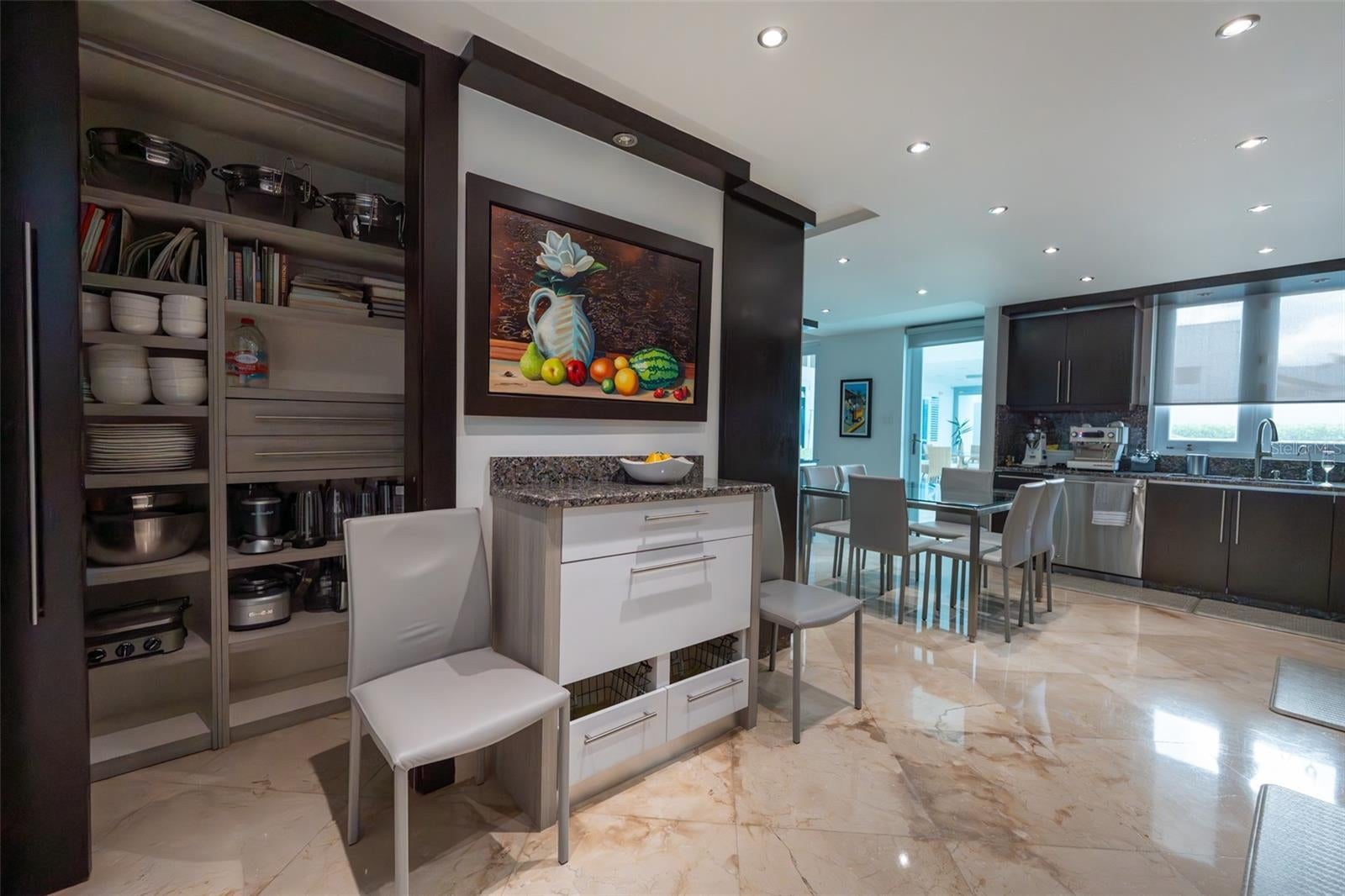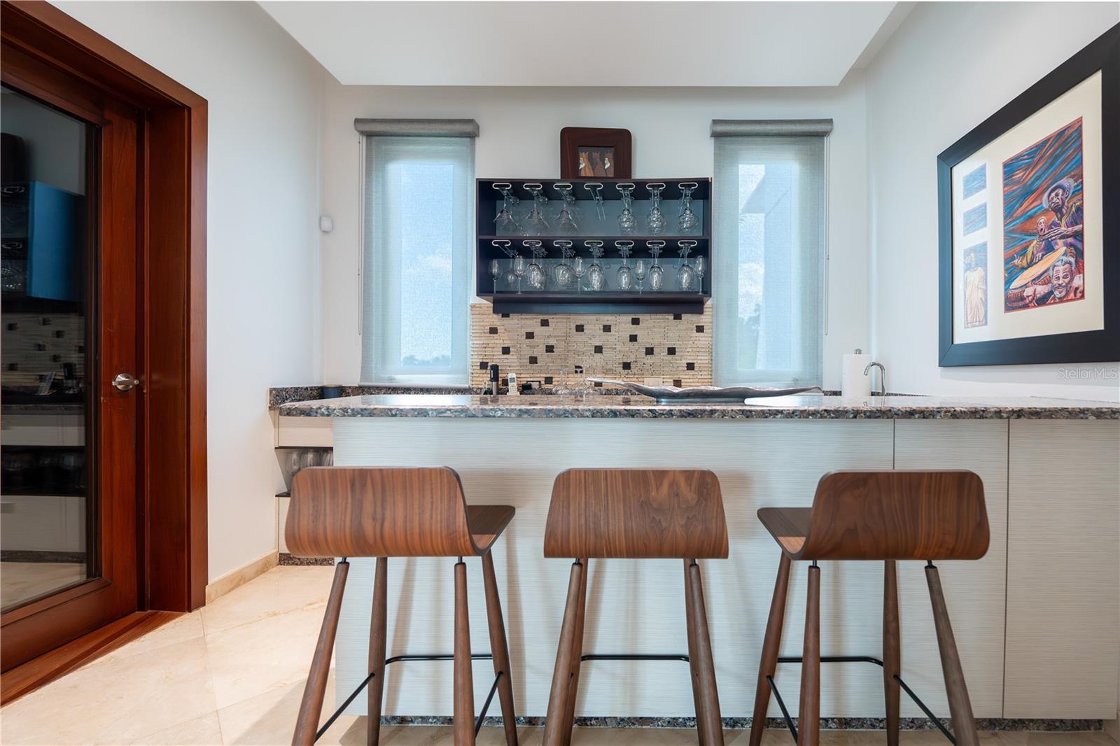 - Accessibility Features, Ceiling Fans(s), Dry Bar, Eat-in Kitchen, Elevator, High Ceilings, Living Room/Dining Room Combo, Smart Home, Stone Counters, Vaulted Ceiling(s), Wet Bar, Window Treatments