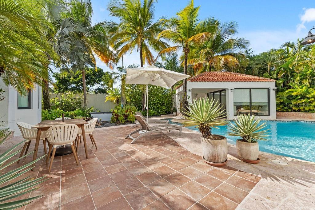 Discover the best Dorado Beach East one story home in this fully remodeled and expanded Golfer model home. A true move-in-ready property offered fully furnished and equipped, just pack your toothbrush. Located on a corner lot in a quiet cul-de-sac, the 1,334-square-meter property offers privacy and convenience near the South Gate of Dorado Beach East. The outdoor space is designed for relaxation and entertainment, featuring a large pool, an air-conditioned gazebo that doubles as a guest house or office, a cold plunge, an outdoor shower and bathroom, and a BBQ grill area. The lush landscaping, complete with a small pond, creates a serene setting for gatherings or quiet moments. Inside, the home features 4 spacious bedrooms, 4.5 bathrooms, an open-concept kitchen and dining area, a bright living room with cathedral ceilings, and a TV room that opens to the outdoor space. The master suite includes a spa-like bathroom and a walk-in closet.
