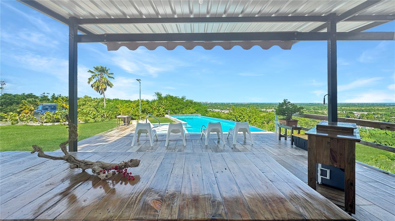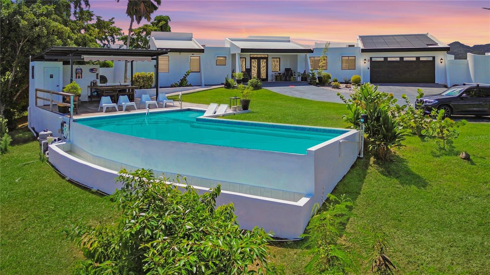 Rare Find Estate with Panoramic Ocean Views: Your Caribbean Oasis Discover a rare gem on a private hilltop in the breathtaking North Coast of Puerto Rico. This turnkey estate offers unparalleled beauty, privacy, and luxury. Nestled in the Domingo Ruiz Ward of Arecibo, this 2,700 square foot property boasts stunning panoramic views of the iconic Islote Ward, the nearby airport, and the exhilarating skydiving adventures. Immerse yourself in the Caribbean lifestyle with this fully renovated home. The open-concept layout creates a seamless flow between the spacious living room, dining area, and modern kitchen. Enjoy breathtaking mountain vistas from the ample covered terrace and living room, perfect for entertaining guests or simply relaxing. The infinity pool, complete with a gazebo and outdoor cooking area, is ideal for hosting unforgettable gatherings. Security and sustainability are top priorities. The gated entrance and security camera system provide peace of mind, while the solar panel system with Tesla Battery and motorized water tank ensure both energy efficiency and independence. Accessible bathrooms and fully furnished interiors make this home move-in ready. This extraordinary property offers endless possibilities. Whether you're seeking a private retreat, an investment opportunity, or a short-term rental, this estate delivers on all fronts. Don't miss this chance to own a truly exceptional piece of paradise. The sale is not subject to appraisal. Contact us today to schedule a private tour.