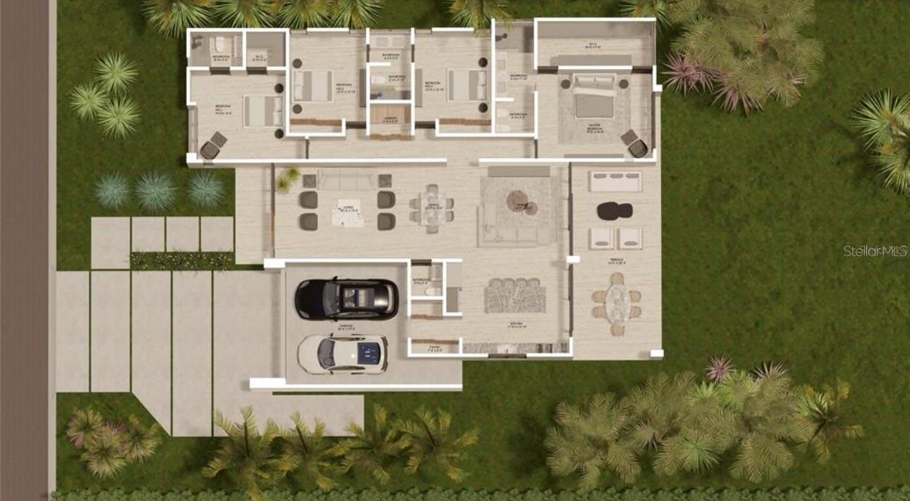 - Cathedral Ceiling(s), High Ceilings, L Dining, Living Room/Dining Room Combo, Open Floorplan, Primary Bedroom Main Floor, Smart Home, Stone Counters, Walk-In Closet(s)