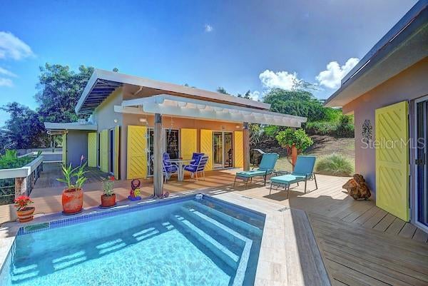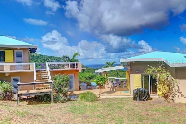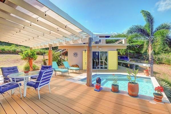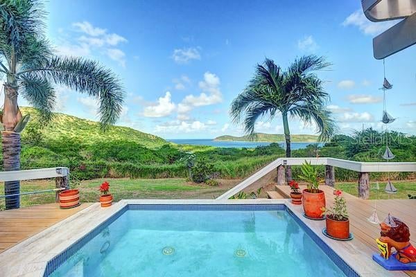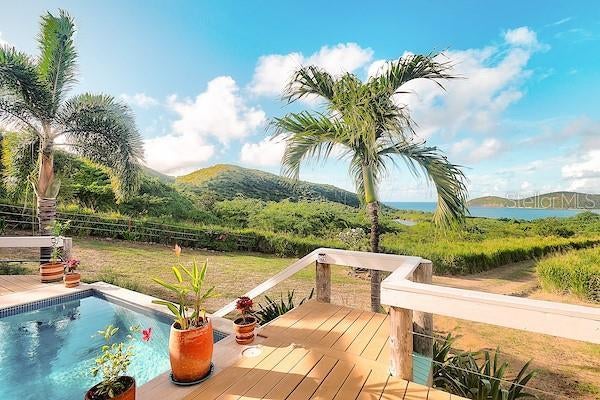 This property known as Casa Frangipani is a stunning remarkable 4370 square foot 3-bedroom 3-bathroom house on the beautiful Island of Culebra, Puerto Rico, one of the Spanish Virgin Islands. The house is on a sprawling 1 acre lot with spectacular views over Zoni Beach, the Zoni Beach Lagoon, the Island of Cayo Norte, and the vast Atlantic Ocean. The property is in the Alturas de Zoni neighborhood of Culebra and is just 3 blocks from Zoni Beach. The island of Culebra is known for it's clean environment, natural beauty, stunning surroundings, crystal clear waters, and pristine beaches. For beaches the property is within 8 miles of all the beaches in Culebra including, but not limited to, the following beaches. - Zoni Beach - 3 blocks, - Brava Beach – 4 1/2 miles, - Datillas Beach – 5 3/4 miles, - Flamenco Beach (perennially ranked one of the top 10 beaches in the world) – 6 1/4 miles miles, - Tamarindo Beach – 6 1/4 miles, - Soldier's Point Beach – 8 miles. The property is fully fenced with a gate at the driveway and consists of two buildings with the pool and pool deck between the two buildings. The first building is the great room consisting of the living room, kitchen, dining room, and one of the house's bathrooms. The second building is two floors. The first floor consists of 2 bedrooms with a bathroom between the bedrooms and the garage. The garage is plumbed for water with a full tub sink in the garage. The second floor of the second building contains the primary suite with primary bedroom, primary bathroom, and a 600 square foot outdoor balcony with the spectacular views described above. Zoni Beach, where the property is located is one of the premier areas of Culebra. The community of Alturas de Zoni is 31 exclusive properties nestled next to Zoni Beach. The community has a Home Owner's Association that assures the covenants of the association are followed thus protecting all of the community and all Owners investing in the community. The property is 5 1/4 miles from the town of Culebra. All services offered in Culebra such as government services, public services, transportation services, post office, banking, schools, fire station, police station, hospital, churches, grocery stores, hardware store, gift shops, dive shops, restaurants, activities and nightlife are a short drive from the property. For traveling Casa Frangipani is 5 1/4 miles from the Culebra ferry dock which is in the town of Culebra and is 4 1/2 miles from the Culebra airport. Casa Fangipani is a spectacular property located in one of the premier neighborhoods on the Island of Culebra. A great house as a second home or to live full time.