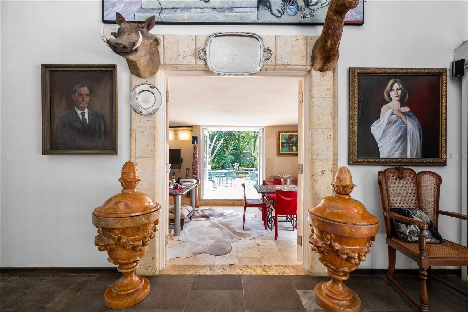 Welcome to this stunning architectural jewel in Garden Hills, a unique masterpiece with a double lot (approximately half an acre*), designed by a renowned architect showcasing a harmonious blend of urban elegance and modern functionality, offering an unparalleled retreat just moments from the city and a few steps to the Caparra Country Club. The house sits on one of the largest lots in Garden Hills. Situated in a very private dead end street, in a gated community, the residence is in Garden Hills, one of THE most exclusive coveted neighborhoods in Guaynabo and the San Juan metro area. This thoughtfully designed home features an open-concept floor plan perfectly integrating the ample dining area to the majestic Great Room with its soaring double height cathedral ceilings, all seamlessly flowing to the 3 terraces surrounding it in every corner. The perfect flow between the indoor and outdoor living areas connects all three terraces to the tranquil koi ponds and the striking infinity pool in the center, providing a peaceful and serene oasis, yet also ideal for hosting and entertaining large gatherings. The home also boasts 3 bedrooms all with a baths and a fourth bonus, or caretaker’s bedroom with an en-suite bath, a family room, a powder room and an office with a separate entrance overlooking the scenic gardens. The master bedroom has its own private terrace with an outdoor pool/spa also overlooking the lush gardens. The chef’s kitchen combines sleek finishes with functionality and opens to another terrace and small pond, making it ideal for intimate gatherings. The office faces another terrace with an oriental style pond filled with water lilies, adding a unique peaceful and inspiring work area to the room. All is complemented with more luxurious details such as abundant natural light, fresco paintings, a 1000 bottle wine cellar, stone floors, an elevator, stained glass windows, a 2 car garage, a generator and a cistern. *This house has 2 adjacent separate lots of 980s/m and 900s/m forming the beautiful gardens of the house, together making it one of the largest lots in Garden Hills. This contemporary sanctuary is only 12 minutes from San Juan and right next to some of the best schools, great restaurants, superb shopping venues and excellent sport facilities, combining suburban and city living at its best. Also available for RENT.