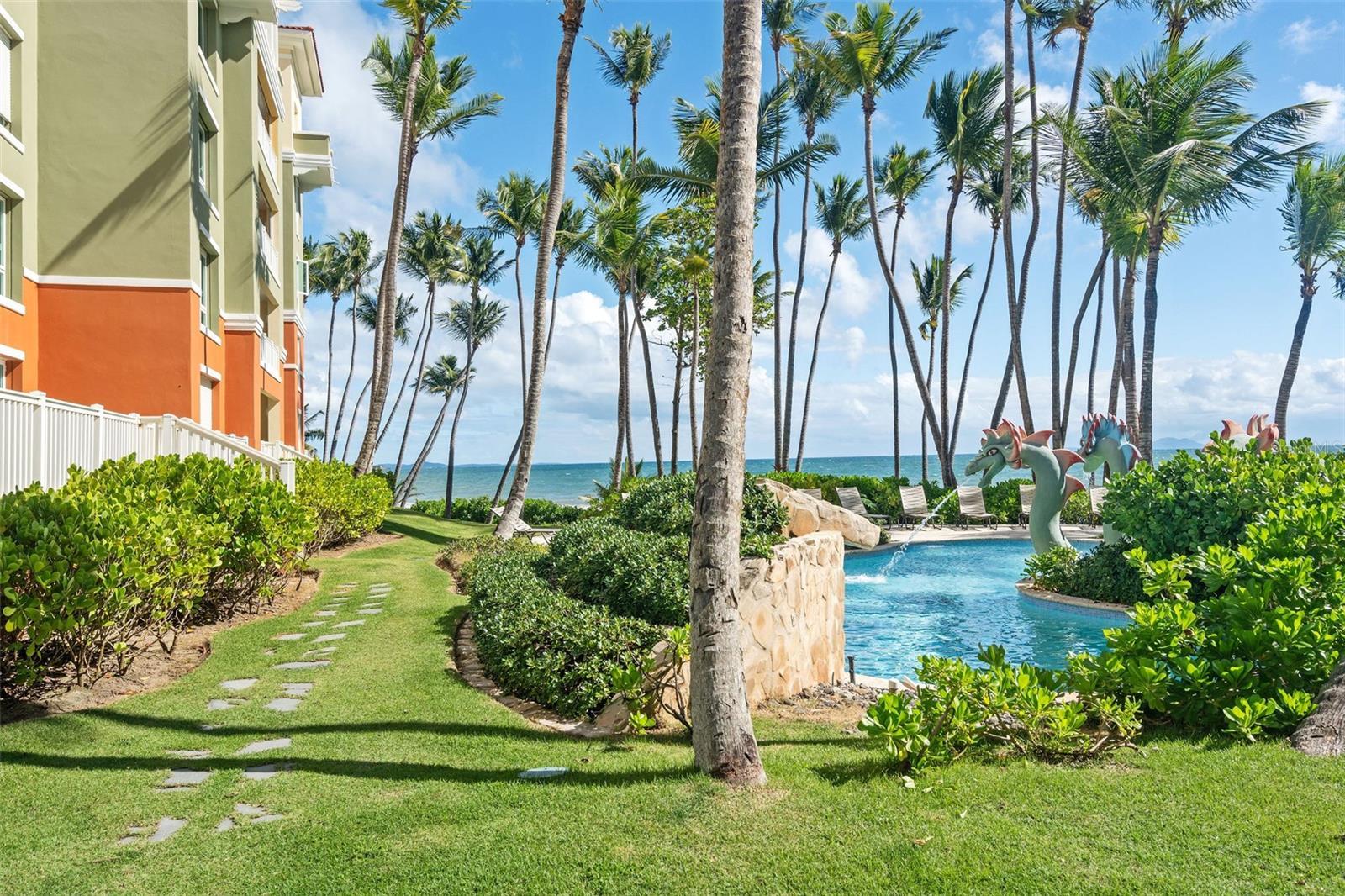Beautiful ocean views and luscious gardens throughout the complex. Terrace and 2 balconies. Furnished corner unit in an exclusive beach front community with direct beach access and resort style facilities including multiple pools, and jacuzzi. Kitchen with granite countertop. Full-service generator. 1 parking space. Concierge, ice service, private wine room, multiple pools, and jacuzzi. Golf cart community.Golf courses. Tennis and pickleball courts. Beach Club with a beach tennis court.Equestrian Center with horse stables. Hiking trails and Gym.Marina.Marbella