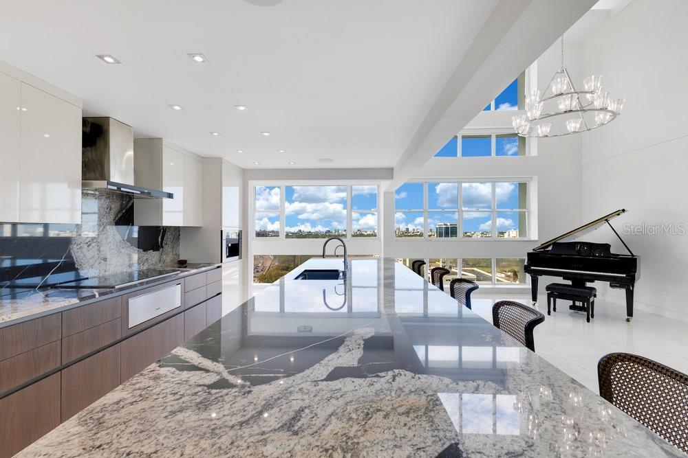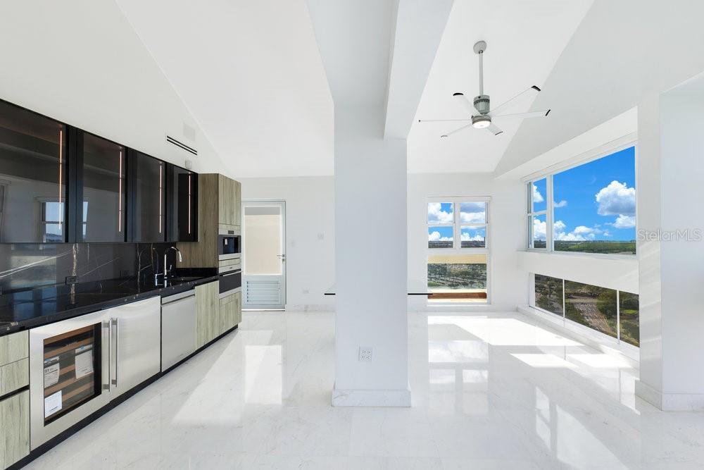 Modern, completely renovated in 2024, this 5,989 sq. ft. two-level penthouse offers a true first-owner experience, with high-end appliances, premium finishes, and expansive panoramic views. Featuring 3 bedrooms (convertible to 4), an office, 3 full bathrooms, 2 powder rooms, and a dramatic double-height living room. The outdoor terrace includes a built-in Bull Angus BBQ. The custom Italian minimalist kitchen by Record Cucine is equipped with Sub-Zero, Wolf, and Miele appliances. Upstairs, a private suite includes a kitchenette and entertainment area. Additional features include: • 4 covered parking spaces • 10’x10’ storage room • Kyknos Greek marble floors, premium Brazilian granite surfaces • Smart home technology: SONOS system, automated lighting, Hikvision security • Building amenities: 24/7 security, full power generator, water cistern, fitness room, and pool Located in a prime area of San Juan, minutes from Condado, Old San Juan, shopping centers, and the airport. Schedule your private tour today and secure this one-of-a-kind penthouse.