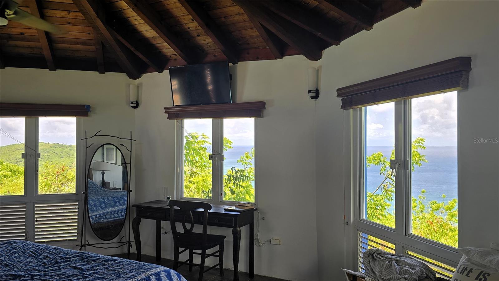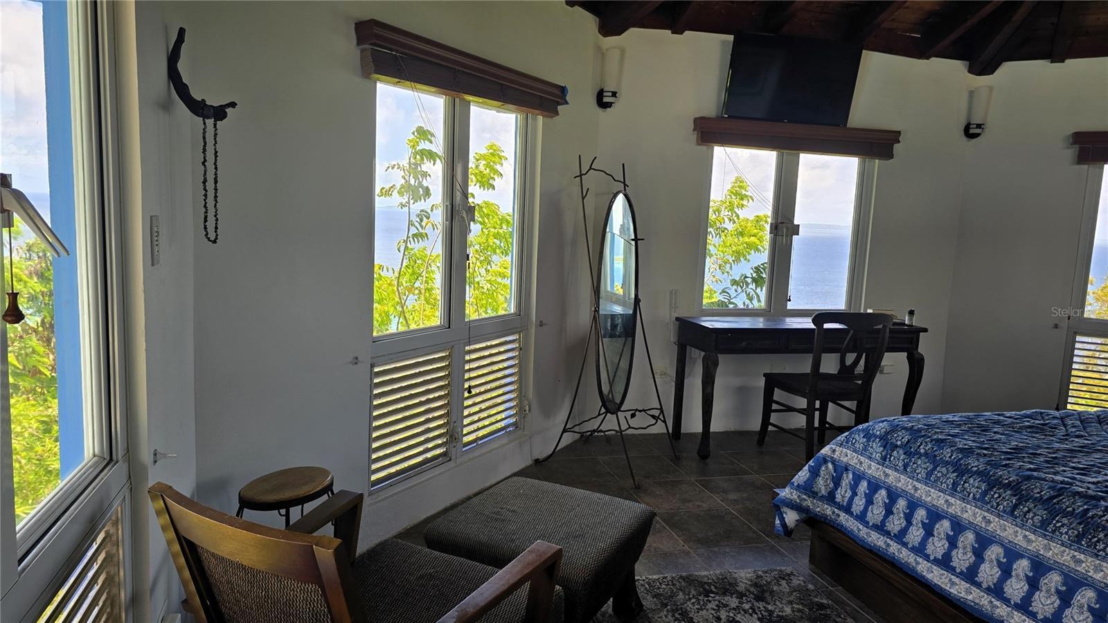 Villa Navillus Sur, Las Quintas #3, lies atop Punta Melones with 300 degree views of the big island of Puerto Rico, Luis Pena, Vieques, St Thomas and, on a clear day, St Croix, more than 55 miles distant. The property, meticulously landscaped, with more than 25 varieties of palms from all over the world, boasts a spectacular open plan vaulted ceiling great room with wrap around porch, double oven kitchen, guitar cabinet and space to dance. This place is a musician’s paradise. Step outside to the astro-turfed yoga deck and self watering herb and vegetable garden and you can watch the spectacular sunsets that only Culebra knows. Walk to the east and lie on the star deck, a teak and futon platform and watch the planets and moon rise, amidst the clearly visible milky way - sleep there during meteor showers and wake to sunrise over Ensenada Harbor. There are 4 bedrooms: a master suite by the pool, with jacuzzi, skylight shower and panoramic views - the sun rises to the left of the bed and sets to the right; a full en suite bedroom below the master suite with private deck; two side by side en suite bedrooms overlooking the gardens and Luis Pena nature preserve, are down one flight of stairs for maximum privacy - the kids can go to sleep while the music plays above. The Island of Culebra itself is a small, idyllic island located about 17 miles east of mainland Puerto Rico and 12 miles west of St. Thomas of the United States Virgin Islands. Known for its unspoiled natural beauty, Culebra is a haven for nature lovers, beach enthusiasts, and adventure seekers. Its tranquil atmosphere, crystal-clear waters, and pristine beaches make it one of the most sought-after destinations in the Caribbean. Whether you’re looking to relax on world-class beaches, explore underwater wonders, or immerse yourself in nature, Culebra provides an unforgettable Caribbean experience. Las Quintas, one mile from town, no traffic and tranquil as can be, is one of the most sought after locations on Culebra, a rare coastal gem offering direct access to the island’s clearest waters and vibrant coral reefs, perfect for snorkeling, paddleboarding, kayaking, sunbathing or simply enjoying year-round sunsets that rival anywhere in the world. The beach, part of the Luis Peña Channel Nature Preserve, fronts protected waters that do not allow anchoring of boats nor fishing. Melones beach, quite literally, boasts the most vibrant coral reefs, underwater rock formations, sea grass, teeming with an array of sea life, colorful fish, Sea Turtles, Sting Rays, Manati, and more. Regarding Culebra Island beaches and watersports La Quinta #3 is within 7 miles of all the beaches in Culebra including, but not limited to the following beaches: Melones Beach - 1/4 mile; Datillas Beach - 1 1/4 miles; Flamenco Beach - 3 1/4 miles; Tamarindo Beach - 3 1/4 miles; Resaca Beach - 3 1/4 miles (3/4 miles on foot); Soldier's Point - 3 1/2 miles; Carlos Rosario - 4 miles (3/4 miles on foot); Brava Beach - 4 1/2 miles (3/4 miles on foot). All in all, Navillus Sur is one of the most desired luxury properties on the Island of Culebra. A house to enjoy the best of Caribbean life. This place needs to be seen to be believed.