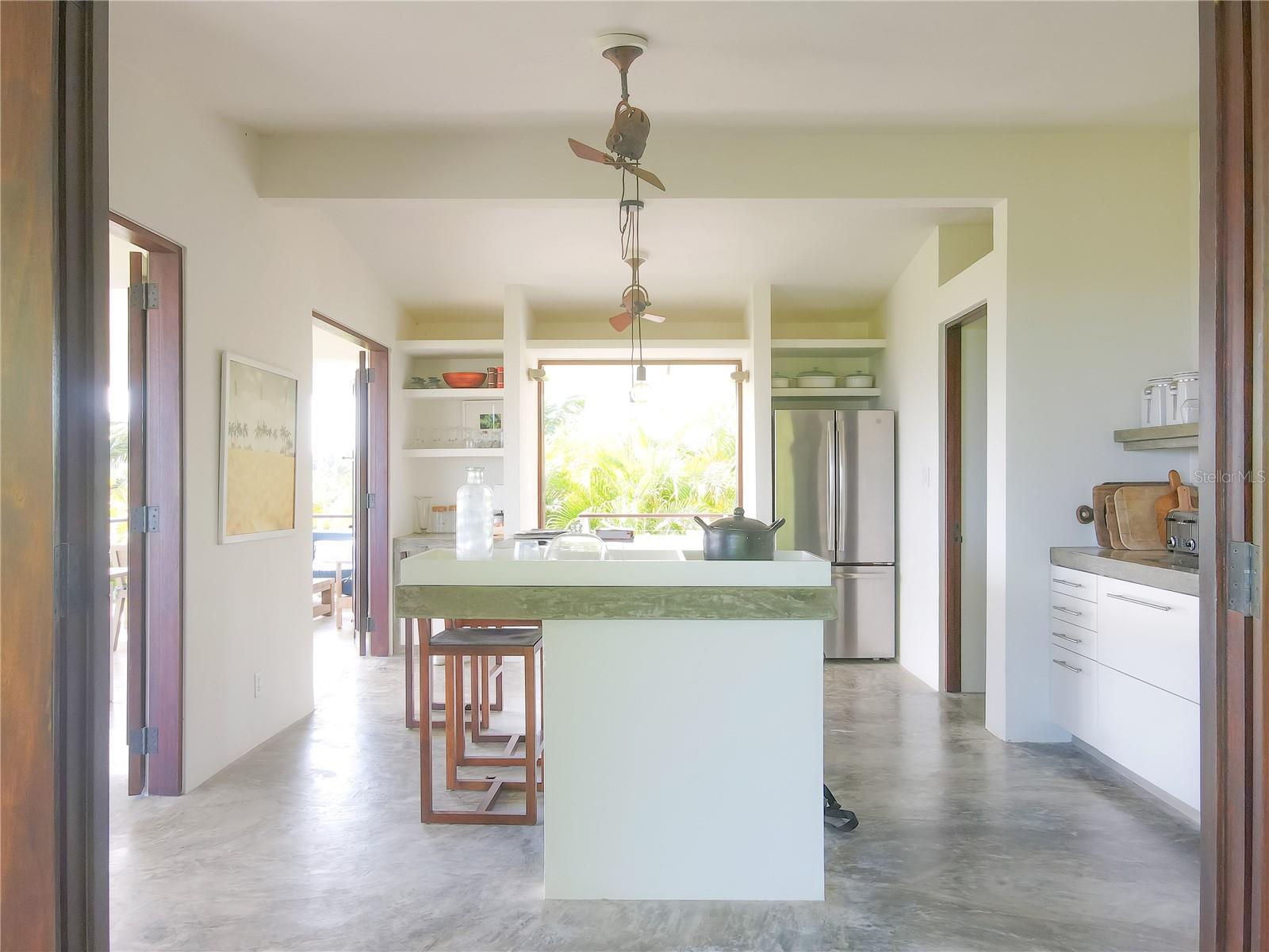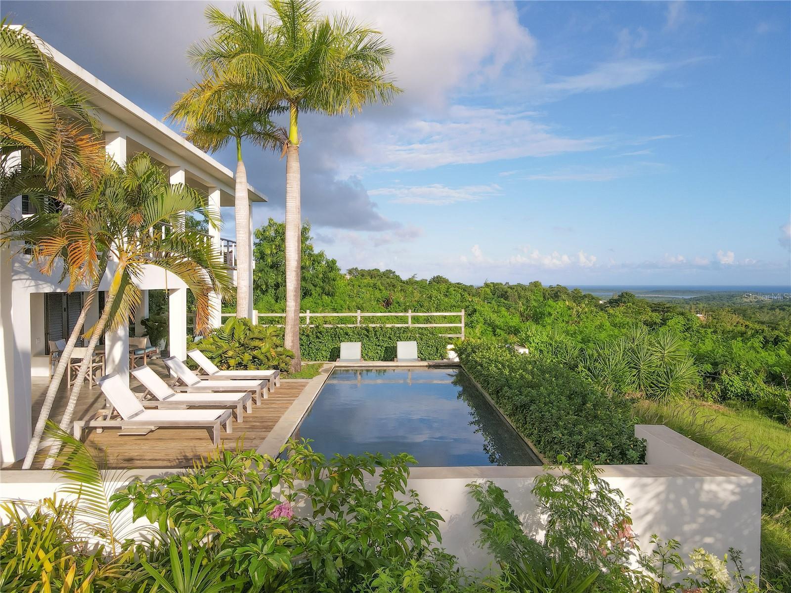 Nestled atop a lush, private hillside in the coveted enclave of El Pilón, Un Poco de Fe is a tropical retreat offering rare seclusion, panoramic Caribbean views, and exceptional income-generating track record . This architectural gem—featured in Coastal Living magazine—is set on nearly three acres of verdant land and is just a short stroll from the acclaimed Finca Victoria Ayurvedic Boutique Hotel & Panchakarma Retreat Center, allowing guests and residents to enjoy wellness and dining amenities in a peaceful, resort-like setting. Most notably, the villa was recognized by Condé Nast Traveler in 2025 as one of Puerto Rico’s Best, featured among the Best Airbnbs in Puerto Rico – a true testament to its design, setting, and guest experience. The property is being sold fully furnished with curated, imported pieces and a trusted maintenance team in place—ready to continue as a refined private residence, multi-generational retreat, or boutique income property. A serene tree-lined drive leads to the villa, gracefully positioned at the highest point of the estate. Designed by renowned interior designer Ray Booth, the residence masterfully fuses modern minimalism with Caribbean warmth. Expansive wrap-around terraces, mahogany-framed floor-to-ceiling French doors, and outdoor living spaces blend seamlessly with nature, inviting in ocean breezes, sunlight, and sweeping views of the sea, neighboring islands, and the expansive natural beauty of Vieques. The upper level of the 4,000 square foot, two-story villa features open-concept living and dining spaces, a bespoke gourmet kitchen with polished cement counters and handcrafted finishes, and a luxurious primary suite with a private sitting room and spa-style bathroom. Every space is thoughtfully oriented to capture the rhythm of the day, from sunrises over the sea to sunsets over the hills. The lower level includes two additional private bedroom suites, a second full kitchen, an elegant home office, and poolside terraces—ideal for hosting, extended stays, or functioning as a private villa apartment. Each suite offers spa-inspired bathrooms with outdoor showers and direct access to lush tropical gardens and the Diamondbrite gunite pool, reflecting the sky in ever-changing hues. Surrounded by an established botanical sanctuary of mature palms, flowering bougainvillea, and exotic tropical flora across 3 acres , the grounds exude peace and natural beauty. Top amenities include: a resort-style pool, refined high-design interiors, mesmerizing panoramic views, a serene natural breeze, and expansive green spaces ideal for picnics, entertaining, or simply reconnecting with nature. The home is fully fenced, partially solar-powered, and equipped with dual entrances, two kitchens, and solar mechanical systems for energy resilience. Currently operating as a successful luxury vacation rental with a 20-year track record of income, Un Poco de Fe offers a turnkey investment opportunity. With a 4.96 Airbnb rating, it is a consistent guest favorite, celebrated for its thoughtful design, comfort, and serene ambiance. This accommodation is a guest favorite based on ratings, reviews, and its proven reliability. A rare offering combining architecture, nature, wellness, and investment potential— Un Poco de Fe is a Caribbean dream reimagined. Contact agent to learn more important details. Corcoran PR