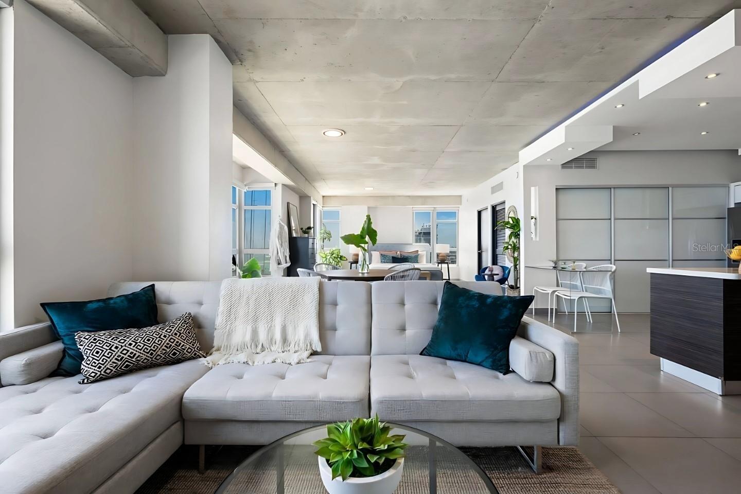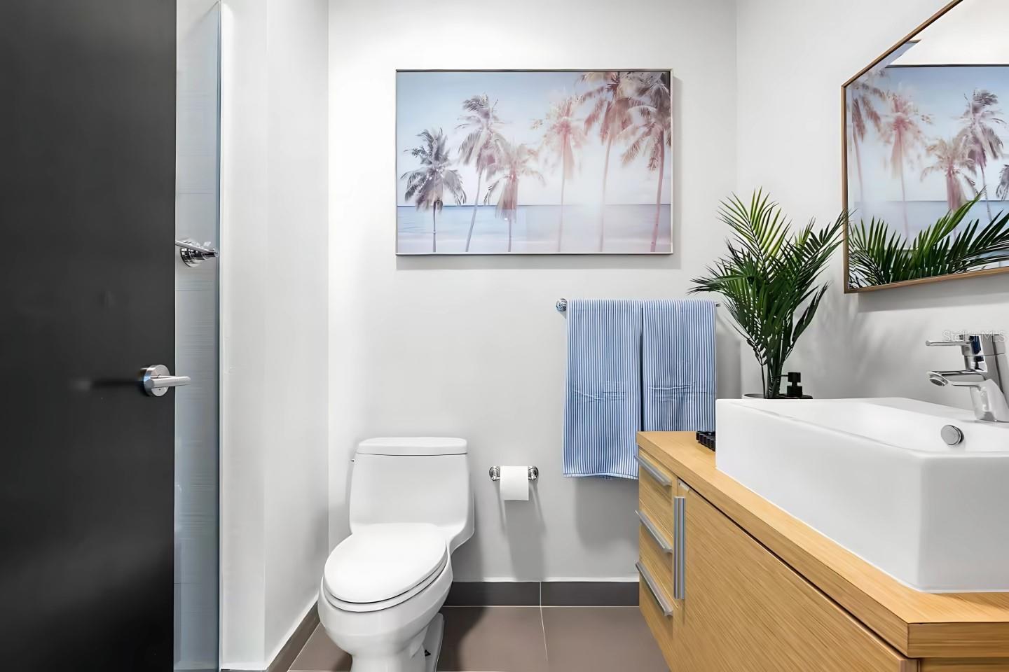 Discover unparalleled luxury and investment potential in this stunning high ceilings loft open floor plan consisting of living room, dining room, one bedroom convertible to 2 bedrooms, laundry and walking closet with two full bathrooms. Ceramic tile flooring, and expansive windows. Fully equipped with modern appliances, including oven, cooktop, dishwasher, refrigerator, washer, and dryer. Built in 2010, this fully equipped and furnished 995-square-foot residence combines modern elegance with breathtaking views of the city skyline, lush parks, and the Atlantic Ocean. Perfectly suited for short-term rentals, this property generates an impressive $2,000 monthly net income through Airbnb, making it an ideal choice for savvy investors or those seeking a chic urban retreat. (The current Property Manager is excellent and would be happy to continue if the new Owner wishes.) Annual Insurance fee $3,783.32. Move-in ready or rental-ready, complete with stylish furnishings and window treatments. Enjoy gated community living with 24-hour guard service, closed-circuit cameras, fire alarms, security systems, and a community mailbox. Two dedicated parking spaces in the attached garage for added convenience.