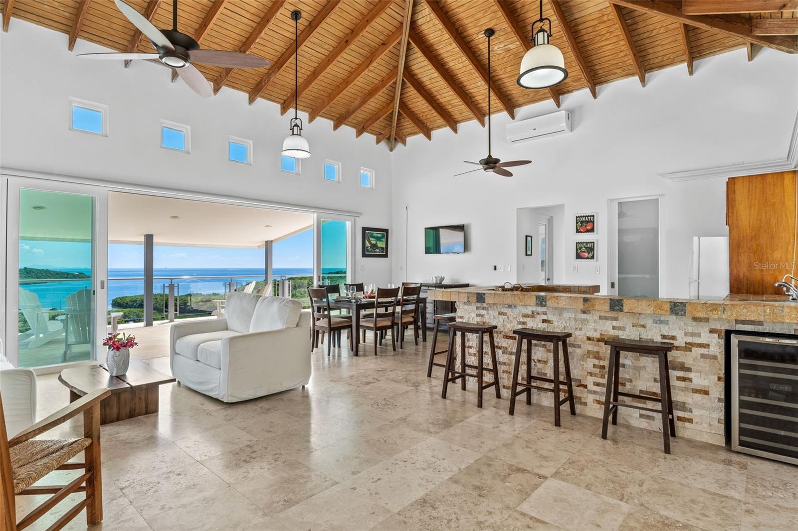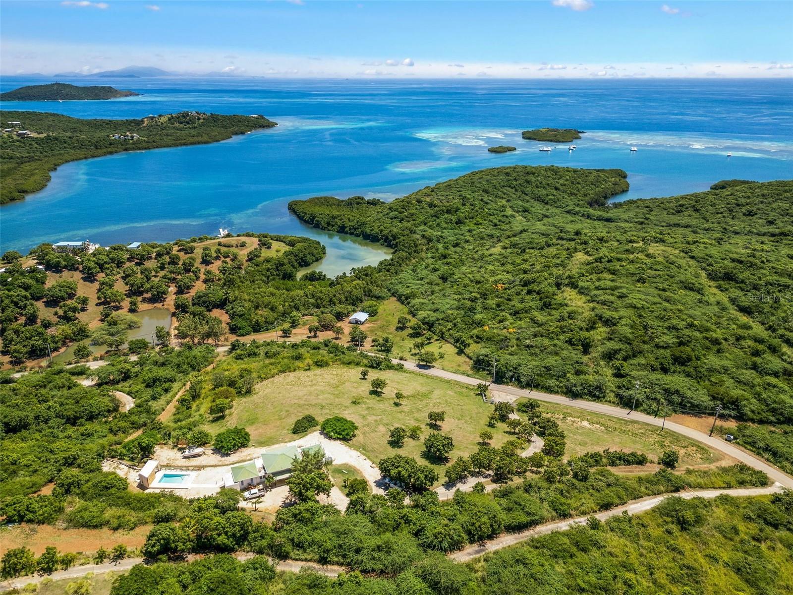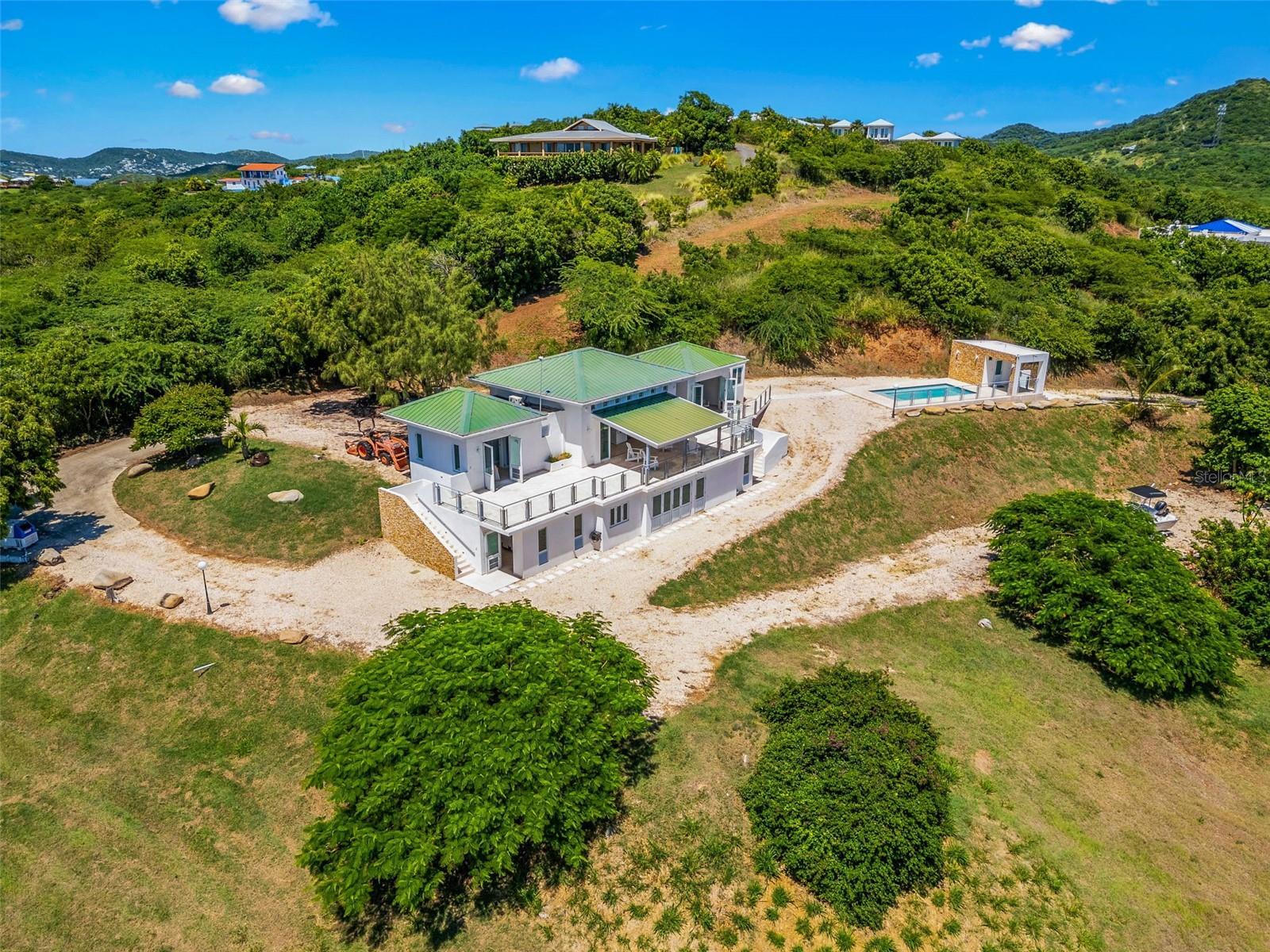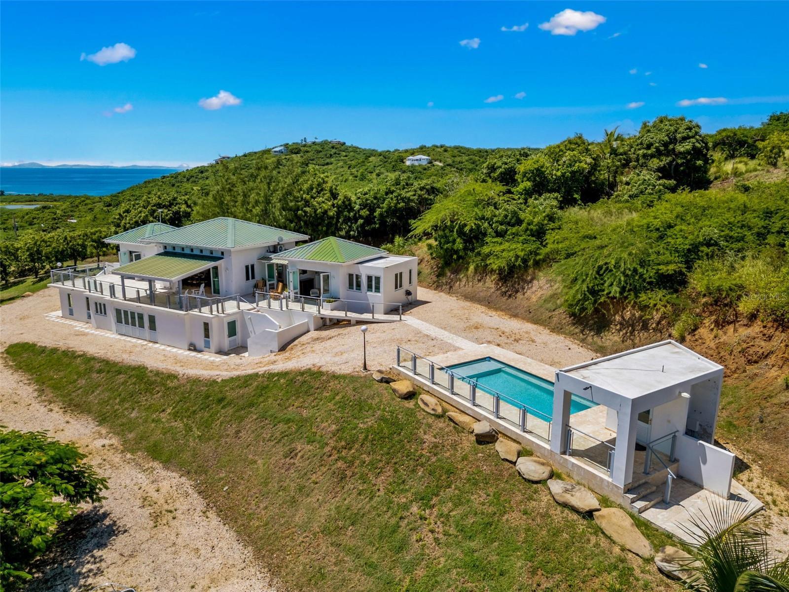 Culebra lot 21 Las Pelas Unique and spectacular property located in one of the highest points on the east coast of the island of Culebra. Enjoy stunning ocean and mountain views from sunrise to sunset. This 4 bed 5 bath property sits on a beautiful 5 acre lot with a 3000 square foot build. Unobstructed panoramic views, large windows and high ceilings define a lifestyle of relaxed elegance. On the main level there are two en-suite bedrooms, family room, kitchen and side by side balcony. The lower level has two bedrooms, 2 bathrooms, garage and storage room. Salt water pool with water heater, full generator, 600 gallon water cistern and AAA water service.