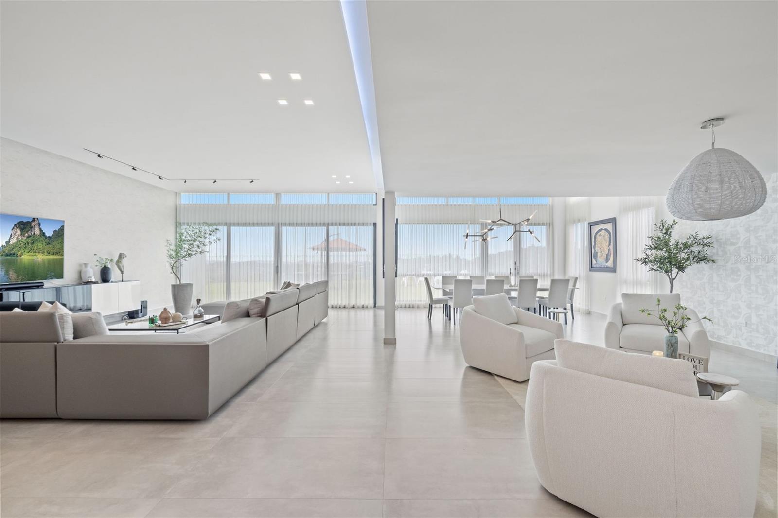 - Eat-in Kitchen, High Ceilings, Kitchen/Family Room Combo, Living Room/Dining Room Combo, Open Floorplan, Stone Counters, Window Treatments