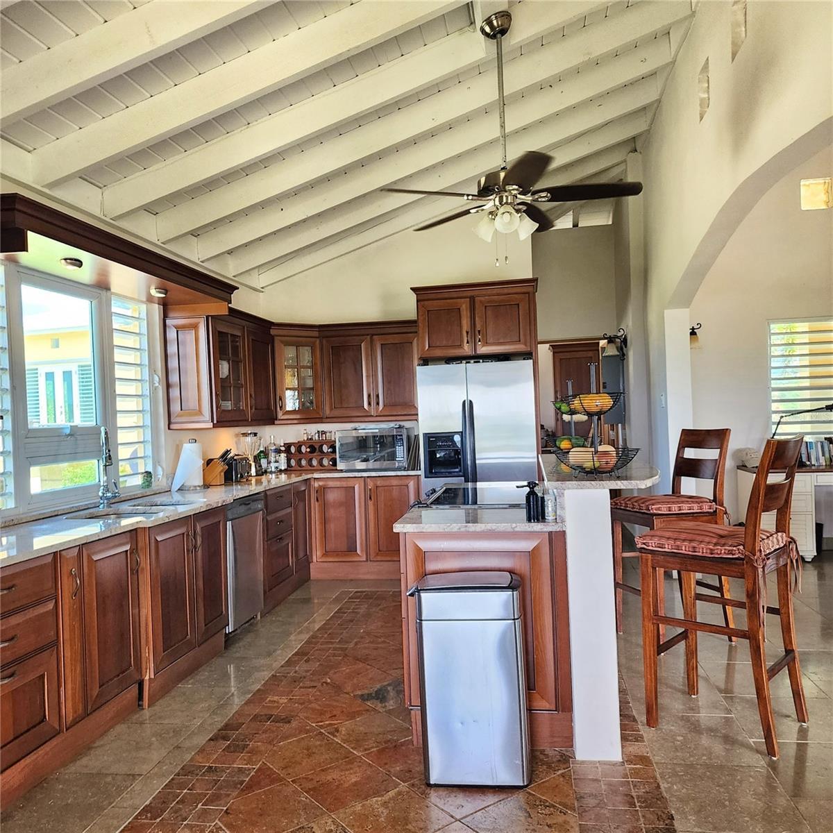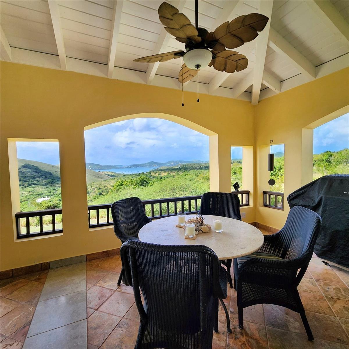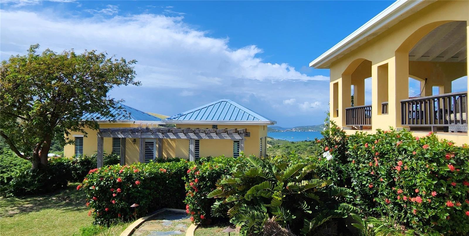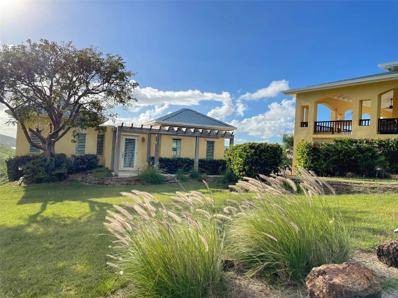 This extraordinary 5 acre property celebrate coastal living with its three-building layout, showcasing the timeless elegance of Caribbean architecture with its soaring high ceilings and distinctive 4-pitch roofs. The generous main structure anchors the compound with its thoughtful two-level design. The upper level flows effortlessly from the kitchen through an elegant light-filled living room, where glass doors surround the structure, perfectly framing the island's vibrant tropical colors while inviting refreshing cross breezes to flow naturally throughout the home. On the lower level, two bedrooms Jack-and-Jill style, provide comfortable accommodations with shared convenience and privacy. The magnificent main porch offers ample space for large gatherings and dining alfresco, while intimate bedroom porches create perfect settings for romantic sunsets and quiet contemplation. The dedicated master suite structure provides ultimate privacy, where you can wake up to ocean views right from your bed. The third structure houses two additional bedrooms, each opening onto private porches that offers intimate spaces for morning coffee or evening relaxation so your visitors will enjoy the perfect balance of comfort and privacy.