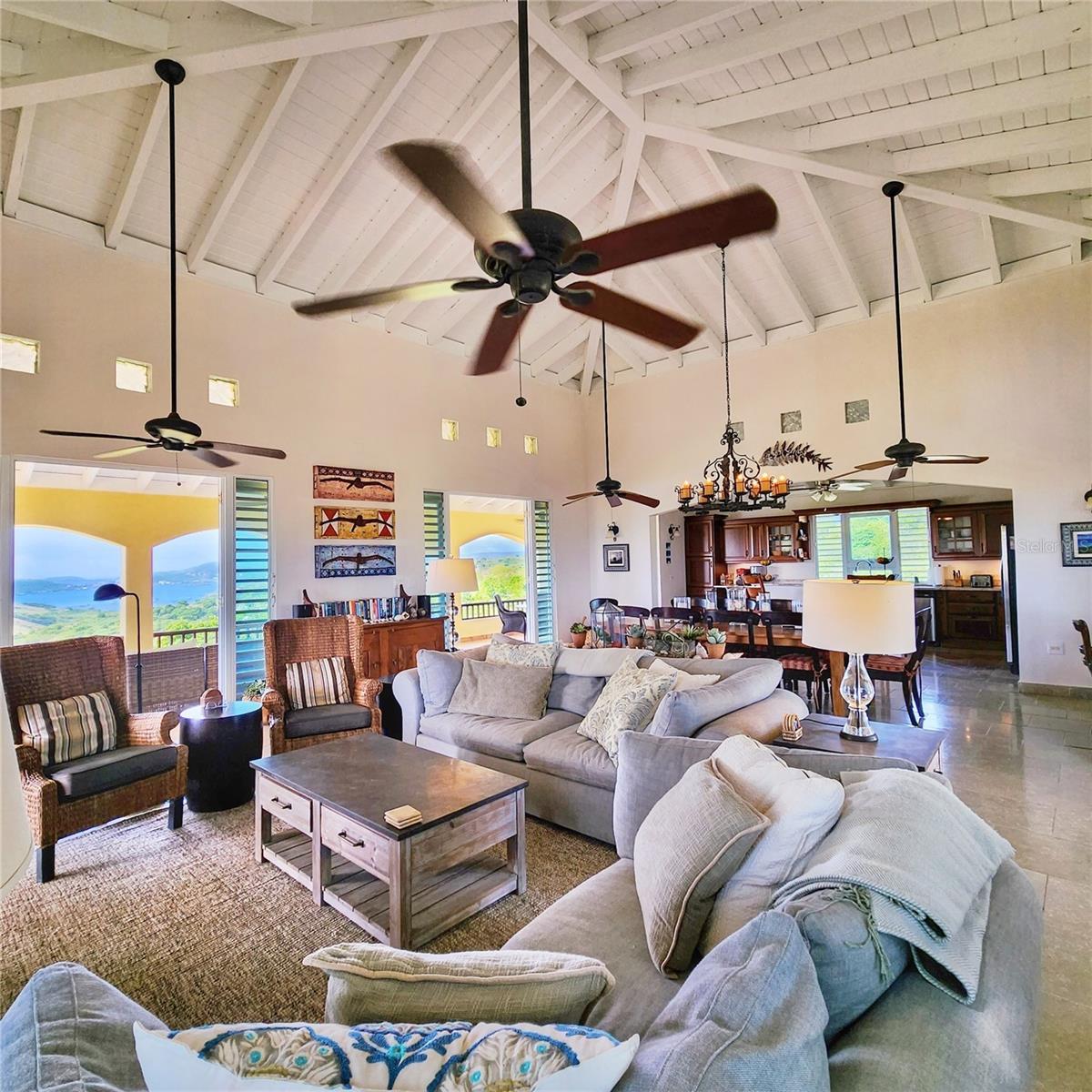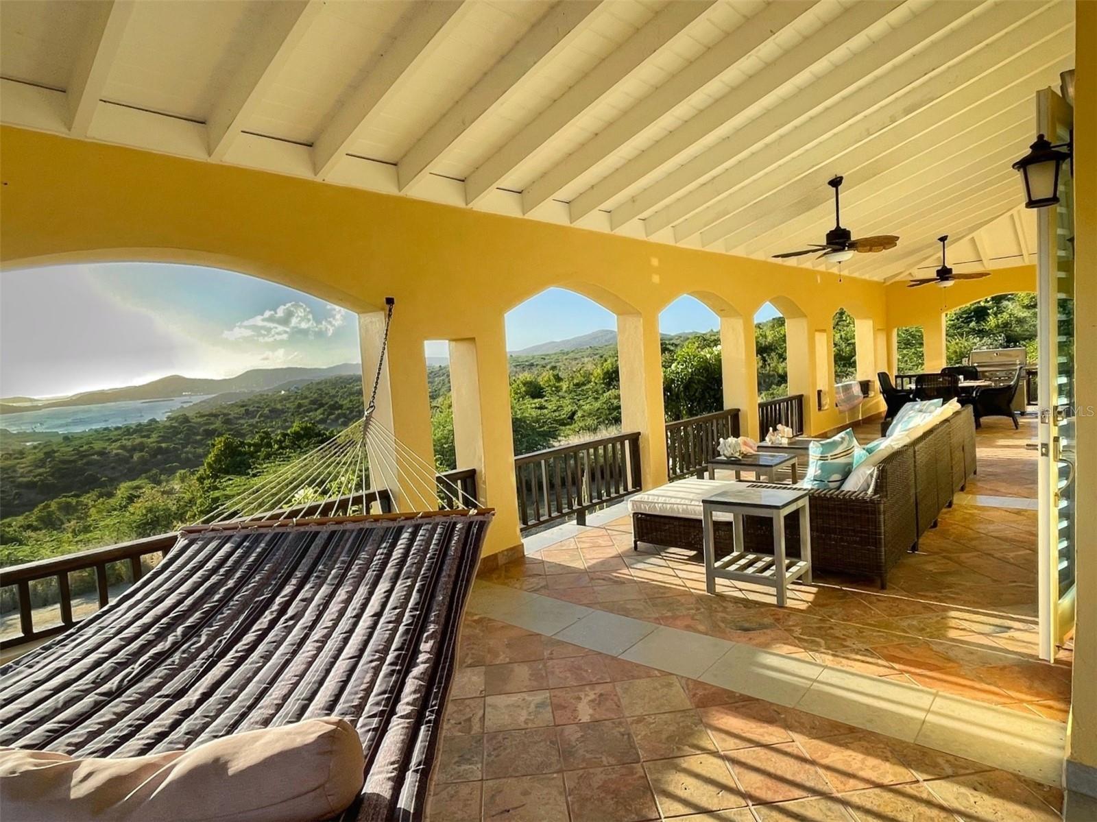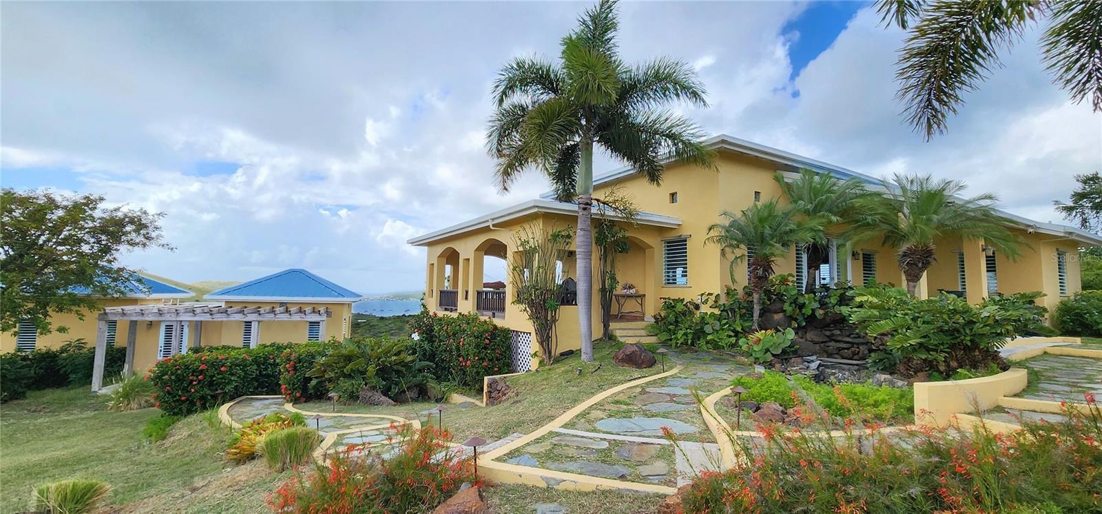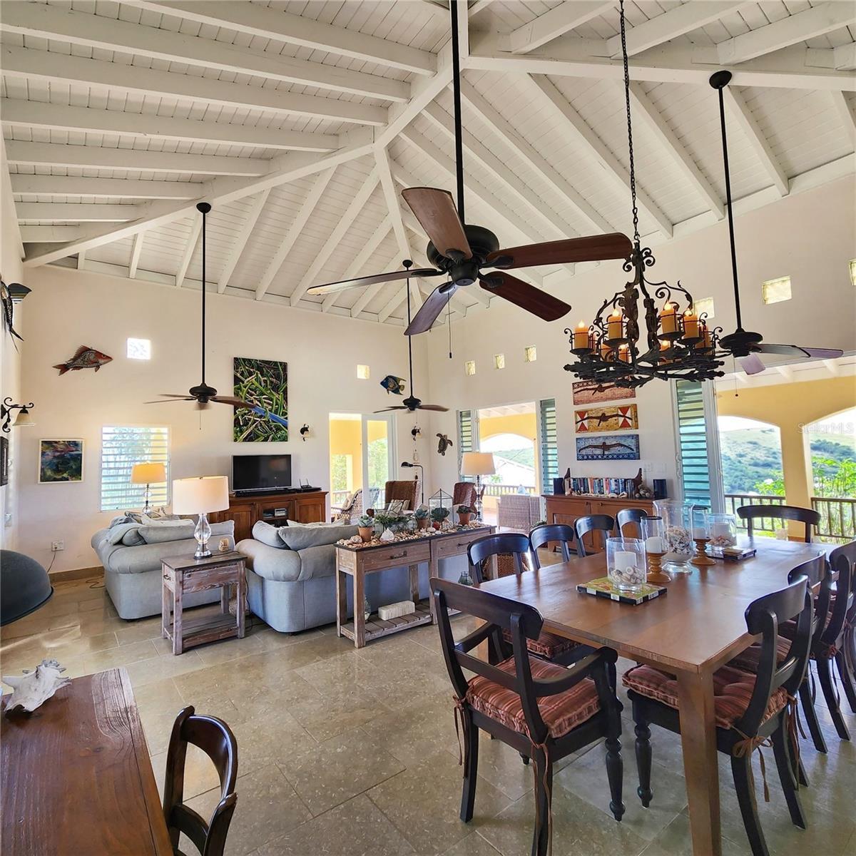 This extraordinary 5 acre property celebrate coastal living with its three-building layout, showcasing the timeless elegance of Caribbean architecture with its soaring high ceilings and distinctive 4-pitch roofs. The generous main structure anchors the compound with its thoughtful two-level design. The upper level flows effortlessly from the kitchen through an elegant light-filled living room, where glass doors surround the structure, perfectly framing the island's vibrant tropical colors while inviting refreshing cross breezes to flow naturally throughout the home. On the lower level, two bedrooms Jack-and-Jill style, provide comfortable accommodations with shared convenience and privacy. The magnificent main porch offers ample space for large gatherings and dining alfresco, while intimate bedroom porches create perfect settings for romantic sunsets and quiet contemplation. The dedicated master suite structure provides ultimate privacy, where you can wake up to ocean views right from your bed. The third structure houses two additional bedrooms, each opening onto private porches that offers intimate spaces for morning coffee or evening relaxation so your visitors will enjoy the perfect balance of comfort and privacy.