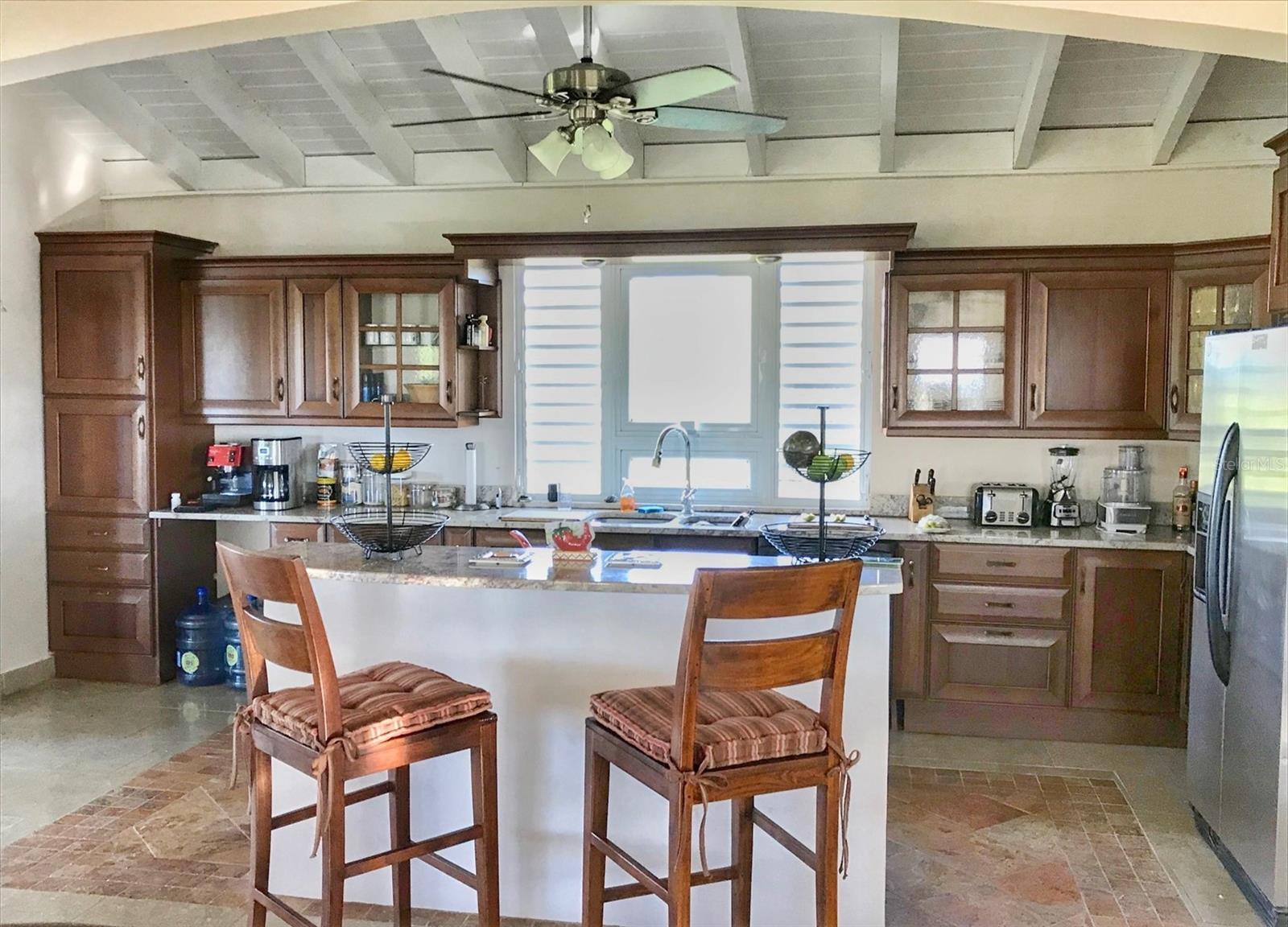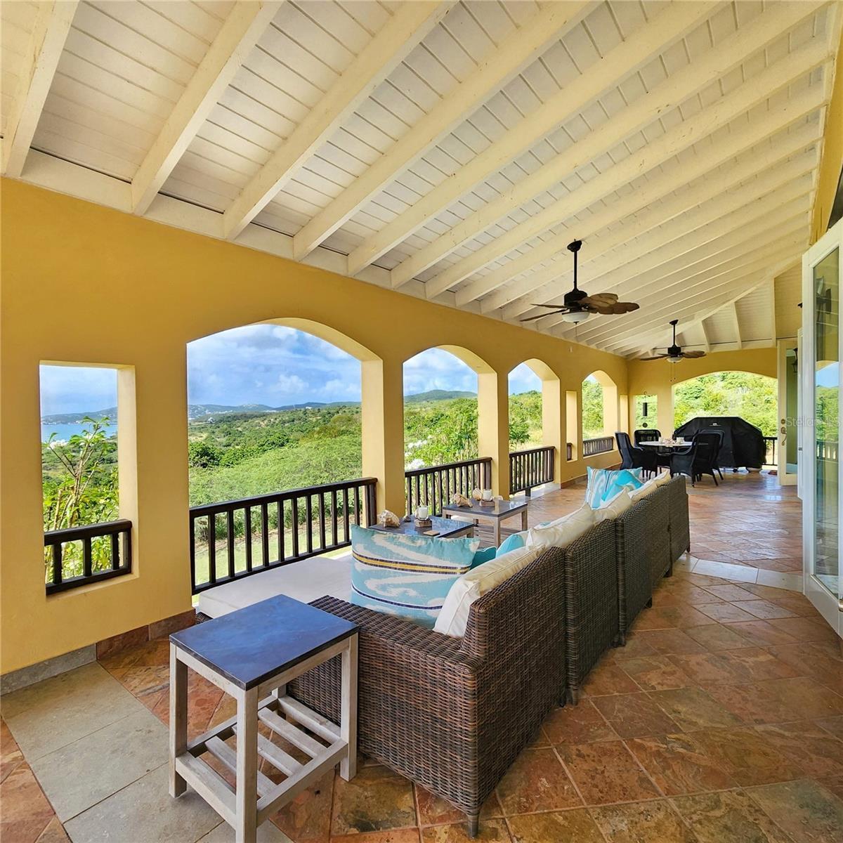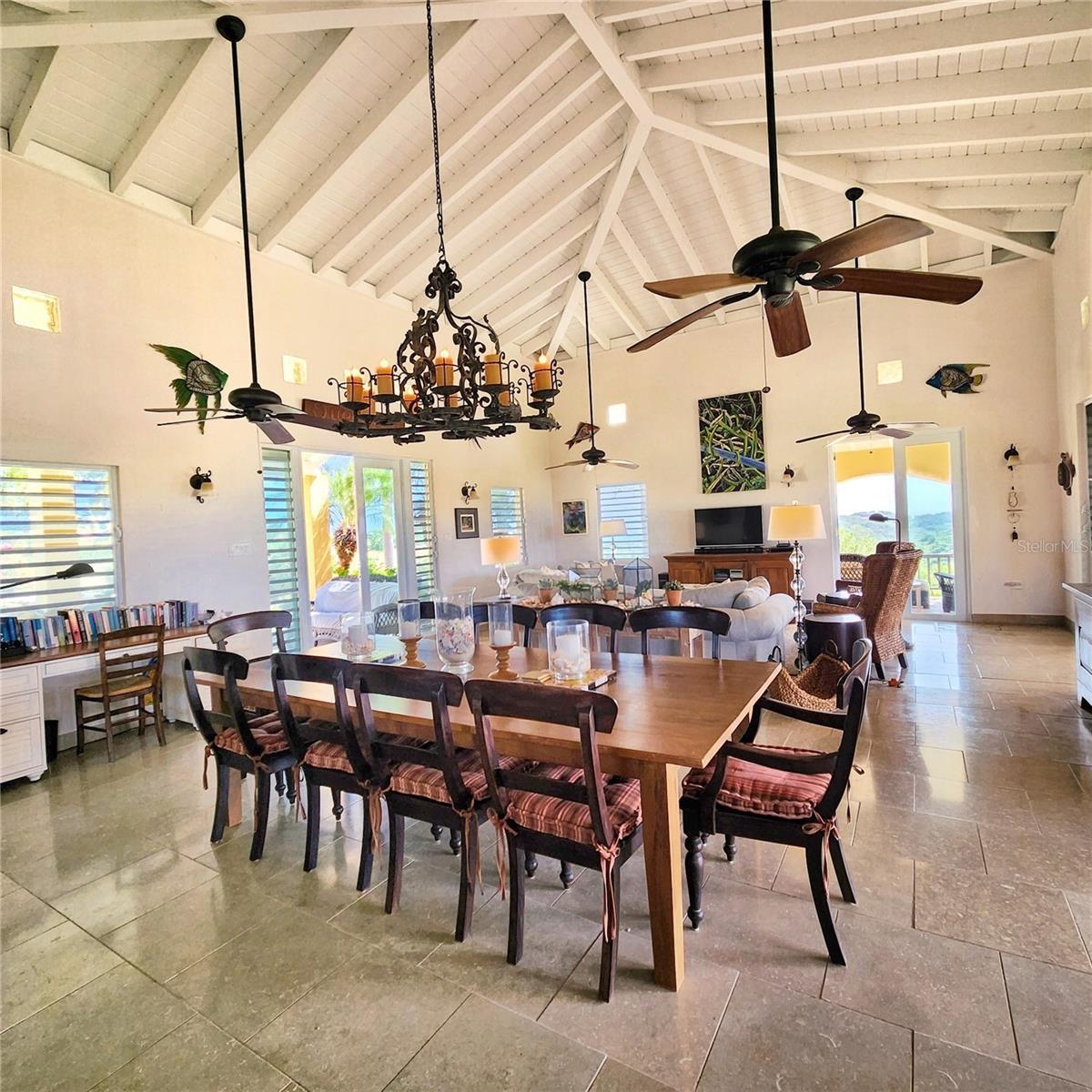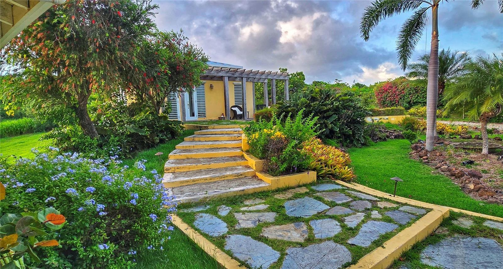 This extraordinary 5 acre property celebrate coastal living with its three-building layout, showcasing the timeless elegance of Caribbean architecture with its soaring high ceilings and distinctive 4-pitch roofs. The generous main structure anchors the compound with its thoughtful two-level design. The upper level flows effortlessly from the kitchen through an elegant light-filled living room, where glass doors surround the structure, perfectly framing the island's vibrant tropical colors while inviting refreshing cross breezes to flow naturally throughout the home. On the lower level, two bedrooms Jack-and-Jill style, provide comfortable accommodations with shared convenience and privacy. The magnificent main porch offers ample space for large gatherings and dining alfresco, while intimate bedroom porches create perfect settings for romantic sunsets and quiet contemplation. The dedicated master suite structure provides ultimate privacy, where you can wake up to ocean views right from your bed. The third structure houses two additional bedrooms, each opening onto private porches that offers intimate spaces for morning coffee or evening relaxation so your visitors will enjoy the perfect balance of comfort and privacy.