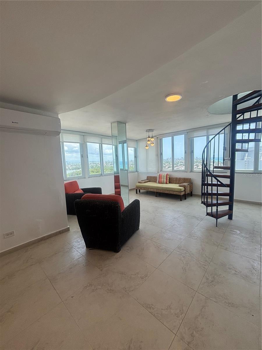 Amazing penthouse with lagoon and ocean views. The apartment has 2 bedrooms, one of which can be used as an office, and 2 bathrooms. An interior spiral staircase leads to the terrace for enjoying the panoramic views. Appliances included: refrigerator, stove, microwave, dishwasher, washer, dryer, and air conditioning. Unfurnished. Covered parking. Great amenities swimming pool, mailboxes, laundry room, bbq area, and private direct beach access. The building has a partial generator and water cistern for common areas. Close to supermarkets, pharmacies, restaurants, schools, and nightlife, it is just 10 minutes from San Juan International Airport and Old San Juan. The tenant is responsible for electricity. Short-term rentals are not allowed.