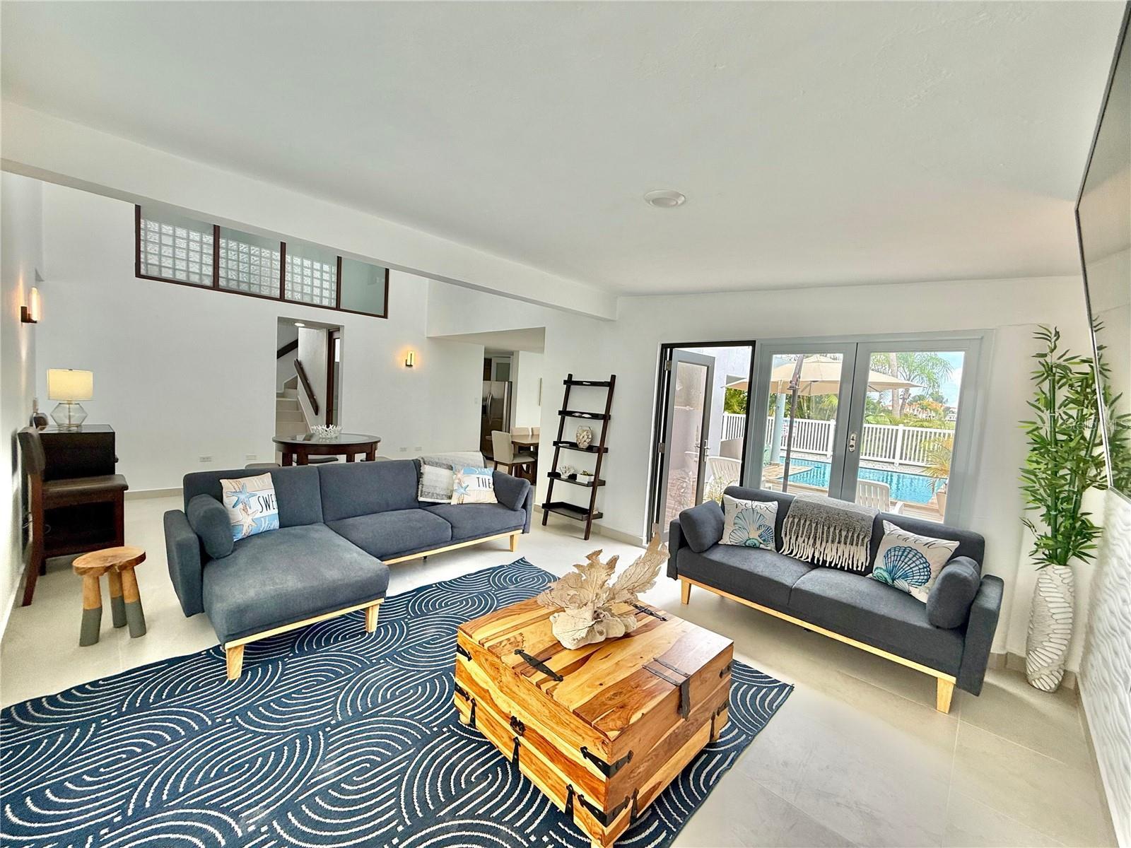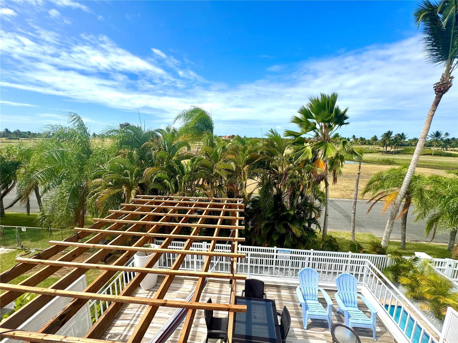 Welcome to a truly exceptional coastal retreat, nestled within the prestigious Hyatt Regency Grand Reserve Resort and Golf, just steps from the pristine shores of Coco Beach. Located on a picturesque peninsula extending into the Atlantic Ocean, this home offers unparalleled living within over 1,000 acres of lush tropical grounds, at the foothills of the iconic El Yunque National Rainforest. This charming residence spans approximately 3,000 sq.ft. and boasts 4 spacious bedrooms and 3 full bathrooms. A standout feature of this home is the brand new 30ft x 9ft pool, elegantly wrapping around the terraces and seamlessly blending with the tropical surroundings. The heart of the home is the outdoor space it provides to fully enjoy outdoor living in its spectacular tropical surroundings, an ideal setting for both intimate gatherings and entertaining on a grand scale. The inviting terraces, facing east to capture the refreshing ocean breeze—a perfect spot to relax with family or host guests. With one bedroom and full bath, kitchen, living/dining room conveniently located on the lower level, all with access to terraces and garden, this home ensures comfort, privacy and entertainment. Upstairs, along with a spacious master bedroom are two additional bedrooms with access to a large open terrace where you can relax and take in panoramic vistas of the pristine coastline and championship golf course, home to the PR Open PGA tournament. As part of a secure, gated community, residents enjoy exceptional amenities including 24/7 security, two pools, tennis and basketball courts, a clubhouse, and a children’s playground. A short drive from the property brings you to San Juan, the Canovanas Outlets, El Yunque National Rainforest, major marinas, fine dining, casinos, and a wealth of tourist attractions. This rare find provides a great opportunity to work from home while enjoying a resort-style living and serene mountain and ocean ambiance. Rented fully furnished. Please contact us today to schedule a private showing and experience this unique coastal living opportunity.