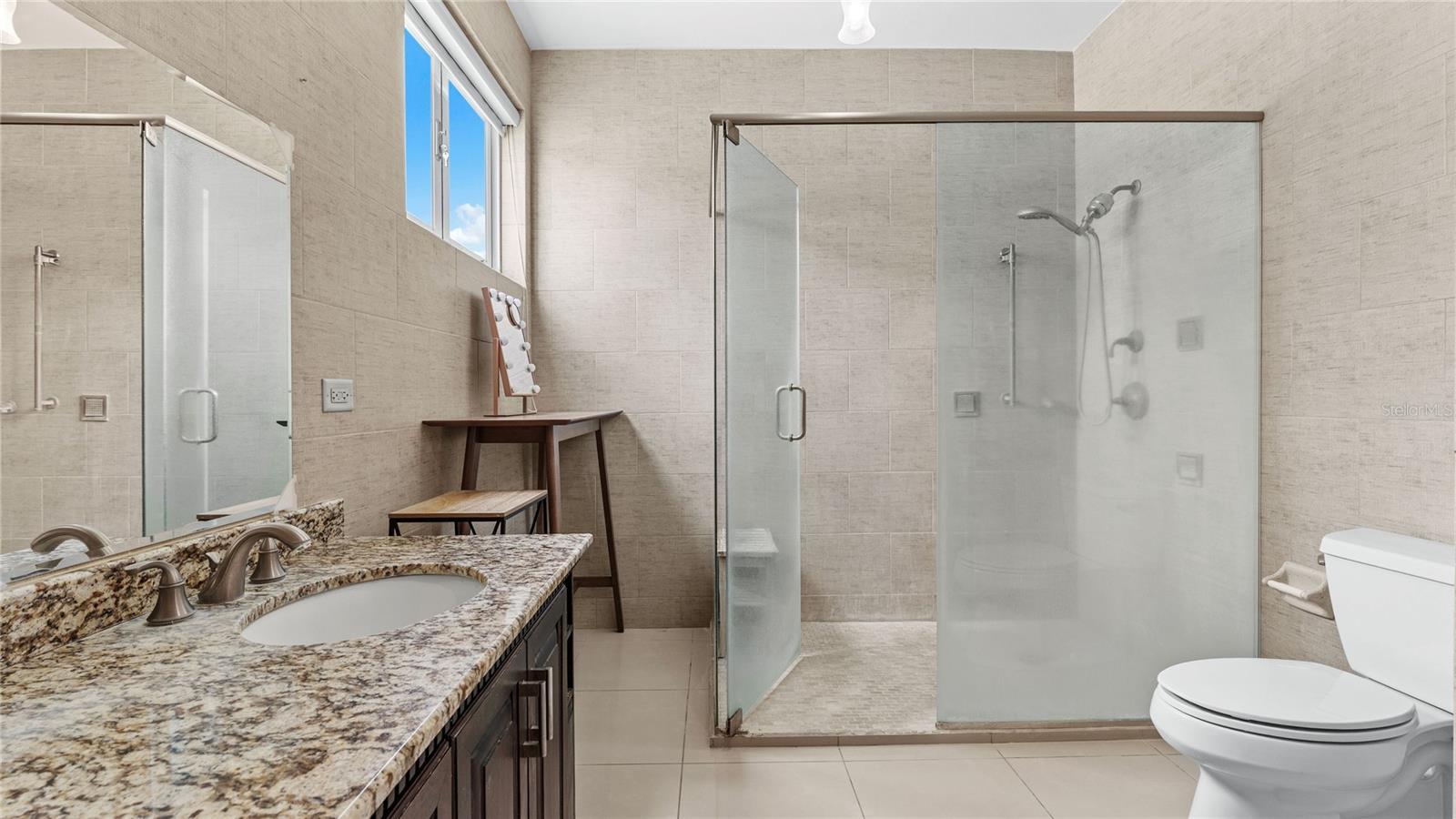 - Primary Bedroom Main Floor, Solid Wood Cabinets, Stone Counters, Walk-In Closet(s)