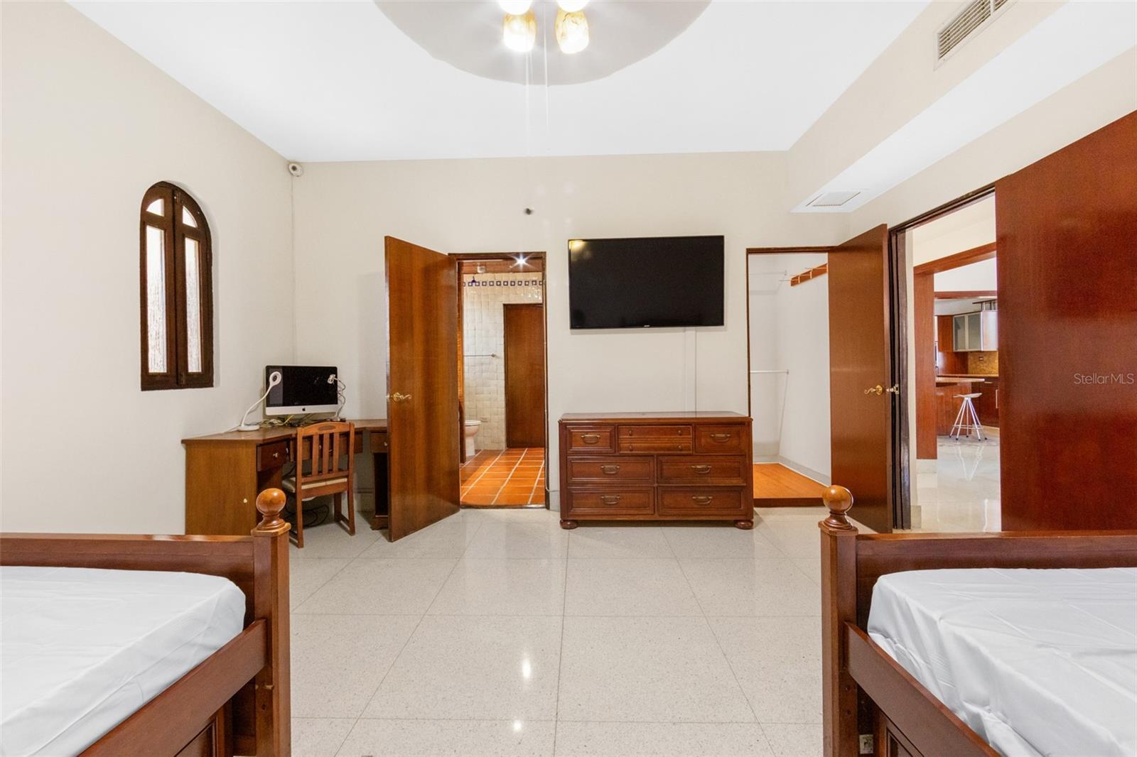 Located on one of the most charming and quiet residential streets in historic Miramar, this fully remodeled Spanish Colonial home offers timeless elegance with modern comfort. Sitting on a corner lot, the two-level residence spans approximately 4,500 square feet and features six bedrooms and four and a half bathrooms. Thoughtful renovations include a redesigned kitchen with high-end appliances and custom wood cabinetry, updated bathrooms, new floors, windows, and roof. Original architectural elements such as arched wrought-iron doors and terracotta tile details have been carefully preserved to honor the home’s heritage. Ideal for entertaining, the property boasts a large covered terrace with a built-in bar and lounge area, plus a beautifully tiled plunge pool with tropical landscaping. Additional features include a full-power generator, water cistern, inverter A/C units (5-ton), and a four-car covered garage. Just steps away from Condado and top restaurants, this is a rare opportunity to own a classic yet turnkey home in one of San Juan’s most coveted neighborhoods.