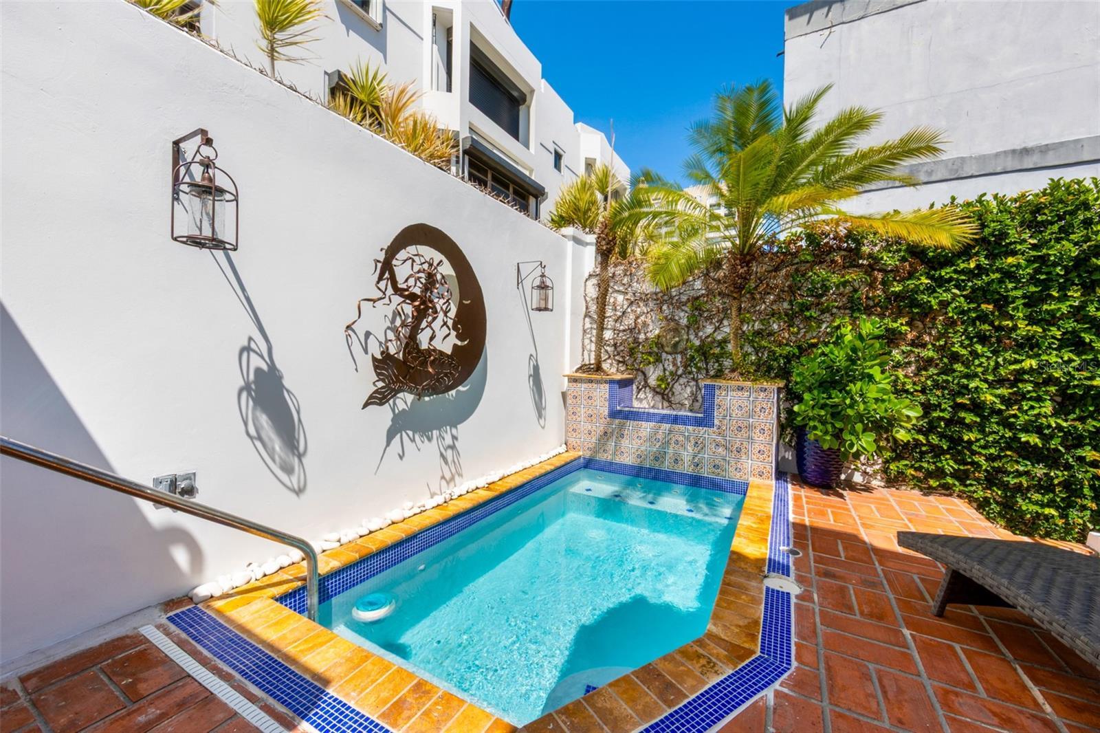 Available fully furnished and completely equipped, this elegant Spanish Colonial home is located on one of Miramar’s most exclusive and residential streets. The home sits on a corner lot within the historic zone and offers approximately 4,500 square feet of living space across two levels, with six bedrooms and four and a half bathrooms. Recently remodeled, the home blends original charm arched iron doors, terracotta details, and timeless architecture with modern upgrades like a designer kitchen, inverter A/C systems (5-ton capacity), and updated bathrooms. The outdoor space includes a covered terrace with a custom bar, lounge area, and a private plunge pool surrounded by lush greenery and decorative tilework. Rent includes weekly cleaning service and full maintenance of the pool, garden, generator, cistern, and A/C systems. The home also features a full-power generator, water cistern, and covered garage for four vehicles. Pets are allowed. This is a rare opportunity to enjoy a turn-key living experience in the heart of historic Miramar, just minutes from Condado and the best of San Juan.