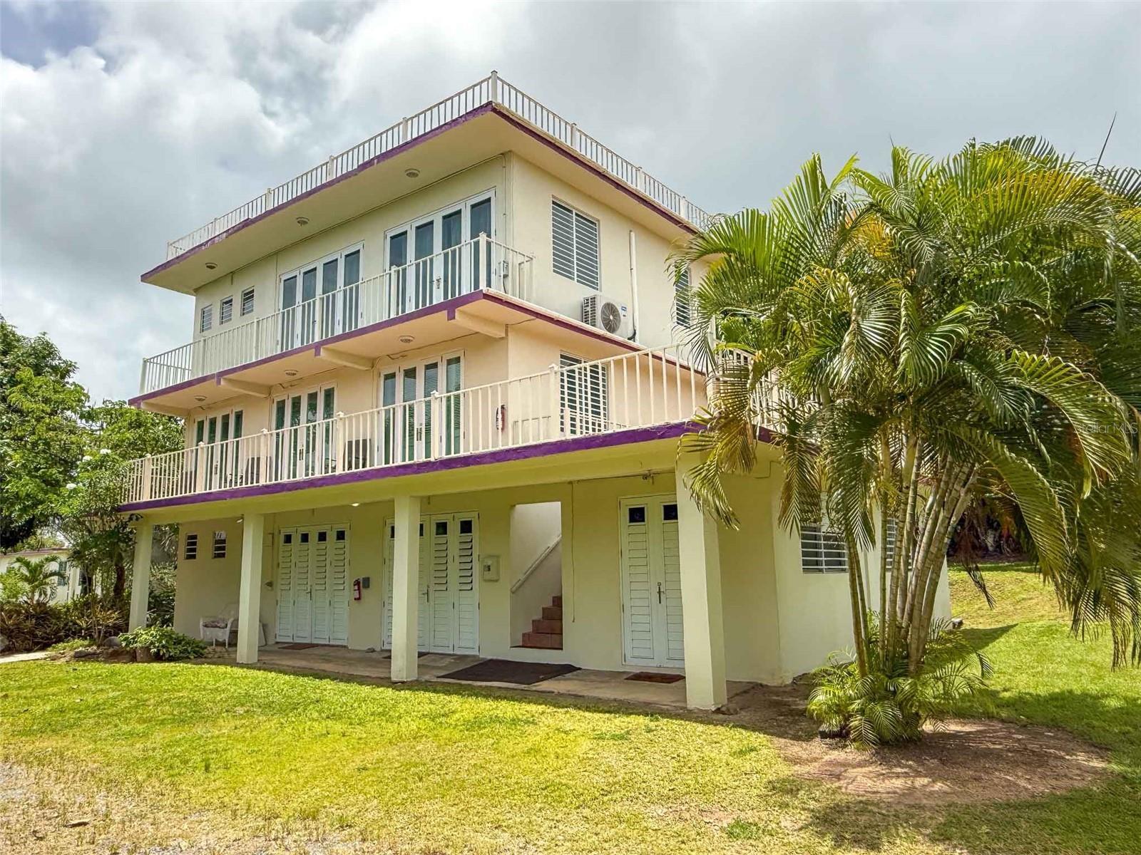 Discover a rare investment opportunity on Vieques Island with the Enchanted Garden Inn, an income-generating, multi-unit property set amidst lush tropical landscaping in the desirable Martineau neighborhood. Just minutes from the island’s top attractions, including the Bioluminescent Bay, world-class beaches, and historic Spanish Fort. This versatile estate has a strong rental history and offers both short-term and long-term income potential. The property includes three distinct buildings totaling 15 bedrooms and is ideal for those seeking a profitable guesthouse, a multi-unit rental, or a personal retreat with business upside. BUILDING 1 – THE CASITA This single-level residence is currently used as the owner’s private quarters. It features a king bedroom, sunken living room, full kitchen with stainless appliances, modern bath, walk-in closet with washer/dryer, private office, and stylish finishes throughout. With 10-ft ceilings and A/C, it’s both elegant and comfortable. BUILDING 2 – STUDIOS & PENTHOUSE This 3-story structure includes 7 fully equipped studios (each with kitchenette, full bath, A/C) and a top-floor penthouse. The penthouse spans the entire level with 10-ft ceilings, ocean views, a king suite, spa-style bathroom, full kitchen, dining room, and private balcony. BUILDING 3 – TWO-STORY HOUSE The first level features 2 bedrooms, 1 bath, and an open kitchen/living space. The upper level offers 4 bedrooms, 2 baths, a full kitchen, and ample entertaining space. Both units have access to rooftop decks with panoramic views. Use as a large home or two separate rentals. The Grounds A true Caribbean oasis, the gardens are alive with mango, papaya, banana, guava, dragon fruit, and blooming tropical flora. Meandering paths, a tranquil water feature, and shaded sitting areas create a sensory escape for guests and residents alike. Prime Location Close to Gallito Beach, the W Resort, and the western edge of the Vieques Wildlife Refuge. The airport and ferry are within easy reach, as is the charming town of Isabel Segunda. Investment Ready Vieques continues to see strong tourism and rental demand. Whether your vision is hospitality, long-term rental, or a hybrid, Enchanted Garden offers flexibility, income, and beauty in equal measure. This is one of Vieques’ premier investment properties. Don’t miss the opportunity to own a proven performer in paradise.