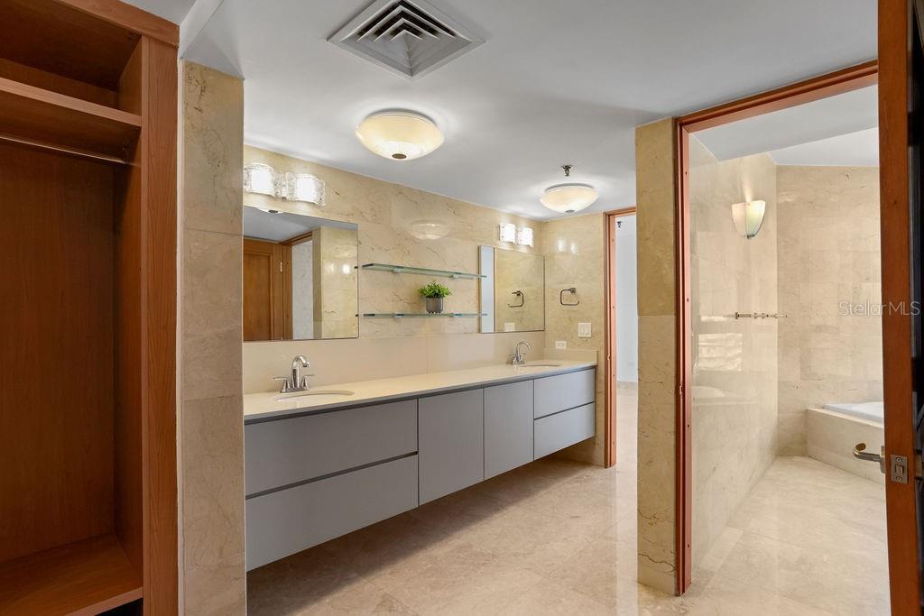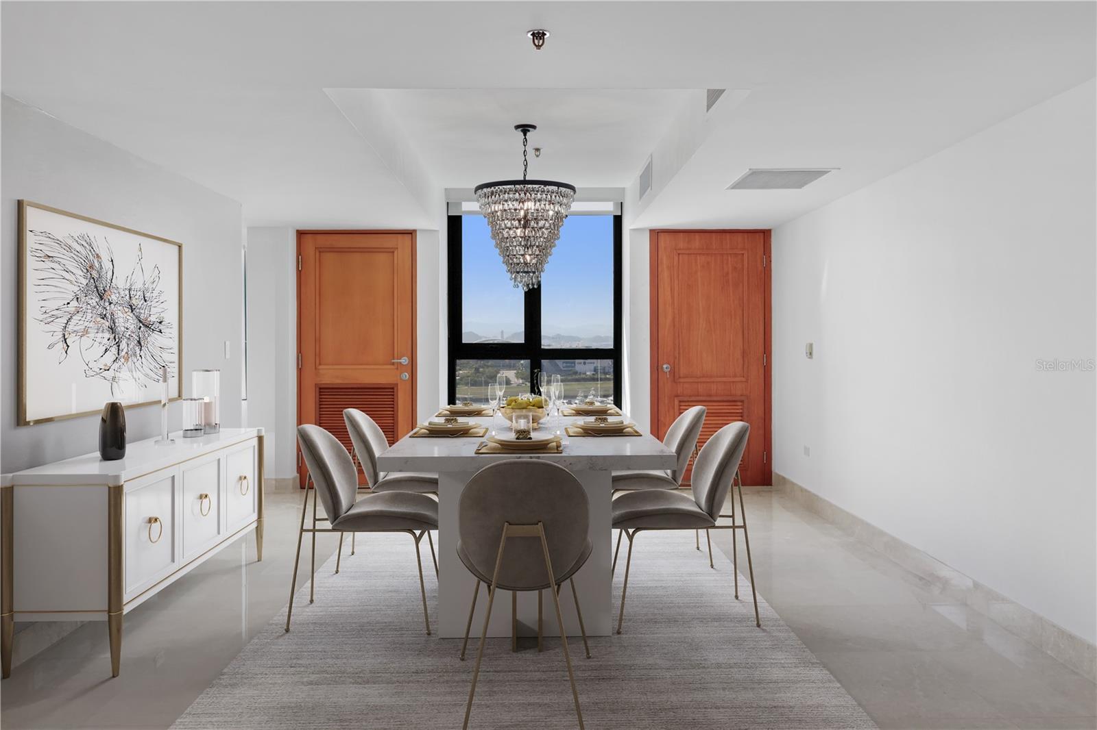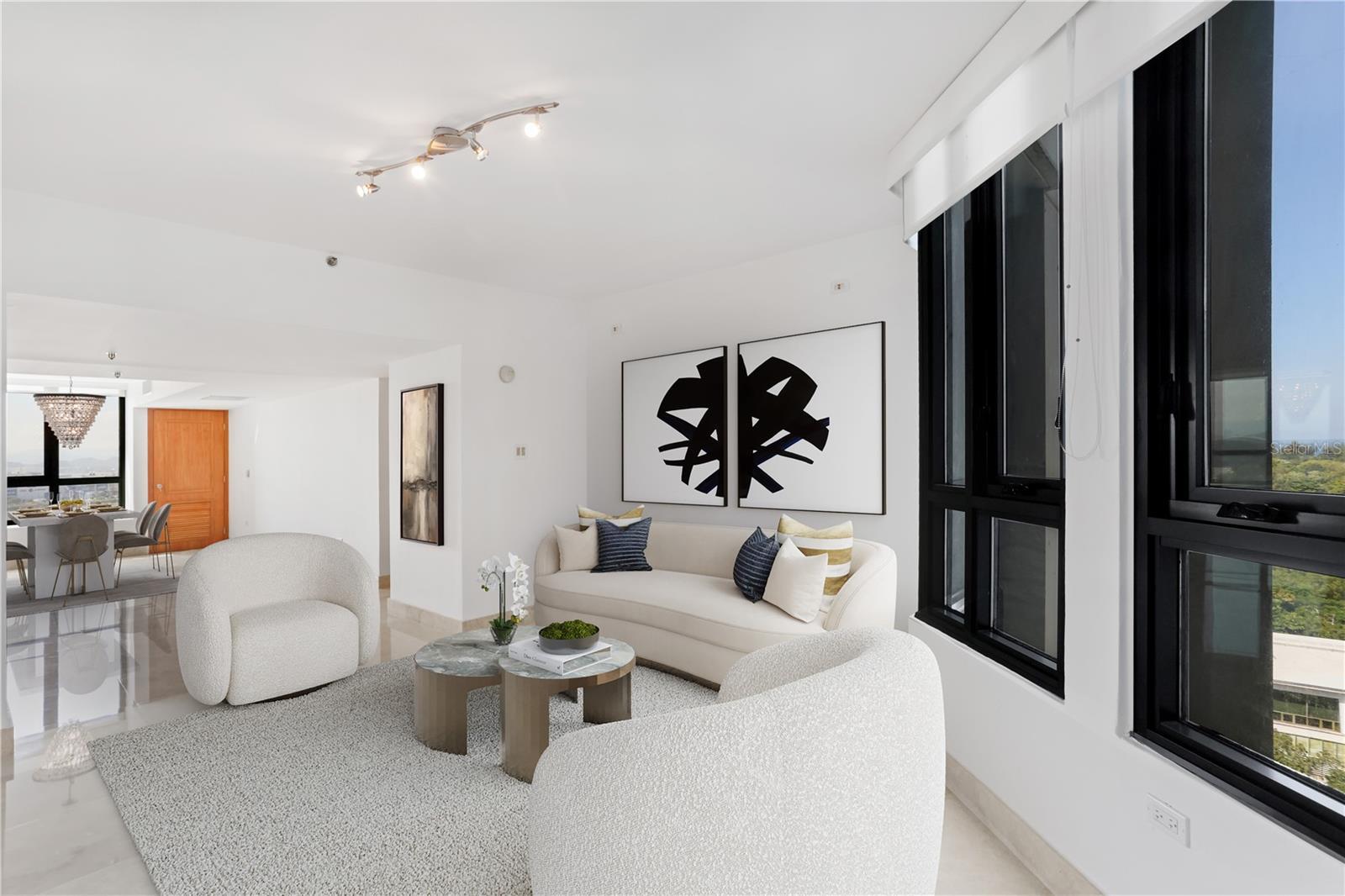 One or more photo(s) has been virtually staged. Discover the pinnacle of luxury living at Caribe Plaza, where elegance meets breathtaking vistas of San Juan Bay Marina, Condado Lagoon, Old San Juan, and the Convention Center. This residence boasts newly renovated marble floors and opens to a private lobby that flows into a spacious great room, seamlessly connecting the dining area, family room, and a gourmet kitchen equipped with top-of-the-line appliances. The primary suite serves as a tranquil retreat with dual closets and an en-suite bathroom. Two additional en-suite bedrooms and a versatile flex room provide ample space, complemented by four full bathrooms and a powder room. Recent enhancements include new vanities, lighting fixtures, and security windows. The property includes three side-by-side parking spaces and a temperature-controlled storage room. Designed for convenience and resilience, the building features a full-power backup generator and a water cistern. Residents enjoy premium amenities such as 24-hour security, concierge and valet services, a fully equipped gym, a heated pool, and an activity room. Perfectly located, Caribe Plaza is steps from Luis Muñoz Rivera Park, the Caribe Hilton Hotel, and Escambrón Beach, with easy access to Condado's top restaurants, shopping, entertainment, and schools. The vibrant Distrito T-Mobile and historic Old San Juan provide endless leisure and exploration opportunities. This property elevates to an unmatched lifestyle in one of San Juan's most sought-after locations. Truly move-in ready and available for sale for the first time!