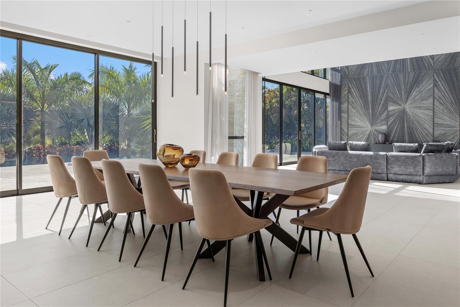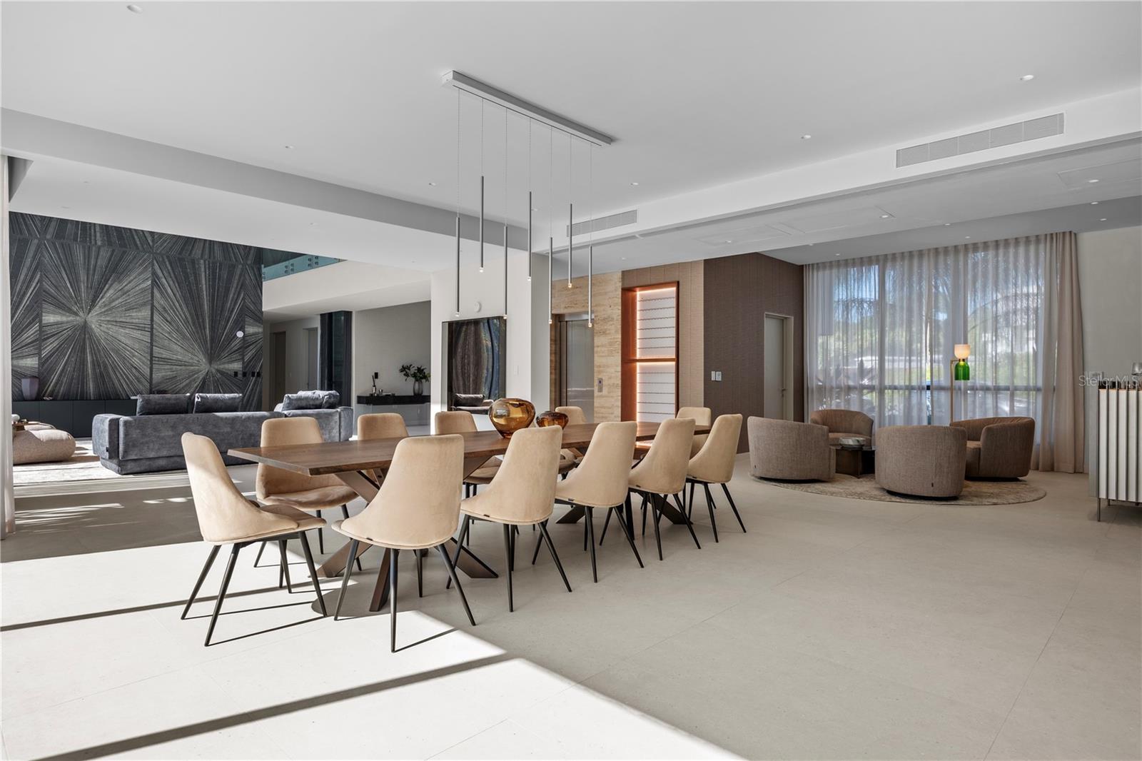 - Ceiling Fans(s), Eat-in Kitchen, Elevator, High Ceilings, Kitchen/Family Room Combo, Living Room/Dining Room Combo, Open Floorplan, Other, PrimaryBedroom Upstairs, Smart Home, Solid Surface Counters, Walk-In Closet(s), Wet Bar, Window Treatments