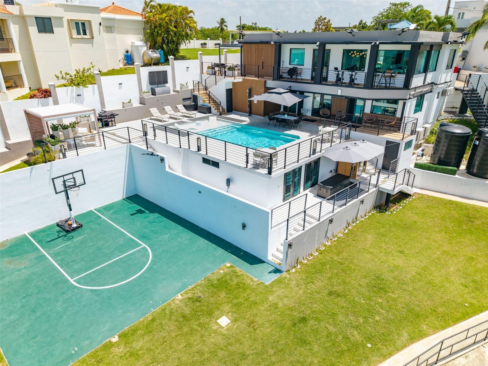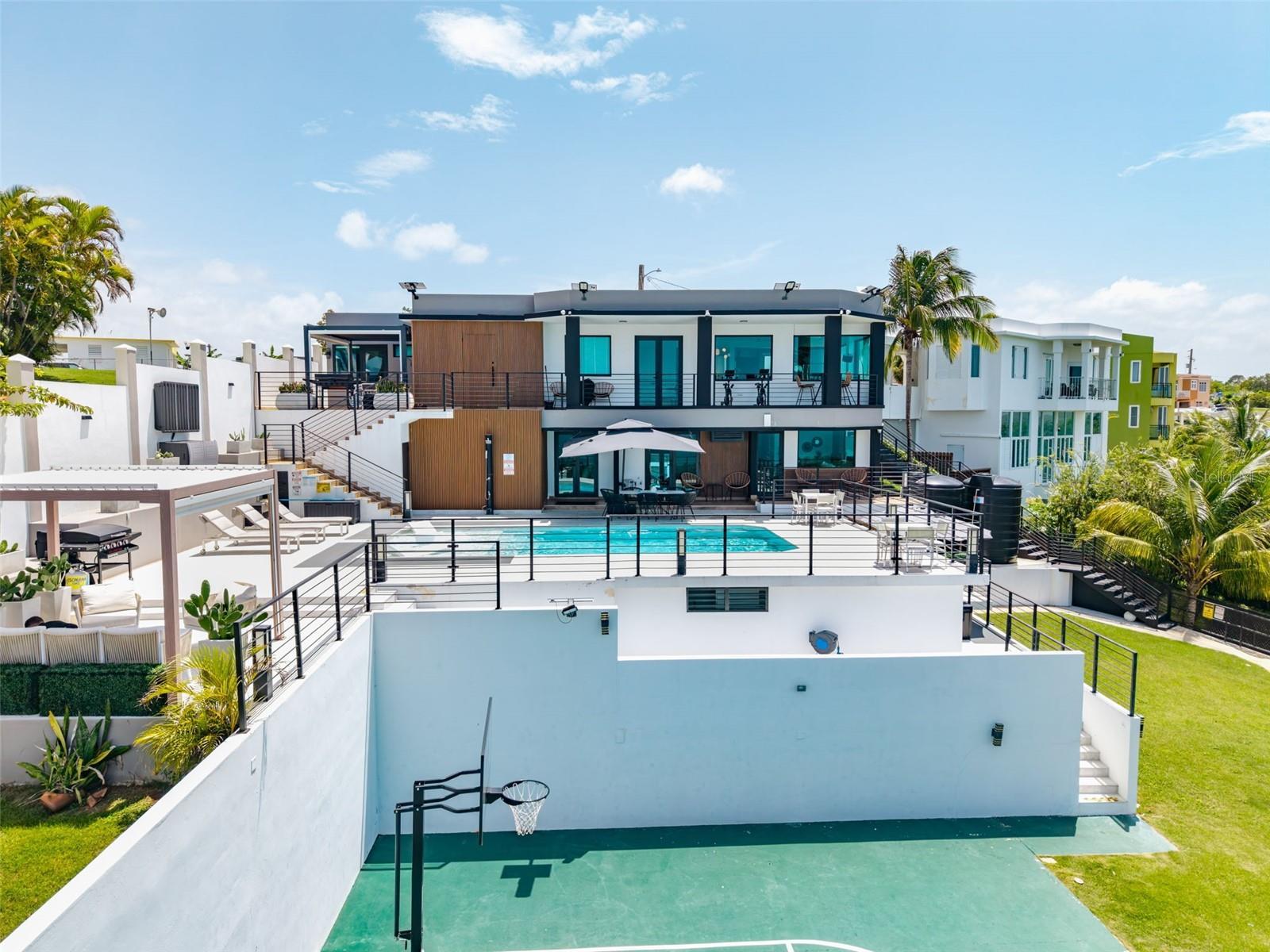 Discover Blue Malibu, one of the most stunning residences on Puerto Rico’s coveted north coast. This 6-bedroom, 6-bathroom estate spans approximately 4,300 square feet of indoor living space, combined with 4,500 square feet of outdoor amenities blending contemporary elegance with the natural beauty of the Atlantic shoreline. The interiors feature expansive windows and an open-concept floor plan that maximizes natural light and panoramic ocean views. Each bedroom is designed as a private suite, with spa-inspired bathrooms and direct access to outdoor living areas. The gourmet kitchen, outfitted with premium appliances and sleek finishes, flows seamlessly into the dining and living spaces, making it ideal for entertaining. Outdoors, multiple terraces, a refreshing swimming pool, sauna, cold plunge, half basketball court, pool table and resort-style lounging areas invite owners and guests to experience the ultimate Caribbean lifestyle. Currently operating as a thriving short-term rental, Blue Malibu generates consistent annual rental income exceeding $150,000, with high occupancy rates driven by strong demand for luxury accommodations in Puerto Rico. Its reputation as a premier destination for international travelers, a 4.97 rating and awarded with the Guest Favorite badge ensures continued growth potential, positioning it as a smart investment in addition to a private retreat. Located in Camuy, just over an hour from San Juan, the property enjoys the perfect balance of seclusion and accessibility. Nearby attractions include the world-famous Río Camuy Caves, unspoiled beaches, great beachfront eateries and scenic coastal routes that highlight the island’s natural splendor. The area’s growing popularity with eco-tourism and luxury travelers further enhances the property’s long-term value. Whether as a personal seaside haven, a vacation estate for family and friends, or a high-performing investment asset, Blue Malibu represents a rare opportunity to own one of Puerto Rico’s most desirable coastal properties. Here, every sunrise is a masterpiece, and every sunset is a reminder that you have arrived at a lifestyle beyond comparison.