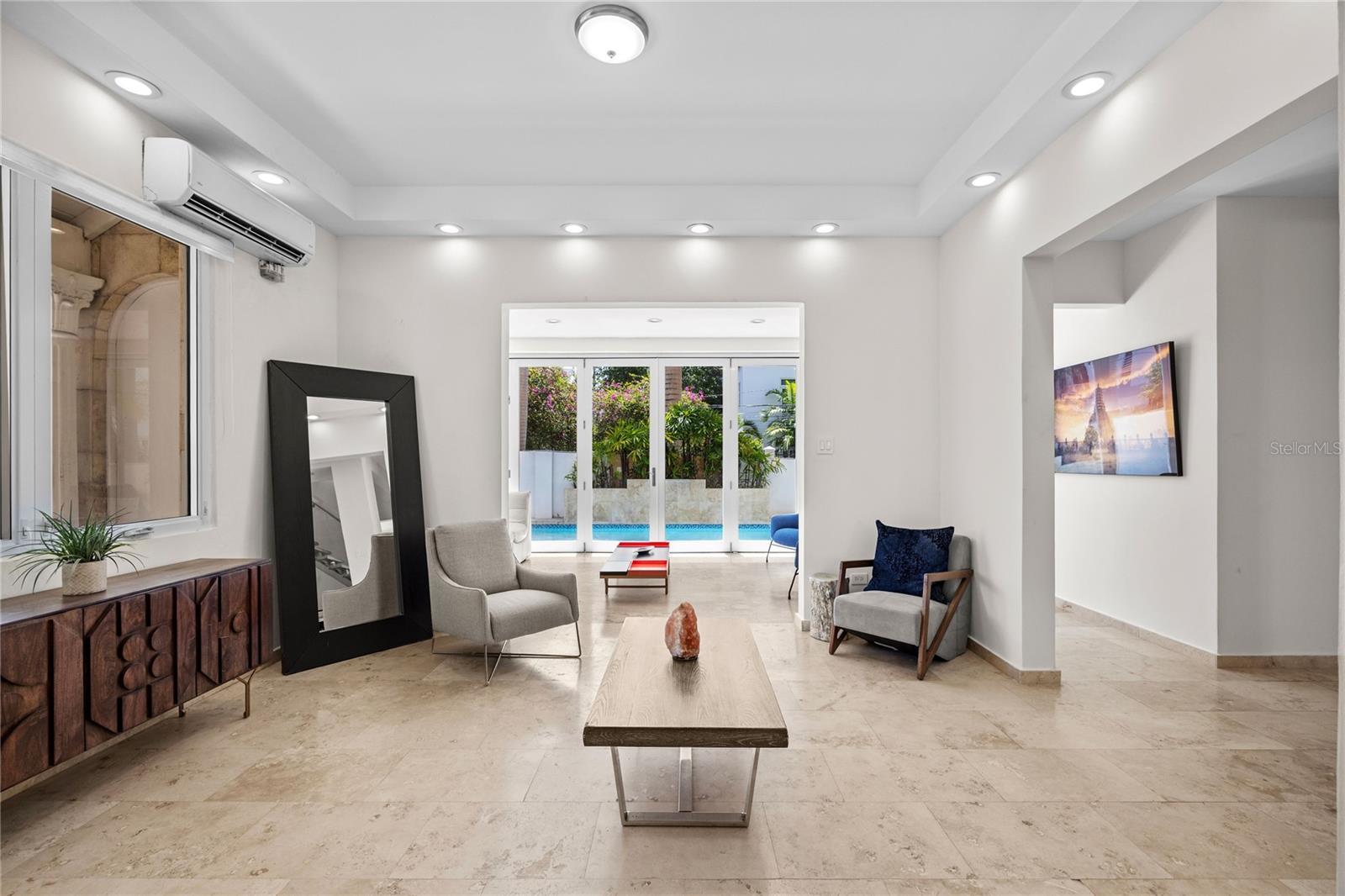 This one-of-a-kind private residence sits on the coveted Magdalena Avenue in Condado, offering the perfect blend of space, privacy, and prime location. Featuring 4,553 sq. ft. of interior living space across two levels and an additional 2,234 sq. ft. rooftop terrace. On the first level, you are welcomed by a charming covered porch that opens into a bright, open-concept layout with a foyer, spacious family and living areas, a kitchen, dining room, and two bedrooms with two full bathrooms. The first level also features an impressive outdoor area with a pool, surrounded by a high privacy fence. The property offers two separate entrances—one from Magdalena Avenue and another from Calle Santiago Iglesias—along with three covered carport spaces and additional uncovered parking. The second level boasts four more bedrooms and a versatile den, ideal as a second living room, playroom, or home office. The expansive master suite includes a walk-in closet and ample space to create your own retreat. The third level rooftop terrace is a true highlight: a covered wooden space with a bar area and half bath—perfect for entertaining or enjoying quiet evenings. Additional features include a built in elevator and a full power generator. This home is ideally located just two blocks from the park, and near top private schools, the beach, restaurants, grocery stores, and more—placing the very best of Condado right at your doorstep.