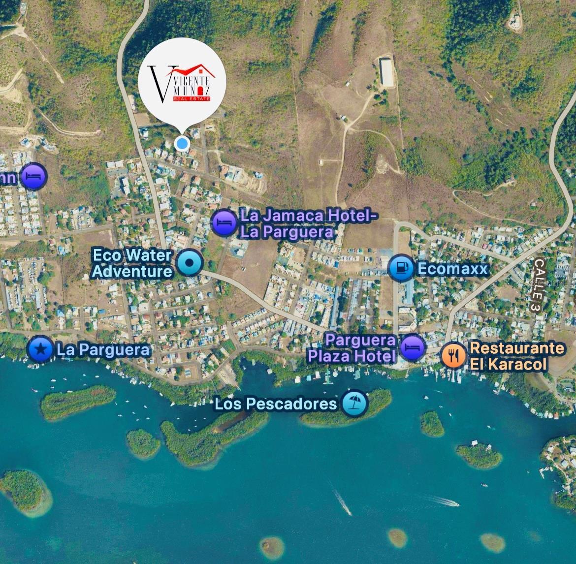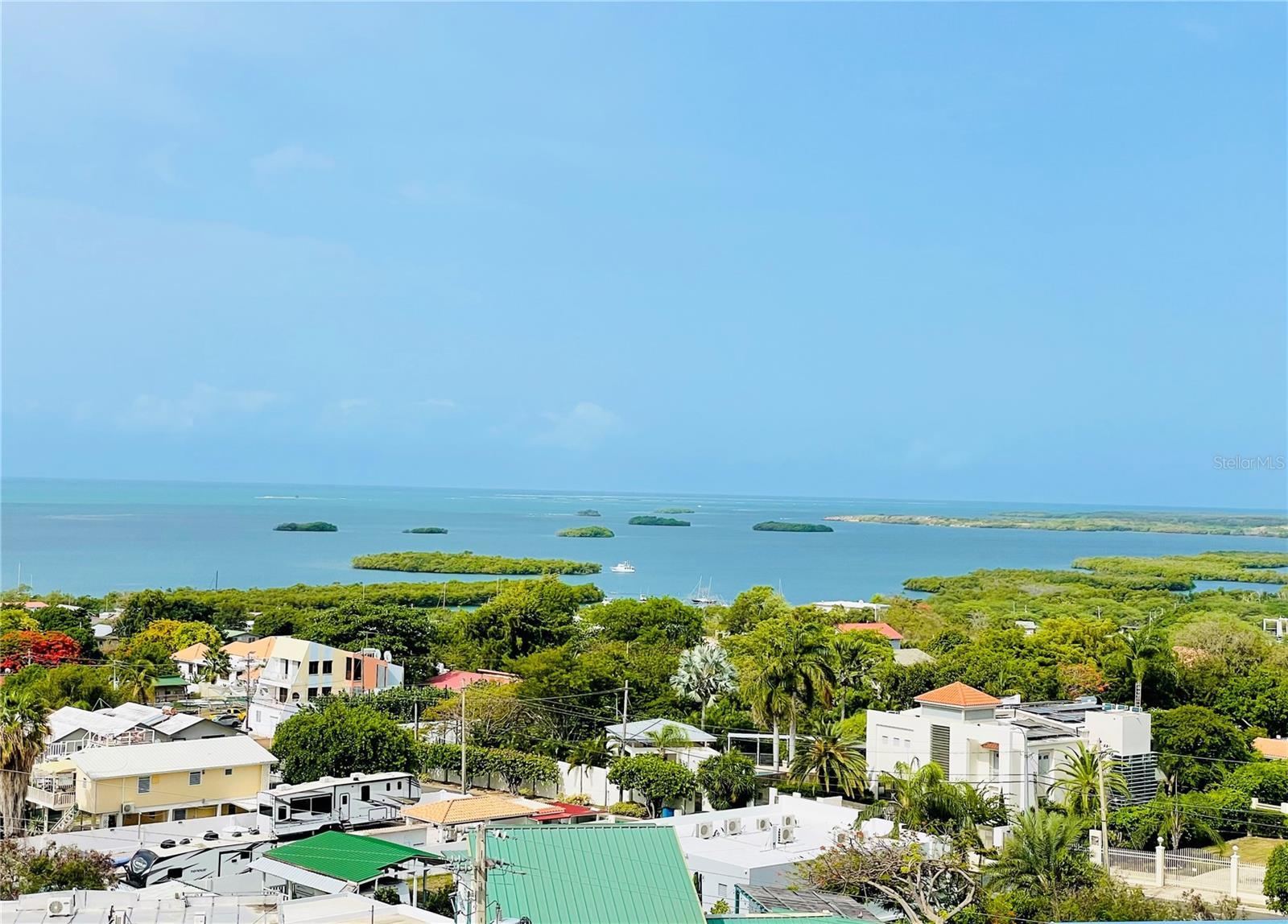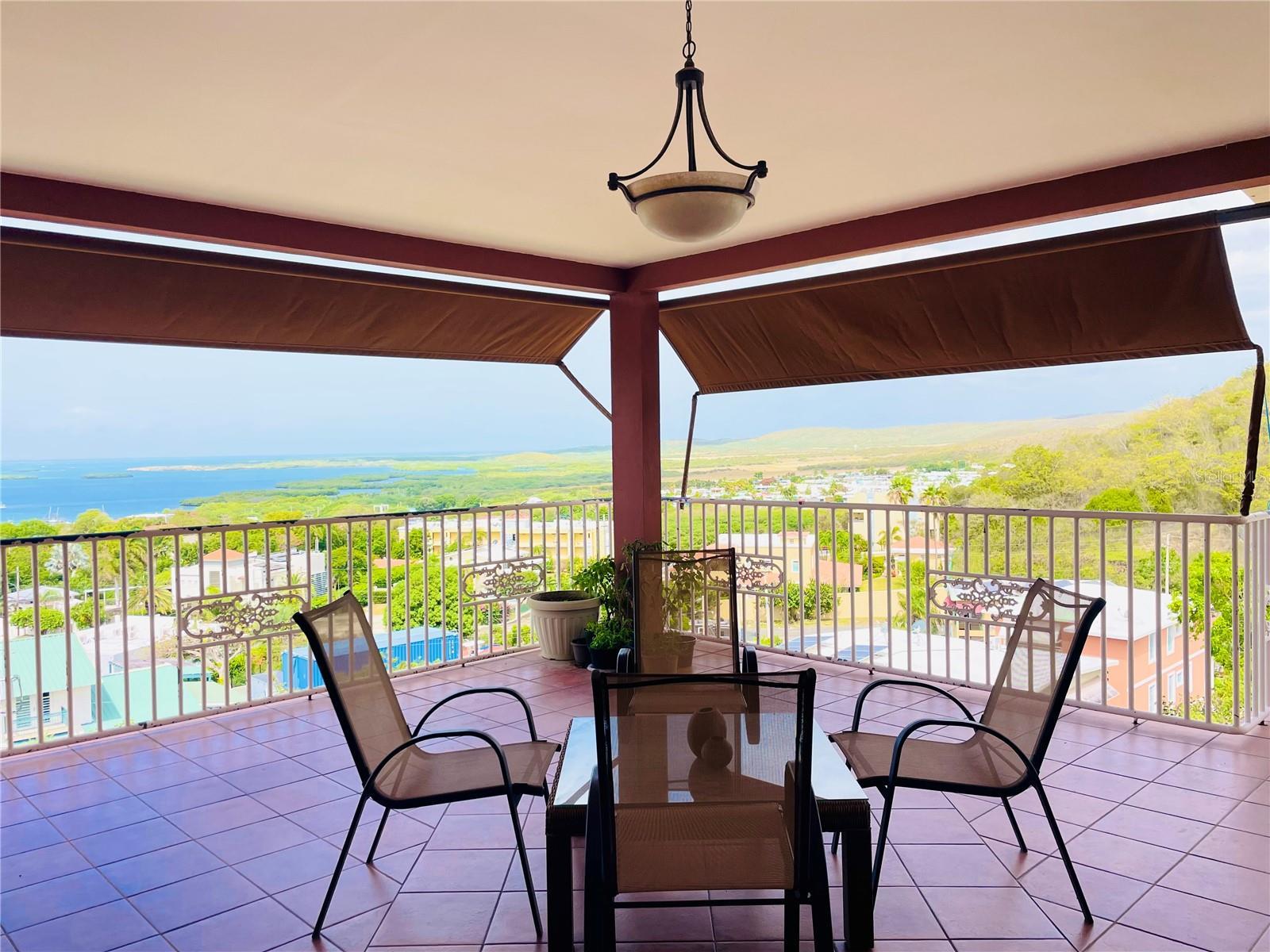 One or more photo(s) has been virtually staged. Impressive residence in La Parguera featuring unmatched panoramic views of the cays from every angle of the home, offering high ceilings, a main unit with 3 bedrooms and 3 bathrooms, living room, dining room, kitchen, carport, private pool, diesel generator, solar panels, and two balconies with spectacular views, plus a spacious independent apartment with 2 bedrooms and 1 bathroom, living room, dining room, kitchen, laundry area, and a cozy space ideal for guest visits to the residence.