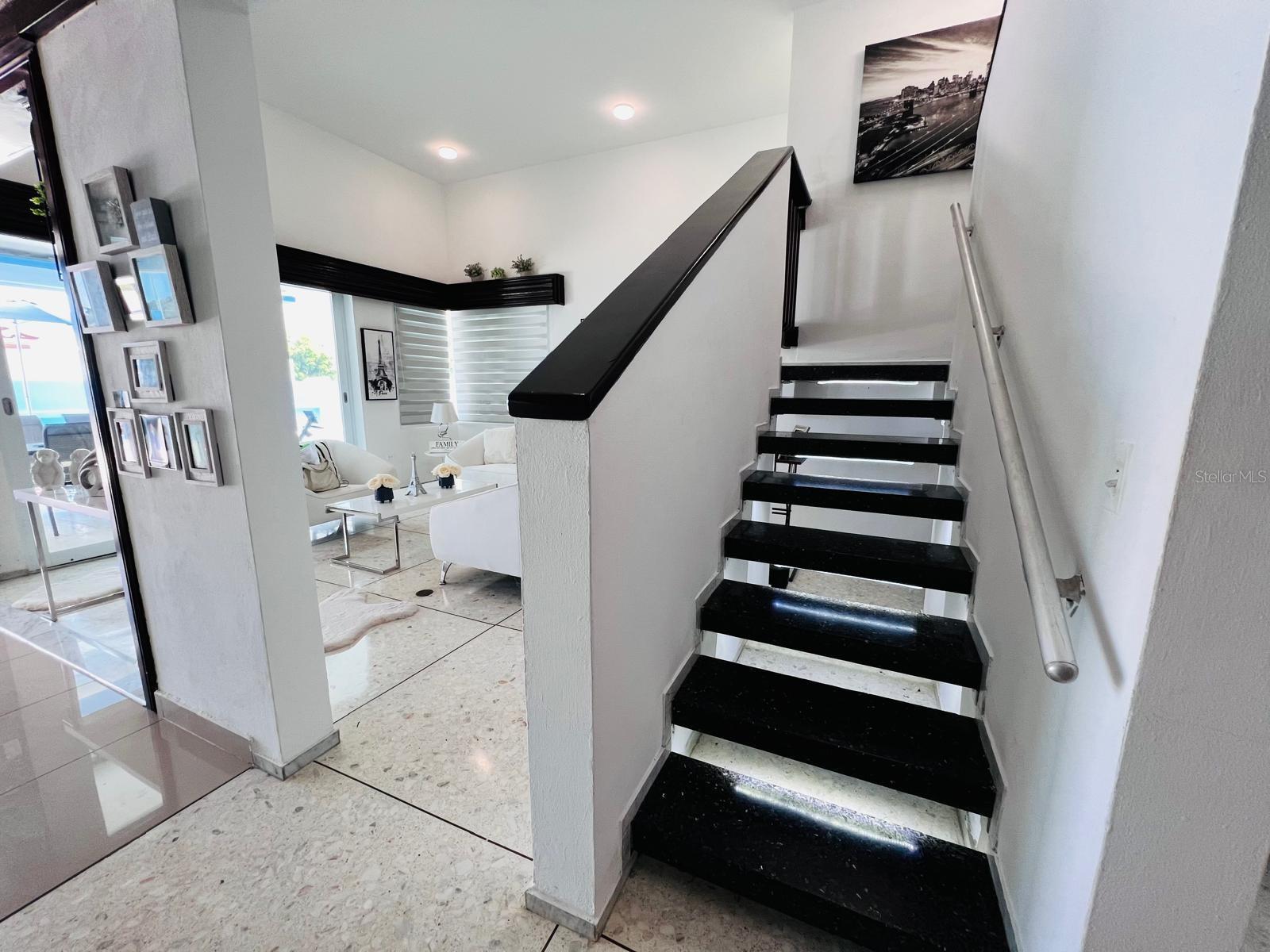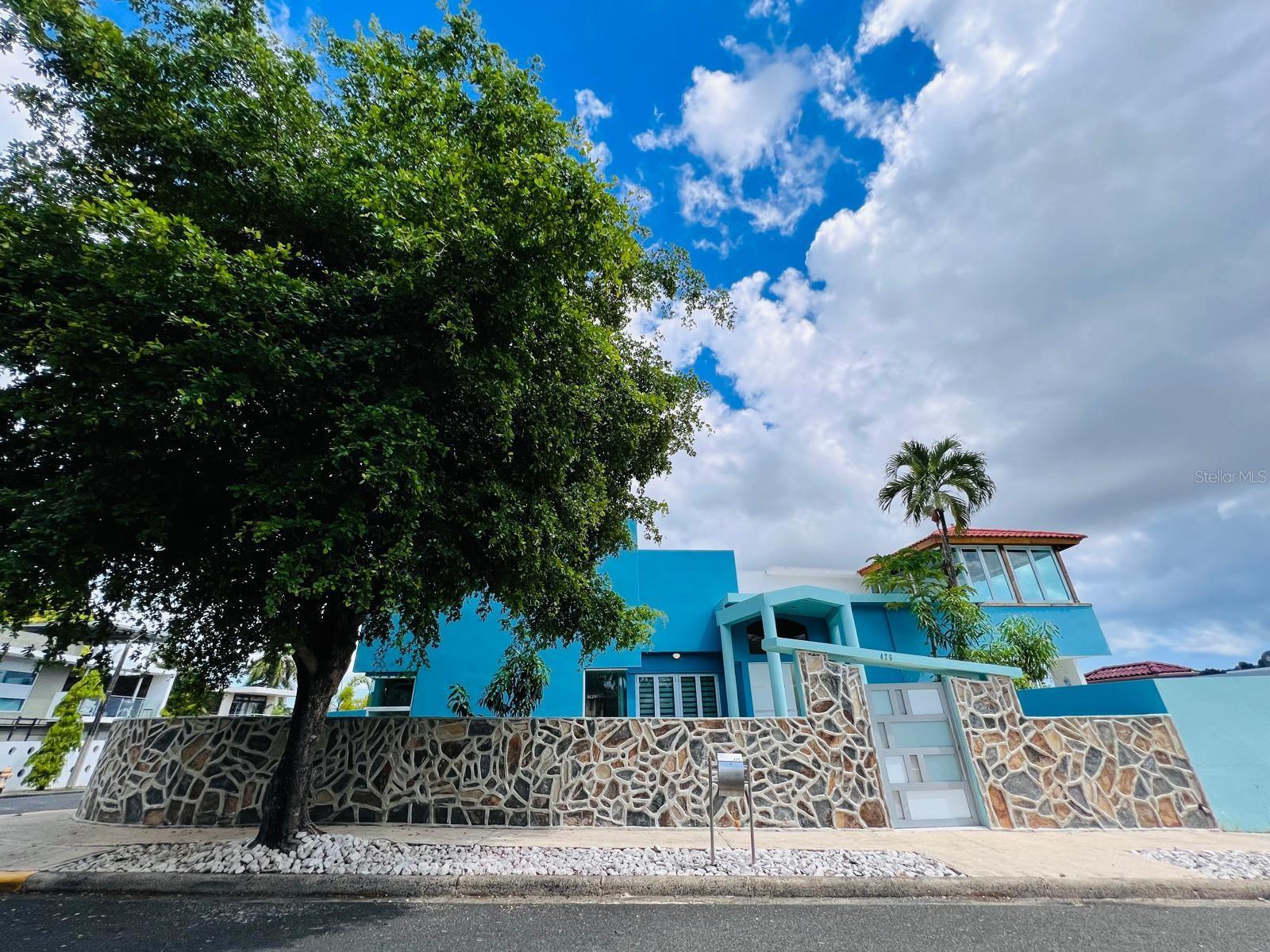 Stunning 2-story mansion with 2,808 sqft. of elegant living space in the heart of Rio Piedras. Located directly in front of the community park, enjoy family-friendly amenities including 2 tennis courts, pickleball, basketball, playgrounds, and football field, all secured with 24/7 gated security. Inside, the residence boasts five bedrooms, including two master suites with ensuite baths and multiple closets, a private bedroom with a sunroom, and a spacious living room with soaring 20-ft ceilings. The home is designed for both relaxation and entertainment, featuring an open and covered terrace with a BBQ area, a heated swimming pool, and a gourmet kitchen with quartz countertops complemented by a second-floor kitchenette. Additional highlights include a marble staircase, family area, laundry room, and parking for up to seven vehicles with a 3-car garage and 4-car driveway. Energy efficiency is at the forefront, with 27 solar panels, two fully paid TESLA batteries, a solar water heater, water cistern, five inverter A/C units, and stainless-steel kitchen appliances, ensuring comfort, sustainability, and modern convenience.