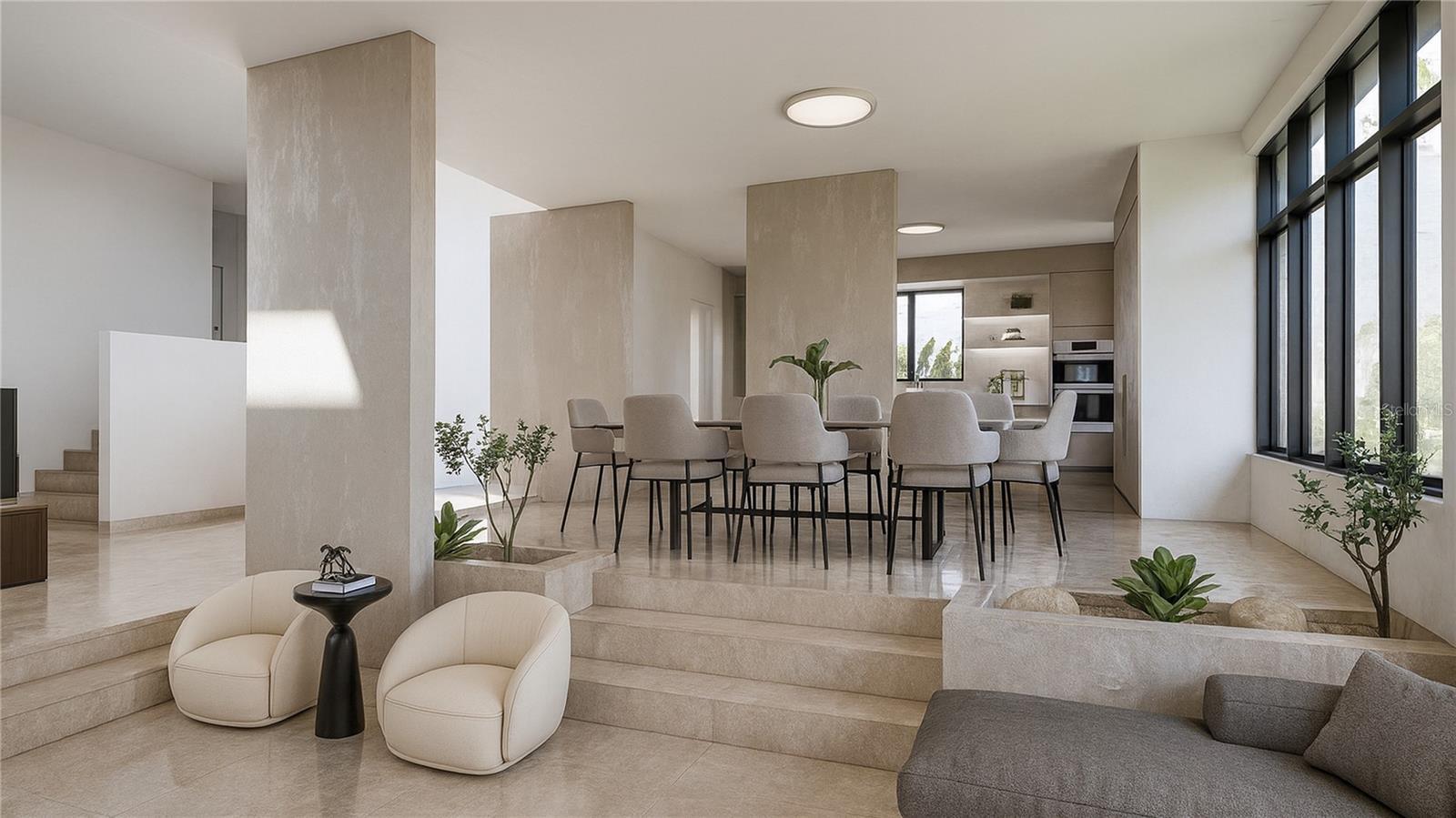 - Eat-in Kitchen, High Ceilings, Kitchen/Family Room Combo, Open Floorplan, Other, Primary Bedroom Main Floor, Stone Counters, Walk-In Closet(s)
