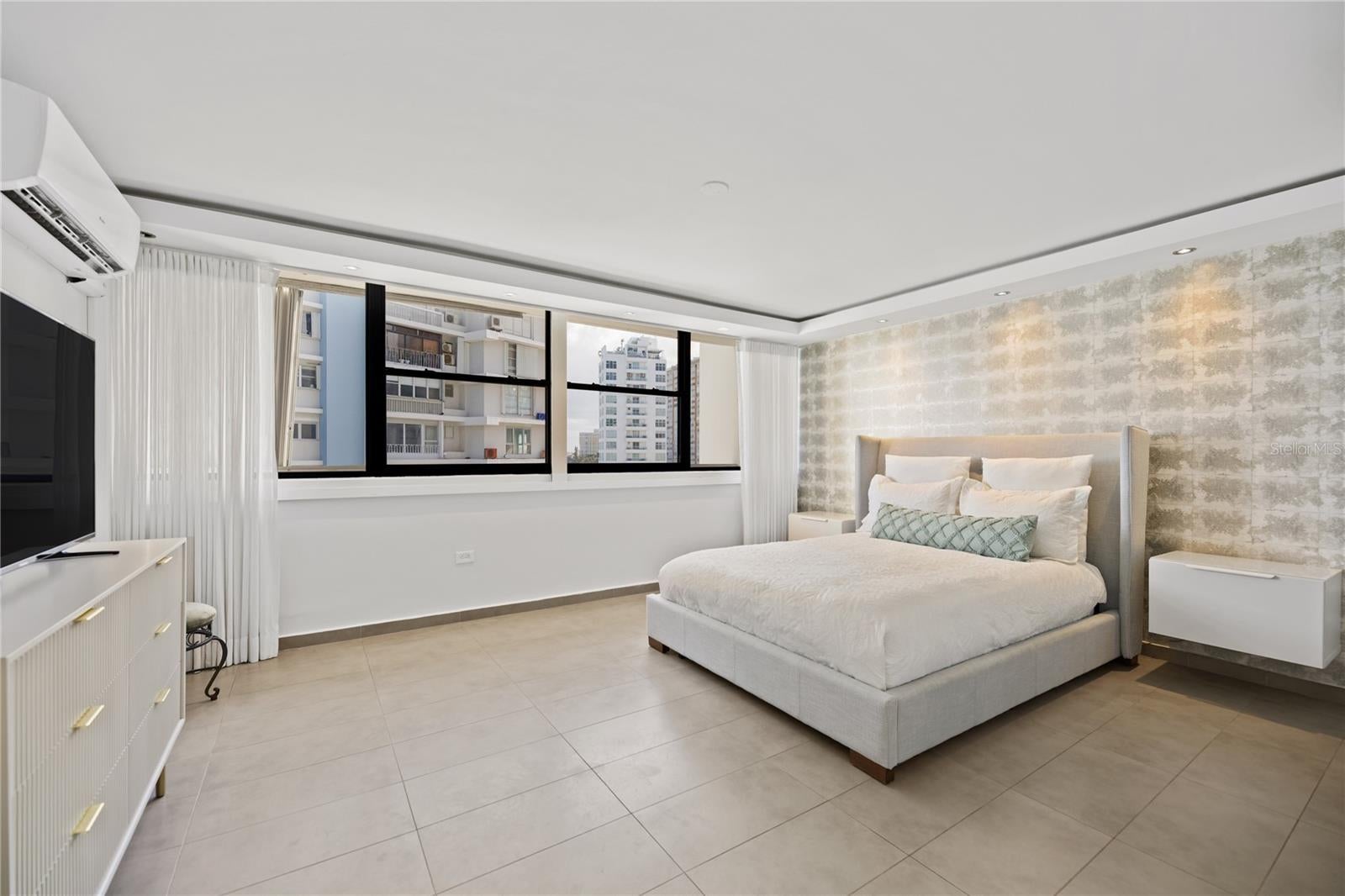 Enjoy the pinnacle of island living in the city within this 6th floor apartment in Condado Princess. Offering enviable panoramic ocean sights from the kitchen, living room and partial views from two of the three bedrooms. Modern furnishings throughout the inviting residence showcase a lively color palette that provides a vibrant ambience for hosting. The galley kitchen highlights the awe-inspiring Atlantic Ocean. Appliances include a stove/oven, microwave, two-door refrigerator and wine cooler. The primary suite features a sizable layout and spacious closet spaces. Two parking spaces are also provided for added comfort and convenience. The 16-story condominium offers residents 24-hour security, full-power generator and a desirable beachfront location within close proximity to parks, boutique shops, restaurants, hotels, hospitals and schools such as St. John's and Robinson. Condado Beach is a highly-esteemed metropolitan community within the island's thriving capital. Nearby Isla Verde, Old San Juan and the Miramar Arts District.