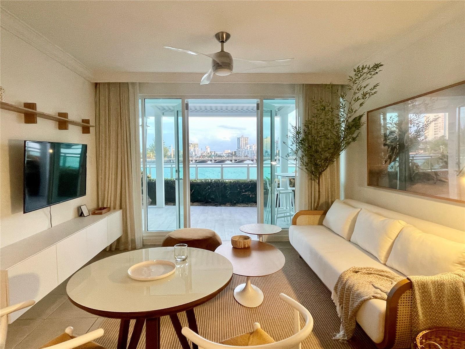 Experience the best of Condado living in this beautifully furnished apartment overlooking the breathtaking views of the ocean and the Condado Lagoon. Enjoy serene water views from your covered terrace or through the full glass doors that fill the home with natural light. This apartment offers everything you need for comfortable long-term living — including an in-unit washer and dryer, modern furnishings, and a comfortable outdoor space. Residents enjoy 24-hour security, a swimming pool, and the rental includes water, electric and internet. All these ensuring both convenience and peace of mind. Located just steps away from fine dining, Caribe Hilton and other hotels, and vibrant nightlife, this property places you in the heart of Condado’s most desirable area.