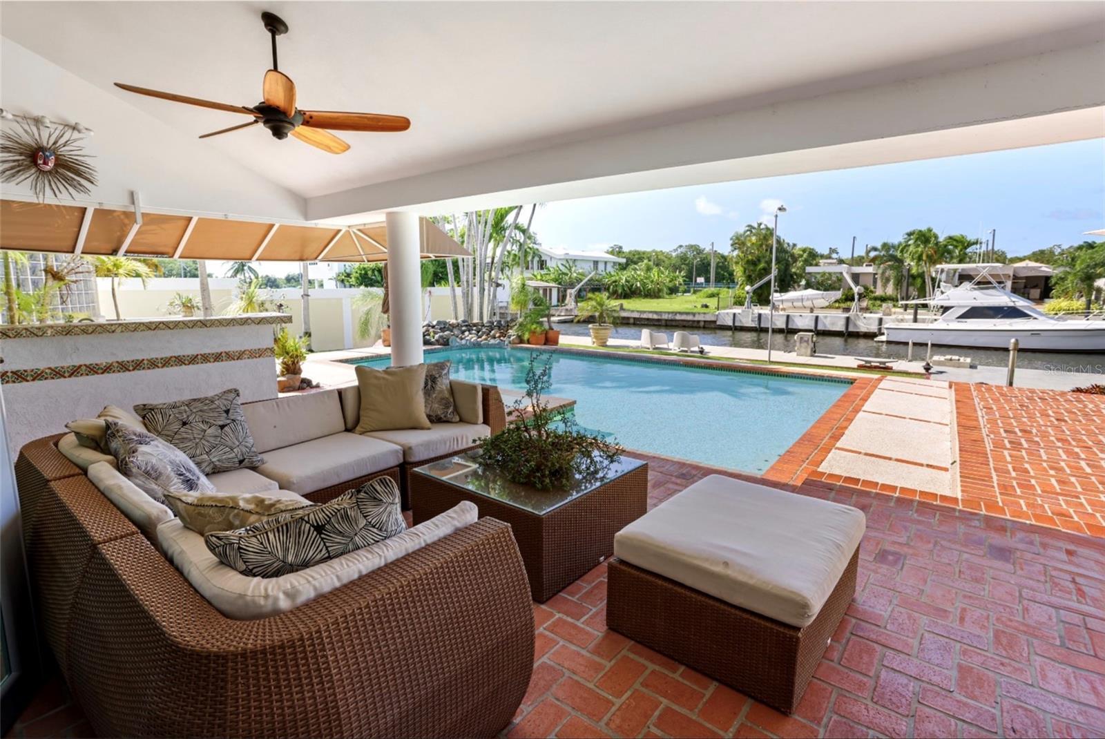 Discover this exceptional single-family residence in the desirable Vistamar Marina Este community, offering direct canal access to Laguna La Torrecilla and the Atlantic Ocean, an ideal setting for boating enthusiasts. This spacious 3,200 sq ft home sits on a one thousand square meter lot and features four bedrooms, three and a half bathrooms, and newly updated floors in the living and dining areas. The extended kitchen is designed for entertaining, flowing seamlessly into a covered terrace and a sparkling 20' x 30' pool overlooking the water. A private 100-foot concrete dock provides convenient canal access suitable for various boat types. Additional amenities include a 20KW diesel generator, 600-gallon water cistern, semiannual CRIM of approximately $1,300, and a low monthly HOA fee of $125. Located in a tranquil gated community just 10 minutes from the airport and 15 minutes from Condado, this home offers the perfect blend of privacy, comfort, and coastal living.