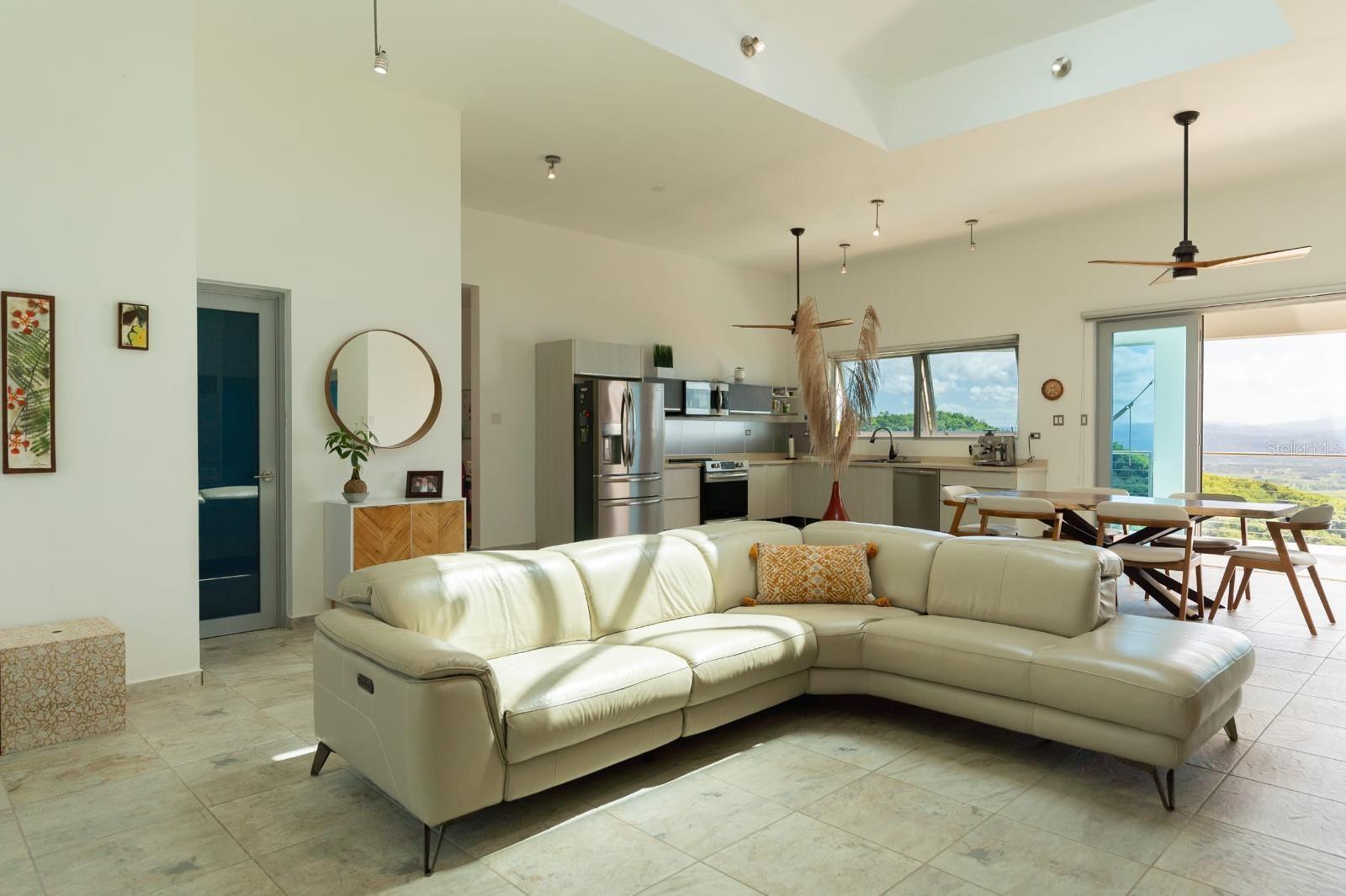 Experience the best of Coastal and mountains side living in this beautiful two-story home nestled in the gated community of Palatine Hills. Located atop the lush hills of Rincón, this property offers breathtaking panoramic views of the ocean and mountains from almost every room. The Main Level features spacious open living area filled with natural light, a living room and a kitchen that opens up to a spectacular balcony- perfect for relaxing or entertaining while enjoying the breeze. Upstairs you’ll find three bedrooms two bathroom and a half an office space. The lower level includes an additional bedroom, bathroom and kitchen, ideal for guests, extended family, or potential rental income. This property also offers a solar water heater, ample garage, and controlled access for residents within a fully gated community. The monthly maintenance fee conveniently includes water service. Whatever you are looking for a primary residence or second home, it offers the privacy, tranquility, and unmatched views that make Rincón so special.