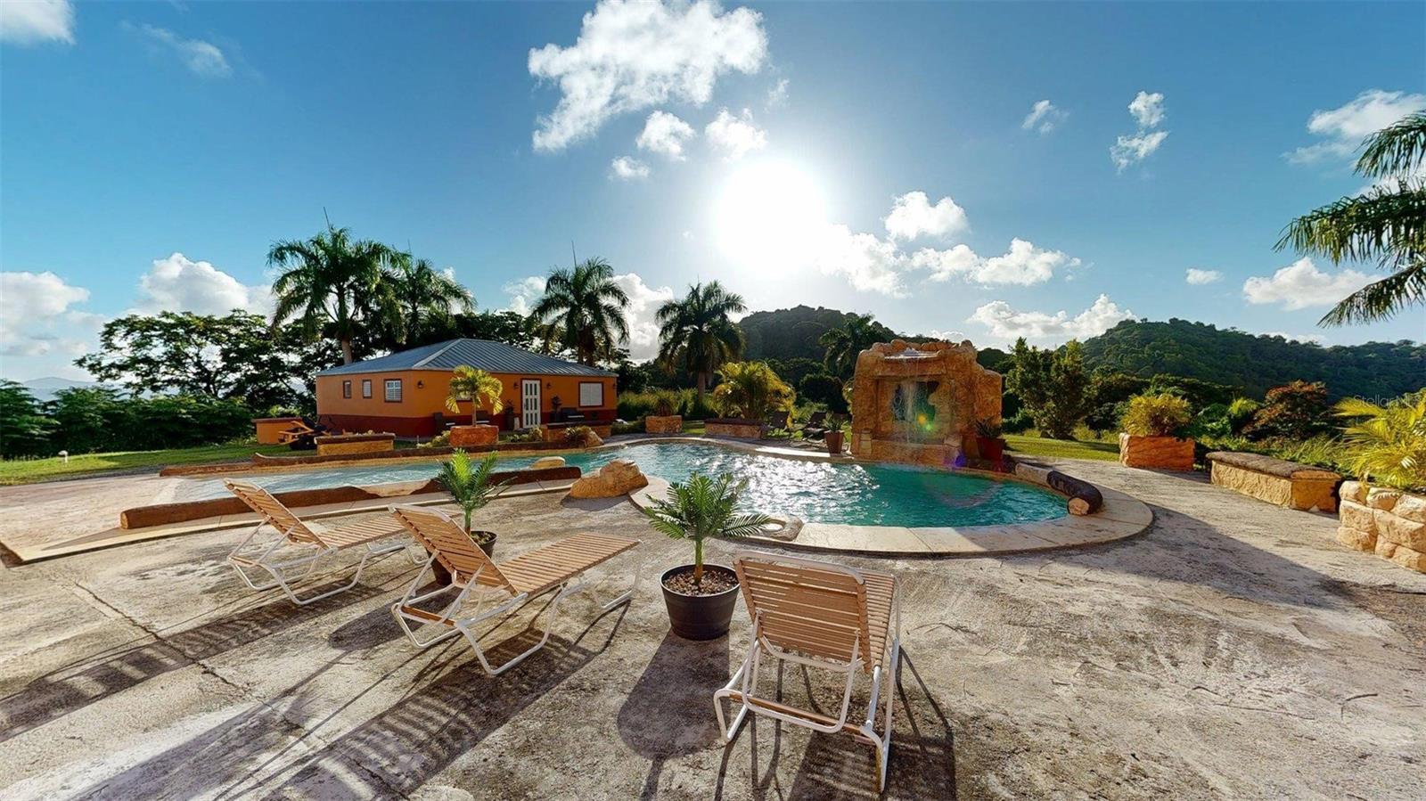 Welcome to Hacienda Casillas Perched atop the mountain where the sky meets the earth, this majestic estate commands 360° panoramic views of the ocean, city, and lush mountains. Spanning nearly 6 acres of land and over 5,000 sqft of living space, the property blends privacy, sophistication, and design in perfect harmony. The main residence features 5 bedrooms, 3 bathrooms, a private movie theater, and a game room, all adorned with marble floors and soaring ceilings up to 27 feet high. A guest house with 3 bedrooms and 1 bathroom offers the ideal retreat for visitors or short-term rental opportunities. Powered by solar panels and offering parking for 8+ vehicles ?? A masterpiece of luxury where every sunrise feels like the opening scene of a film.
