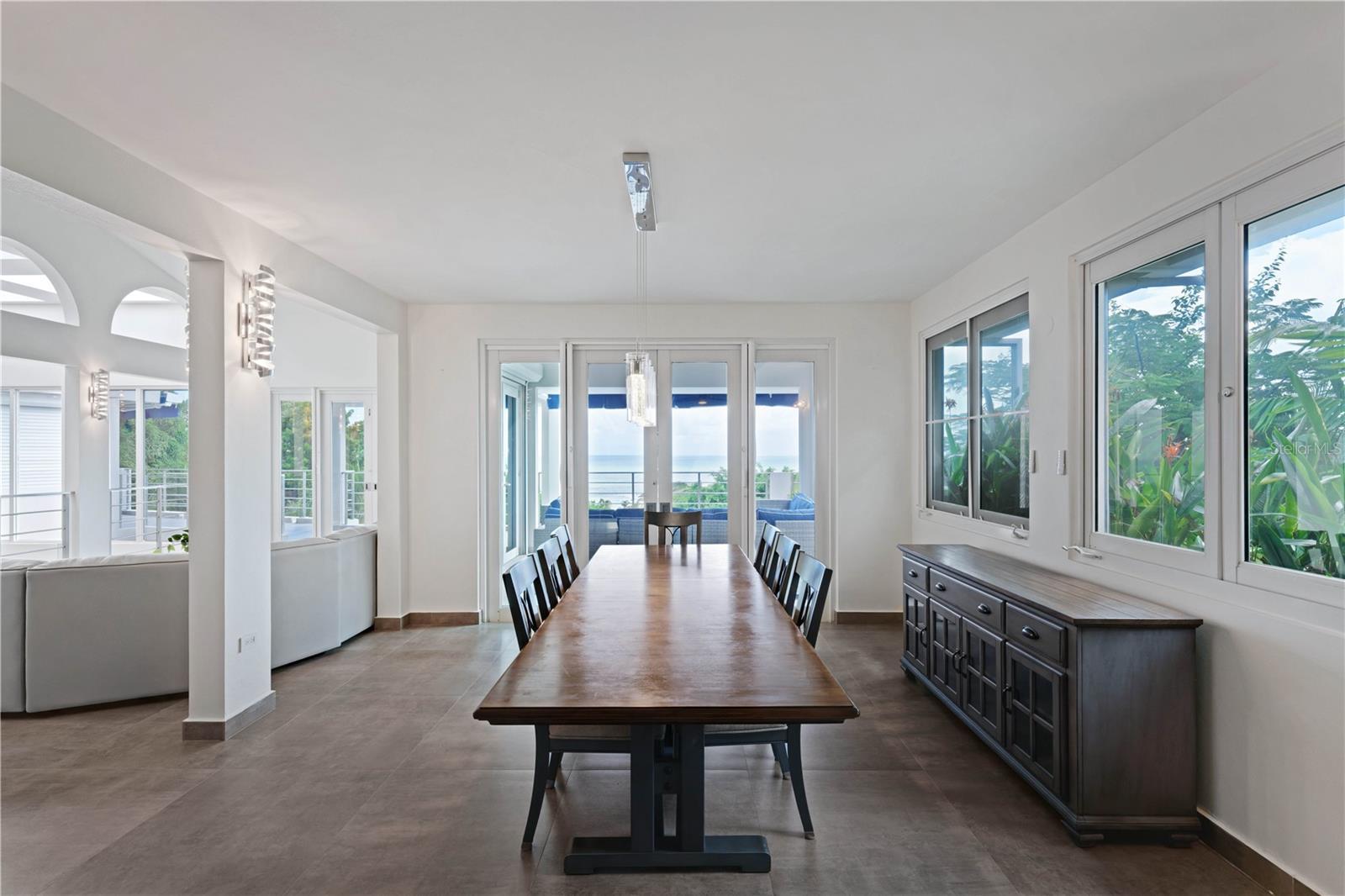 ***UNDER CONTRACT*** Nothing short of spectacular vistas from high above the sea side cliffs of Ridge Top Road in Palmas Del Mar, at 12 Ridge Top. This slopeside estate offers 5 bedrooms, 5 full bathrooms with 2 half baths, in a custom-designed 3 story layout complete with elevator floor to rooftop. With just over 5,116 interior sq.ft of air-conditioned living and approx. 2,413 sq.ft of exterior living, this gated suburban country estate satiates the desire for both view and space. Boasting a contemporary aesthetic illuminated by warm natural light throughout, the 23’ in ceilings highlight the uniquely private nature of this highly coveted street. Serving as the perfect space for entertaining, the entry level features an oversized sitting room, powder room and guest suite, retrofitted with its own private wet bar and kitchen. On the ground floor, double sized open areas serve as combined living and dining, seamlessly connecting to the gourmet eat-in kitchen and covered terraces, affording 180 degree scenic vistas from different vantage points. 2 bedrooms, of which one offers a suite bath, and 2 powder rooms, round out this level's offerings. Affording the utmost in serenity with an indoor garden and water feature, the second floor showcases a wine cellar, laundry, ensuite guest bedroom with covered balcony, and the primary suite with walk-in closet and a spa-inspired bathroom with a terrace/outdoor shower. Outside, embrace the sun with your own private oasis. The covered patio with full bath and storage space leads out to the sizable pool, adorned by surrounding tropical foliage set on half an acre of land. A 3-car garage with approx. 619 Sq. Ft. rounds out this exceptional home. Palmas del Mar is internationally renowned for its Yacht Club & Marina, golf courses, tennis courts, equestrian center, school, restaurants, shopping venues and beachfront location on the southeast coast of the island. Only a 40-minute drive from San Juan, enjoy the effortless suburban living of the Caribbean master planned oasis.