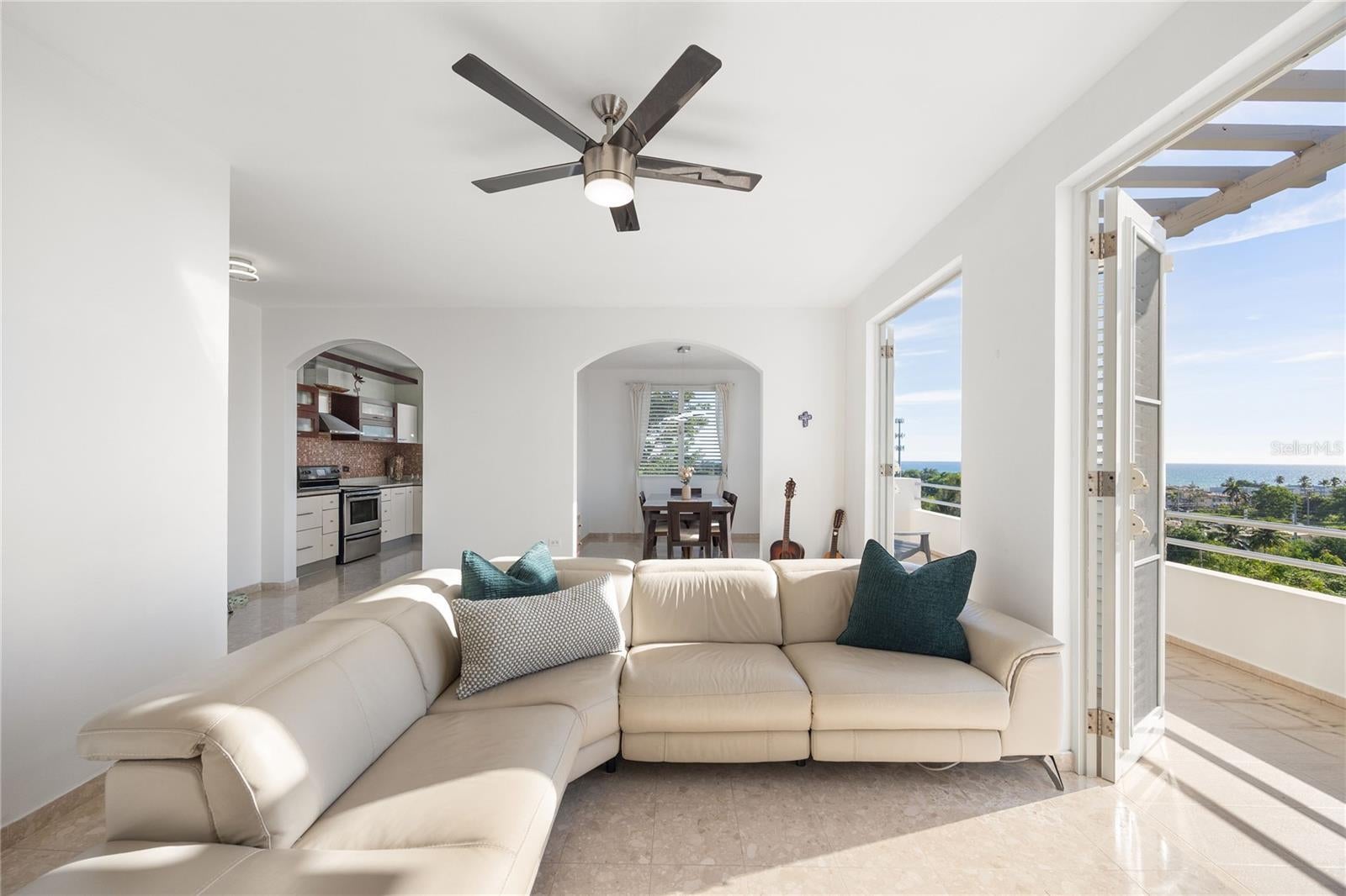 Perched above the coastline in one of Rincón’s most desirable areas, this contemporary 4 bedroom, 3.5 bathroom residence with a generous gross floor area of 3,871.23 sq ft captures the essence of relaxed Caribbean luxury. Sunlight pours through expansive openings, framing uninterrupted ocean views from the living and dining areas, while the gentle breeze flows effortlessly throughout the home. With multiple terraces overlooking the treetops and sea, every moment here feels connected to the natural beauty of Puerto Rico’s west coast. Inside, the home features bright, open spaces designed for comfort and style. The primary suite offers its own private oasis, complete with an ensuite bathroom and a stunning ocean-view balcony—perfect for savoring quiet mornings or ending the day with the town’s iconic sunsets. The kitchen provides a functional space ideal for both everyday living and entertaining. Spacious guest bedrooms and well-appointed bathrooms ensure comfort for family or visitors. Outdoors, the property continues to impress with covered terraces, open-air lounging areas, and landscaping that enhances the tranquil setting. From the lower patio and entertainment space to the rooftop terrace with panoramic views, this home is built to enjoy Rincón’s famous sunsets year-round. Just minutes from beaches, dining, and surf spots, this is the perfect retreat for those seeking a lifestyle defined by ocean views, privacy, and timeless island living.