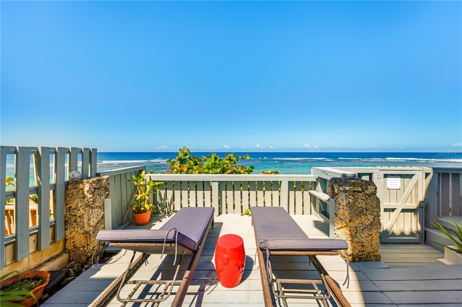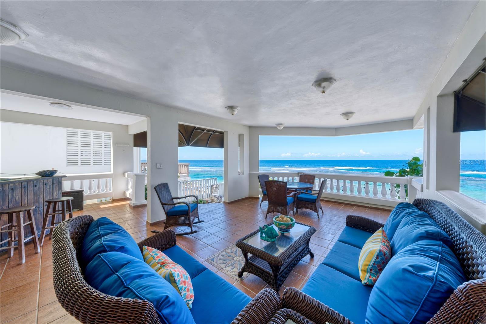 Set directly above the turquoise waters of Shacks Beach, this five-bedroom, three-and-a-half-bath residence embodies the essence of refined coastal living. Blending timeless Caribbean architecture with modern amenities, it offers sweeping ocean views and two expansive terraces that capture the rhythm of the waves. The main home features three bedrooms, two full bathrooms, and a powder room. The primary suite, located on the top floor, enjoys panoramic ocean vistas, a private balcony, a generous walk-in closet, and direct access to a beautifully appointed den lined with custom wood cabinetry with the sea as your backdrop. The main living floor offers two spacious guest bedrooms, a full bath, and a powder room. The open kitchen and great room flow naturally to the terraces, inviting indoor-outdoor living at its best. A private staircase leads directly down to the sand, creating an effortless connection to one of Puerto Rico’s most beautiful beaches. On the lower level, a fully independent guest apartment includes two comfortable bedrooms, a bathroom, a full kitchen, and living-dining area, ideal for visitors or private hosting. This level also houses the temperature-controlled wine cellar and access to the two-car garage. Sustainable living is seamlessly integrated with solar panels and Tesla Powerwall batteries, ensuring energy efficiency and peace of mind. Surrounded by lush tropical vegetation, the property maintains a serene sense of privacy and natural beauty that make Isabela’s coast so sought after. From sunrise coffee on the terrace to evenings framed by ocean breezes, this Shacks Beach residence captures the quiet luxury of life lived by the sea. Located along Puerto Rico’s northwest coast, Shacks Beach is known for its pristine reefs, golden sand, and year-round breezes. A haven for divers, kite-surfers, and beach lovers alike, the area retains a quiet exclusivity while being minutes from the restaurants, boutique hotels, and art-filled streets of Isabela and Aguadilla.