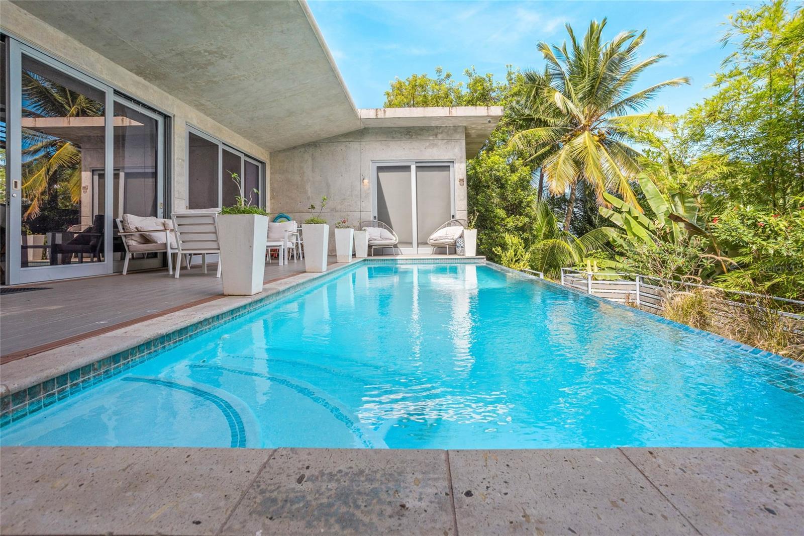 Casa Sol – A Bespoke Brutalist Retreat in Puntas, Rincón Discover Casa Sol, a striking modern residence in the heart of Puntas, just a short walk to iconic Sandy Beach. Designed with a refined cement brutalist aesthetic, this 4-bedroom, 3-bathroom masterpiece blends bold architecture with relaxed coastal luxury. Step into expansive open-concept living framed by clean lines, polished concrete, and oversized windows that invite natural light throughout. The home’s elevated position offers partial ocean views, creating a serene backdrop from sunrise to sunset. At the center of the outdoor experience is a stunning infinity pool surrounded by a sleek deck ideal for sunbathing, entertaining, or unwinding after a day on the beach. An outdoor shower enhances the tropical lifestyle, offering convenience and resort-style comfort. Equipped with solar panels, battery backup and a whole house water filtering system, Casa Sol delivers sustainable, off-grid-ready living without sacrificing modern conveniences. Property Highlights: - Modern cement brutalist design with luxury finishes - 4 bedrooms / 3 bathrooms - Infinity pool with panoramic ambiance - Expansive deck + outdoor shower - Partial ocean views - Solar panels with battery system - Water filter system - Short walk to Sandy Beach, surf, dining & nightlife - Ideal for full-time living, vacation home, or high-end rental A rare blend of cutting-edge design and coastal ease, Casa Sol offers a private sanctuary in one of Rincón’s most desirable neighborhoods.