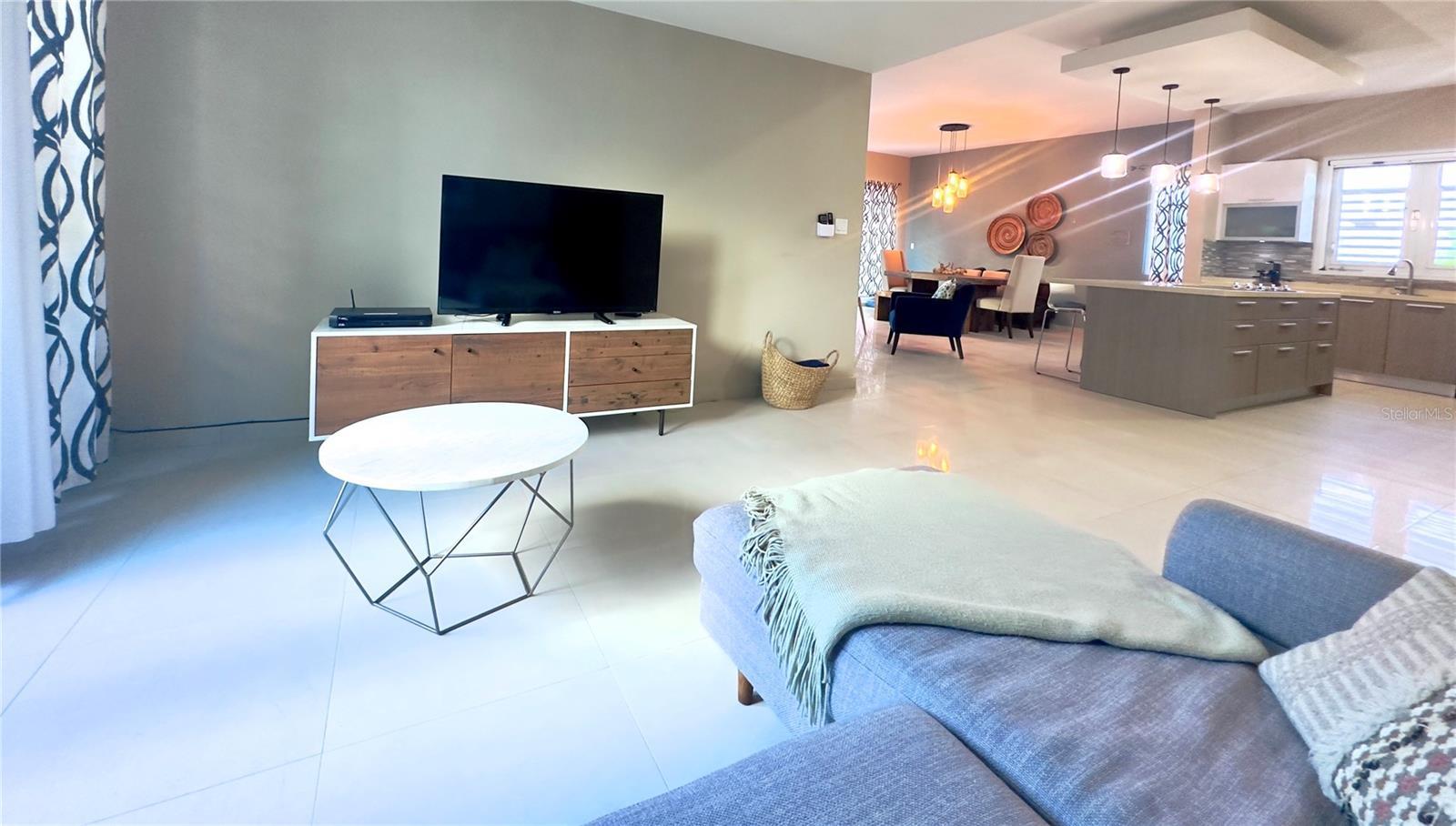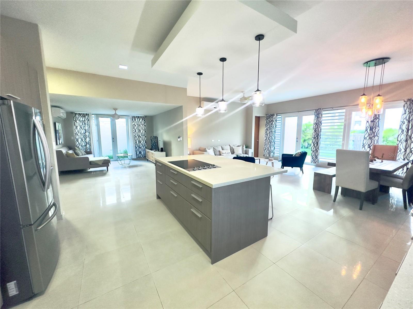 - Ceiling Fans(s), High Ceilings, Kitchen/Family Room Combo, Living Room/Dining Room Combo, Open Floorplan, Primary Bedroom Main Floor, Stone Counters
