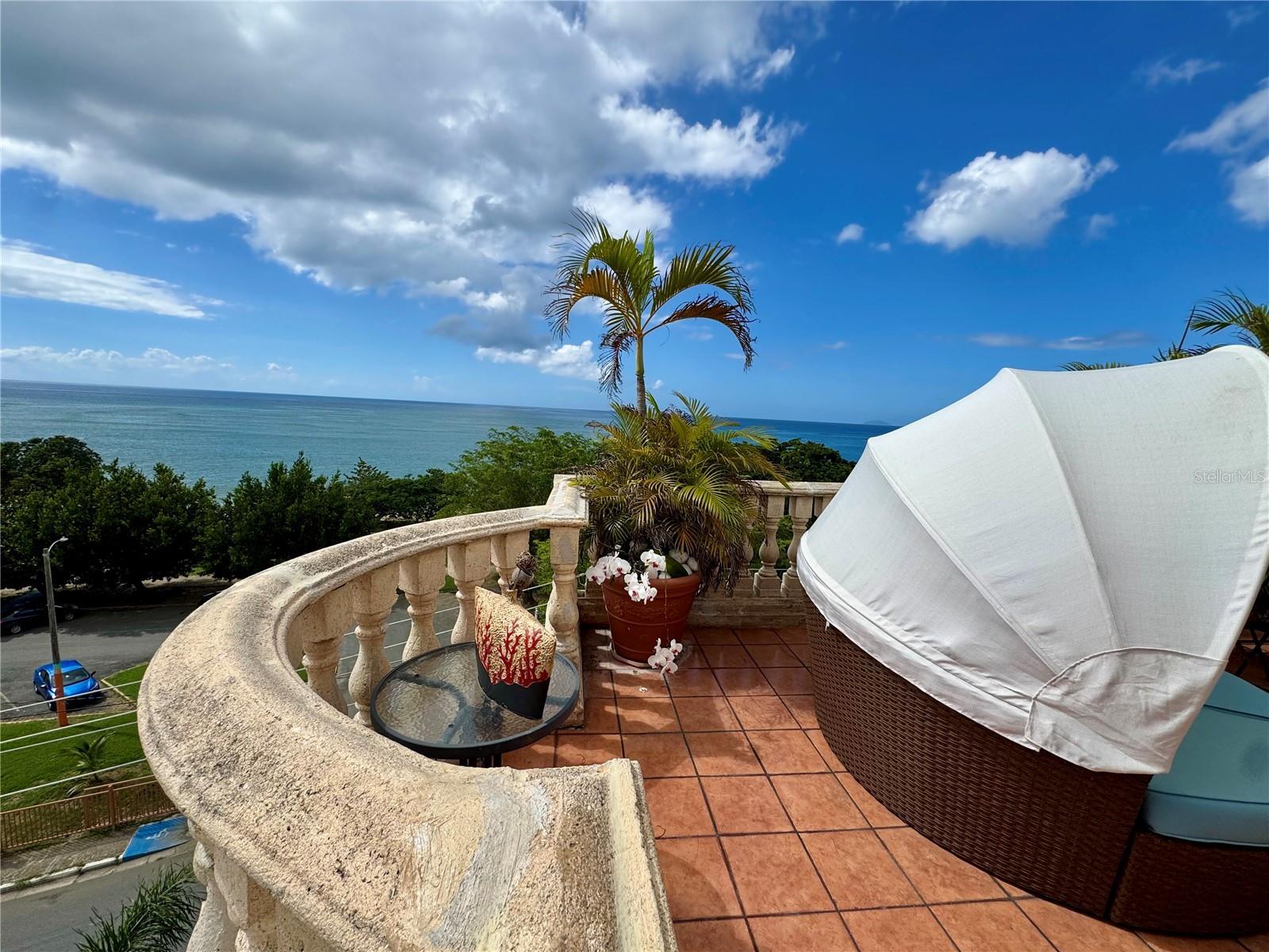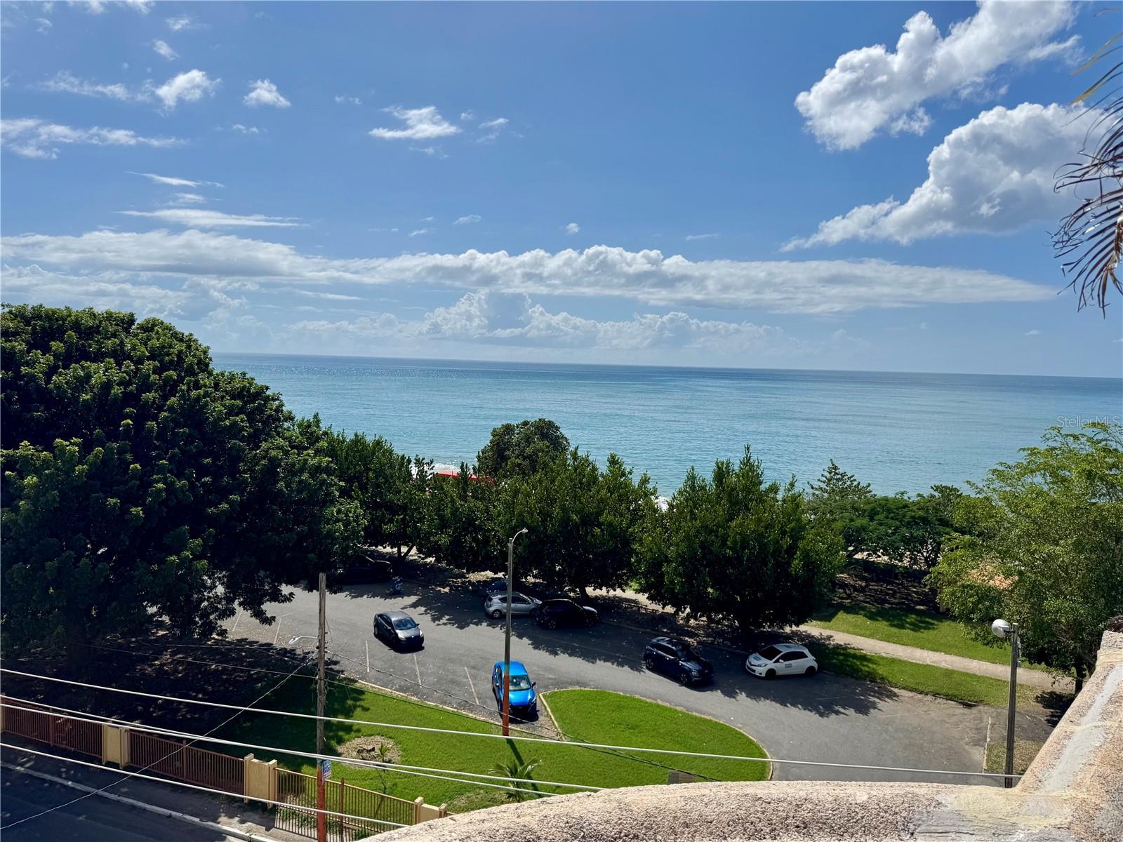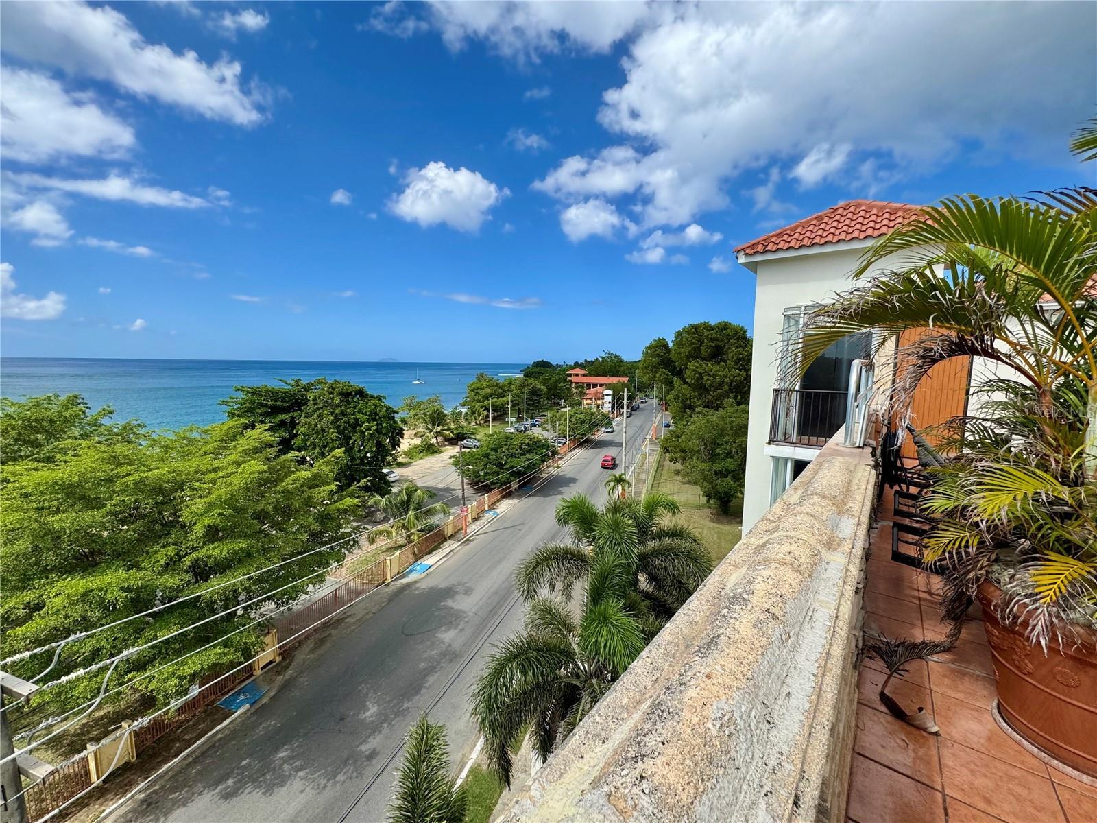 Corner apartment is a 3 level penthouse with ocean view from several rooms. First level of apartment is on level 4, and includes 2 bedrooms,1 full bathroom with jaccuzzi, and shower, 1/2 bathroom, kitchen, laundry, living room, dining area. Second level of apartment is on level 5, and it includes 3 bedrooms, 2 full bathrooms, living room, and dining or additional seating area. Third level of apartment is a gorgeous terrace with amazing ocean view; also in third floor terrace is one bedroom, kitchen and full bathroom. Apartment has a bullet elevator, and a spiral staircase. Condo is across the street from "Balneario", approximately 80 linear meters from the water. Approximately 650 linear meters from downtown square. 5 parking spaces. HOA $663.01.
