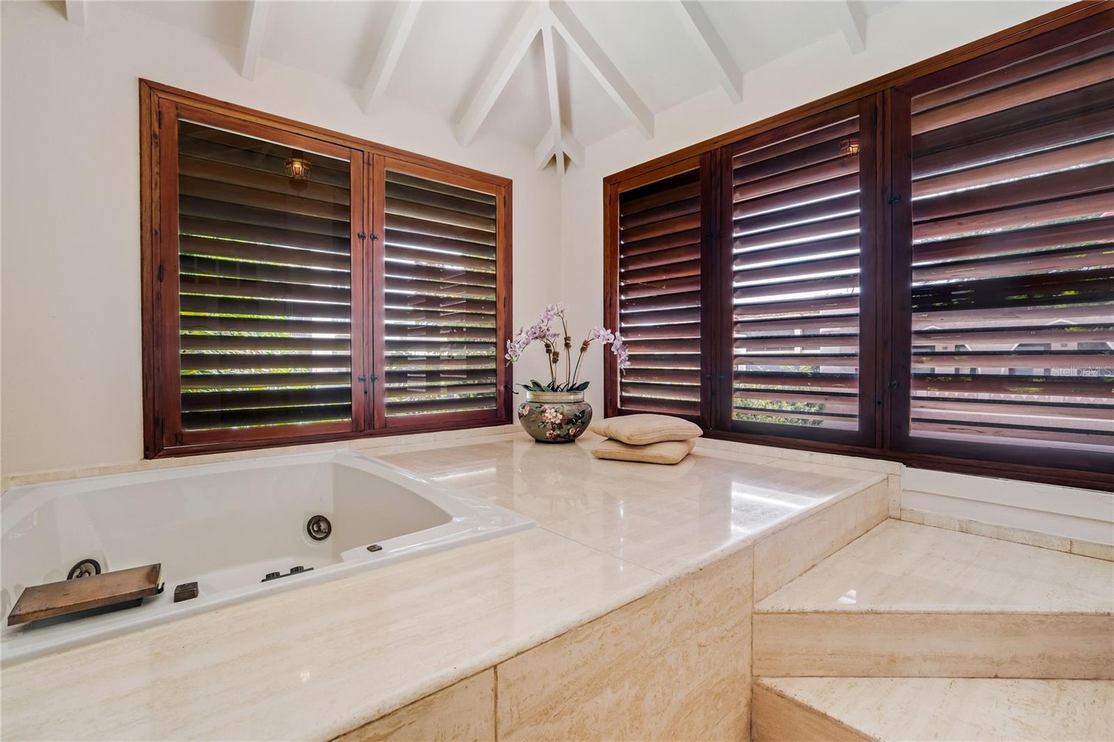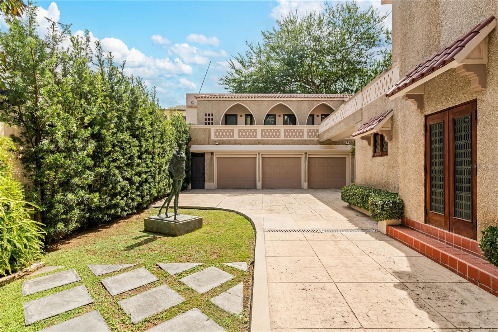 A piece of art in the iconic Spanish Revival style, this villa was meticulously crafted in the 1930’s by esteemed architect Pedro Adolfo de Castro. The historic gem spans 4,006 square feet of living space, featuring 5 beds/3.5 baths over two buildings. Located just one block from the widest expanse of beach on the most desirable residential block between Ocean Park and Condado, the property sits on a massive 1099 square meter lot. The land benefits from RT3 zoning, presenting a unique development opportunity. Whether inhabiting this cultural marvel or developing a larger structure, it must be seen and experienced. A vast Moroccan garden with water feature and lush landscaping greets visitors with dramatic flourish. As you approach the main entrance - look closely - tiny shells have been incorporated into the entire facade offering a glimpse of the intricacy that awaits. Open the front door and witness the sophistication of the interiors, featuring 12-foot ceilings, grand Spanish-style arches, original Terrazzo flooring with ornate bronze seams, custom mahogany woodwork, and Spanish wrought iron. The formal entry and living room are surrounded by windows, continuing the harmonious flow of the tropical gardens outside. Behind this grand reception room, a powder room with beautiful stained-glass windows, is conveniently located for visitors. Walk down the hallway, ornamented with immense arches for an aura of grandeur, to the formal library. Adjacent you’ll find a tremendous walk-in climate-controlled wine cave. The kitchen is conveniently located nearby and harkens to colorful, classic Puerto Rican cuisine, while equipped with stainless steel and all modern appliances. Connected to the kitchen is the informal dining area and wet bar. Float to the elegant formal dining room where a massive floor to ceiling window bathes the space in light. This accent window offers a new vantage point to witness the breath-taking sculpture garden and mosaic fountains outside, making for the most exquisite dining conversation. A grand bronze staircase ascends to the second level where you will discover the home’s 3 beds/2 baths, home office, and truly unique Moroccan sitting room. The expansive primary suite is a private sanctum of elegance and sophistication. Throw open the French doors to a romantic Juliette balcony overlooking the front garden below. Soak in the jacuzzi tub, an entire spa room apart from the ensuite bathroom for the ultimate in relaxation. A distinct walking bridge from the second floor leads to an additional recently remodeled living quarter, which includes 1 bed/1 bath, an office space, and a large area currently serving as an art gallery. From this level, ascend the grand outdoor spiral staircase, itself an architectural masterpiece, to view sunsets from the roof, or descend a second spiral staircase to the grounds below. The black bottomed pool, surrounded by mature tropical landscaping, is designed as both a beautiful focal point and for use and enjoyment. This entire residence is completely gated for the utmost security, while the driveway leads to an enclosed, private three-car garage. The property is equipped with an automatic Generac-Diesel 30 KLV generator and a 600-gallon water cistern, ensuring uninterrupted convenience. This home seamlessly blends contemporary amenities with preserved original elements, situated on one of the largest and most rare lots in Condado. Contact me today.