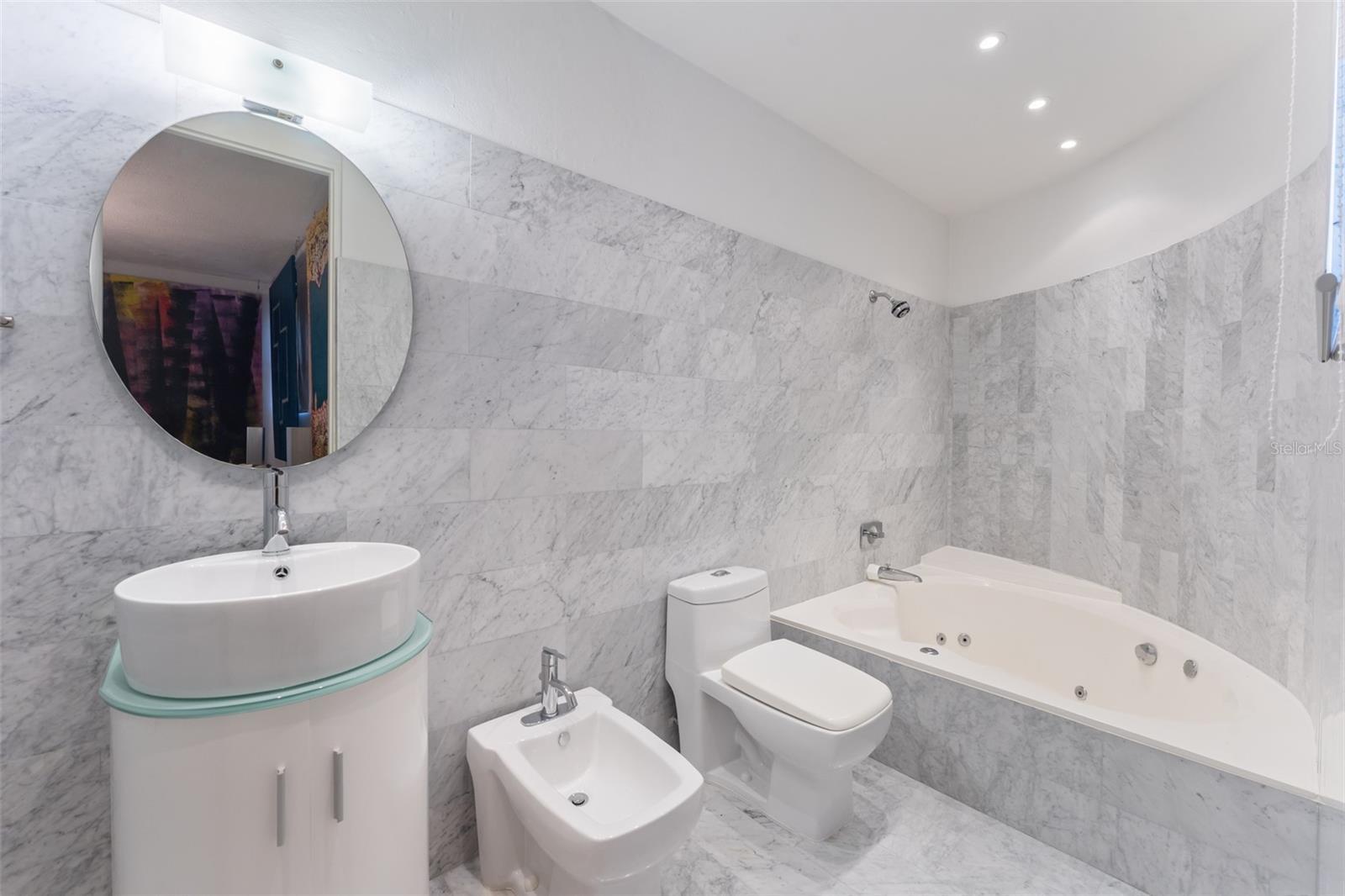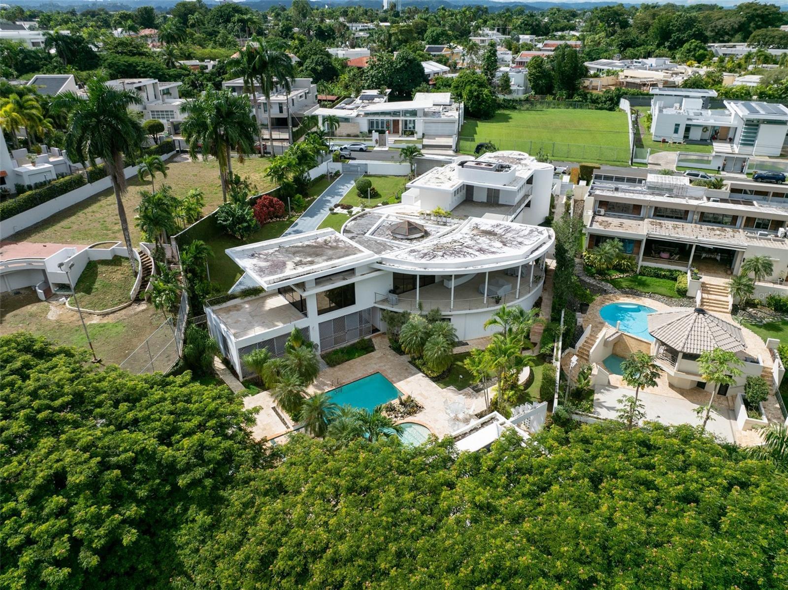 Discover unmatched luxury in this custom-built modern residence located in the gated community of Santa Maria. Spanning an impressive 7,874 square feet of living space on a sprawling 2,073 square meter lot, this home offers the perfect blend of grand scale and comfortable living. Property Highlights: Spacious & Elegant: Features 5 bedrooms and 8 full bathrooms plus 2 half-baths, all accented by high-quality marble, terrazzo, and ceramic flooring throughout. Resort-Style Outdoor Living: Enjoy your private oasis featuring an inground pool, a concrete-and-wood gazebo with a full bar area, fountains, and extensive open and semi-covered terraces perfect for entertaining. Modern Design: A three-story architectural gem with a modern aesthetic, offering open spaces and abundant natural light. Prime Amenities: Includes a 4-car garage, a dedicated utility room, and an outdoor bath for pool guests. Peace of Mind: Equipped with a full power generator and water cistern, ensuring uninterrupted comfort. Excellent Location: Centrally located in San Juan with easy access to main highways (PR-21, PR-199, PR-1, PR-20), placing top services, dining, and schools just minutes away. This is a rare opportunity to own a magnificent property in one of San Juan's most sought-after neighborhoods. Schedule your private viewing today.